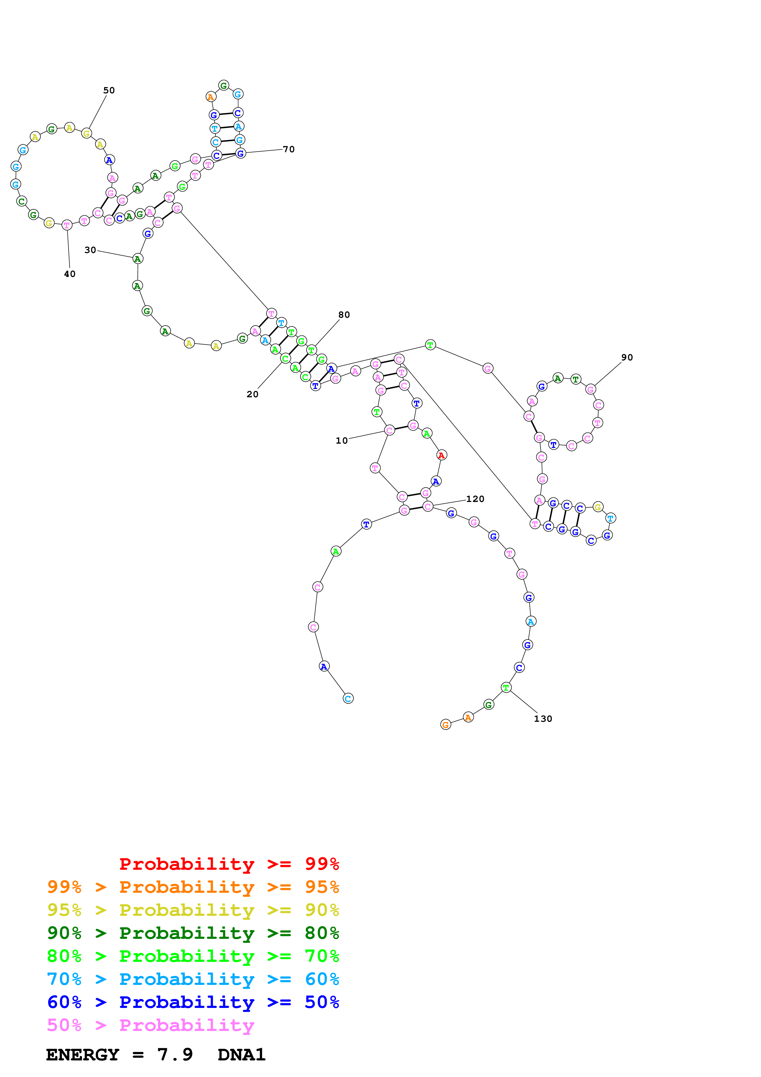 Fold Predict1.fasta Fold.ct --DNA --loop 30 --maximum 20 --percent 10 --temperature 310.15 --window 3