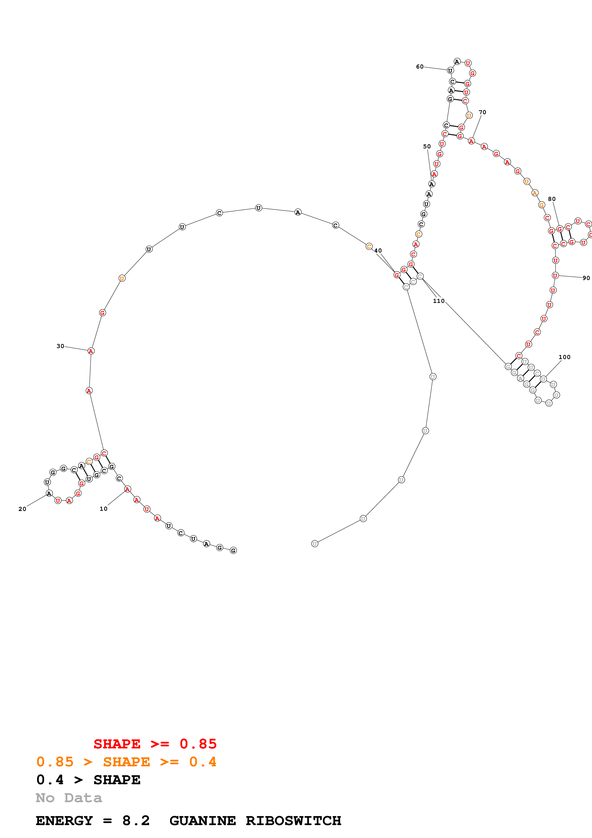 Fold Predict1.fasta Fold.ct --loop 30 --maximum 20 --percent 10 --SHAPE shape_unbound.txt --SHAPEintercept -0.4 --SHAPEslope 1.2 --temperature 310.15 --window 3