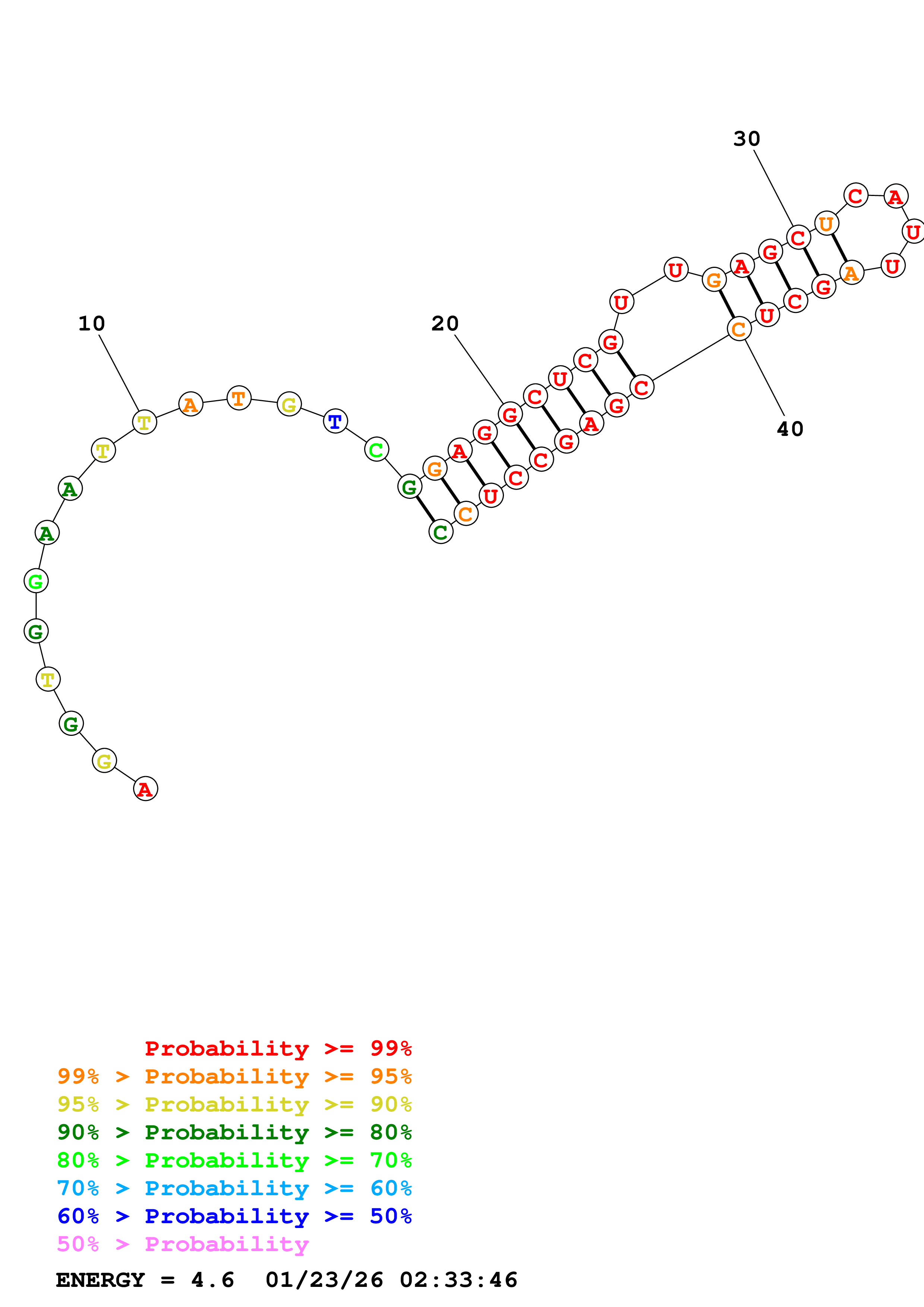 (Generate a structure or structures composed of highly probable base pairs. This is an alternative method for structure prediction that may have higher fidelity in structure prediction.)