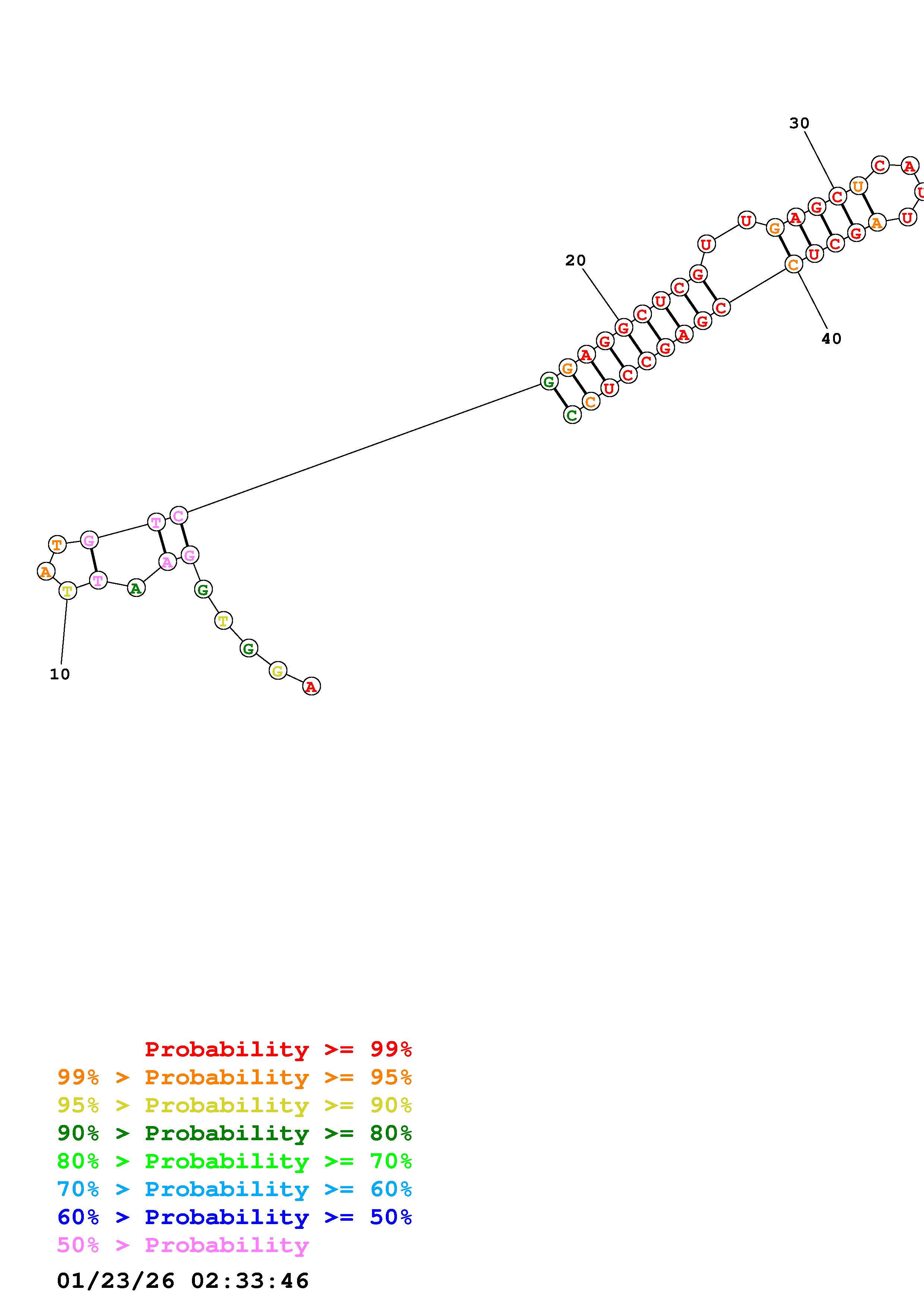 (Predict a secondary structure of probable base pairs, which might include pseudoknots.)