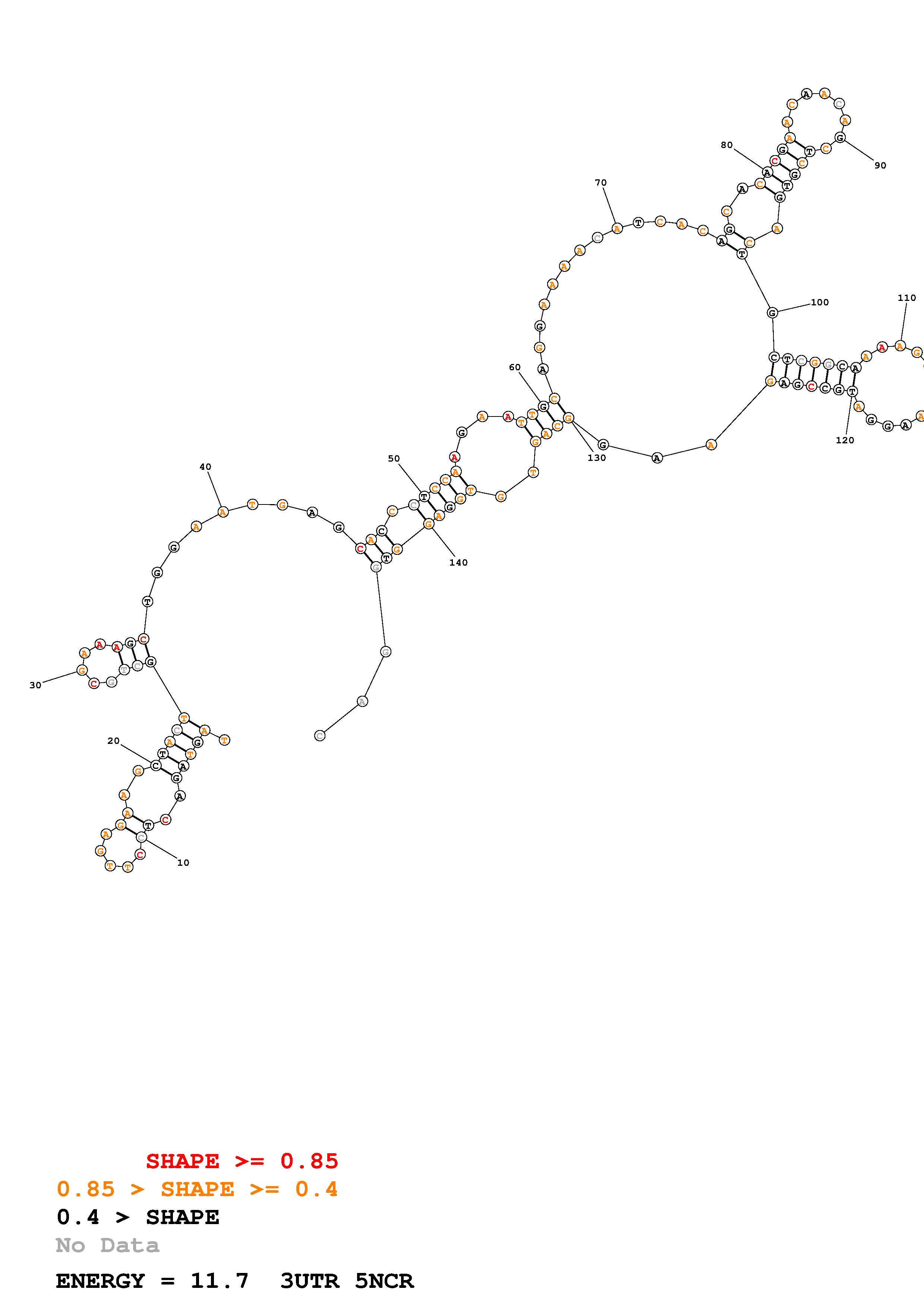 Fold Predict1.fasta Fold.ct --loop 30 --maximum 20 --percent 10 --SHAPE 3UTR_5NCR_Reactivity_profile.tsv --SHAPEintercept -0.6 --SHAPEslope 1.8 --temperature 310.15 --window 3
