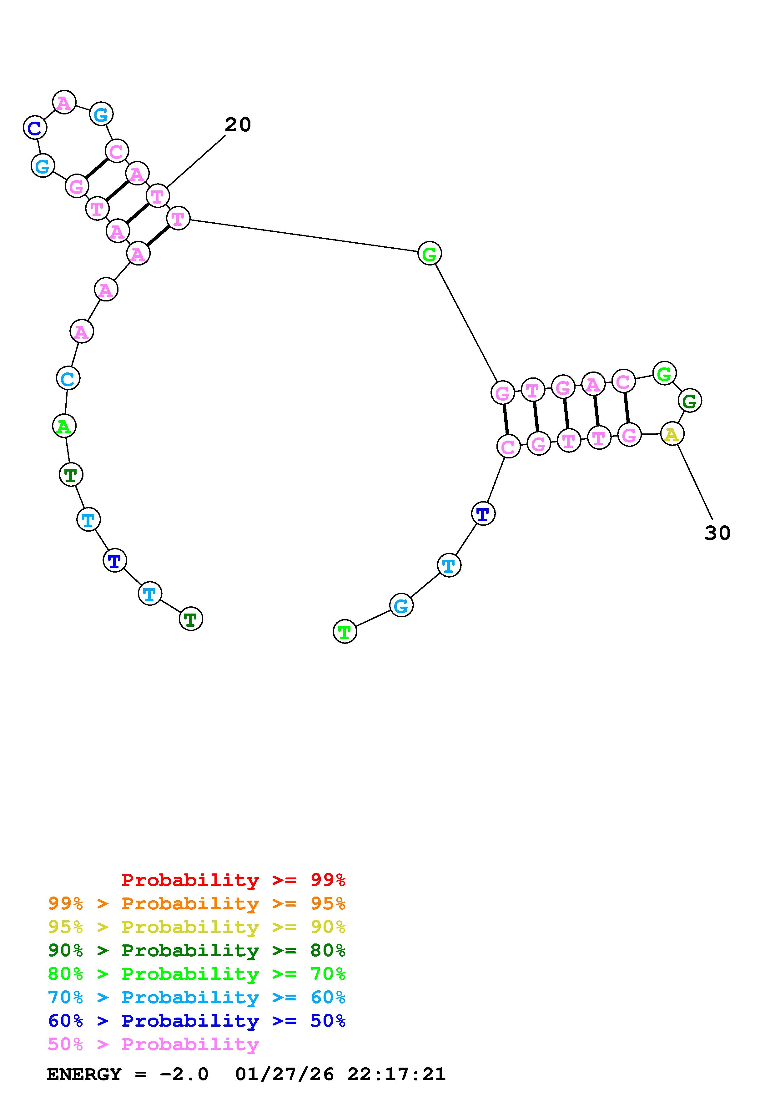 Fold Predict1.fasta Fold.ct --DNA --loop 30 --maximum 20 --percent 10 --temperature 310.15 --window 3