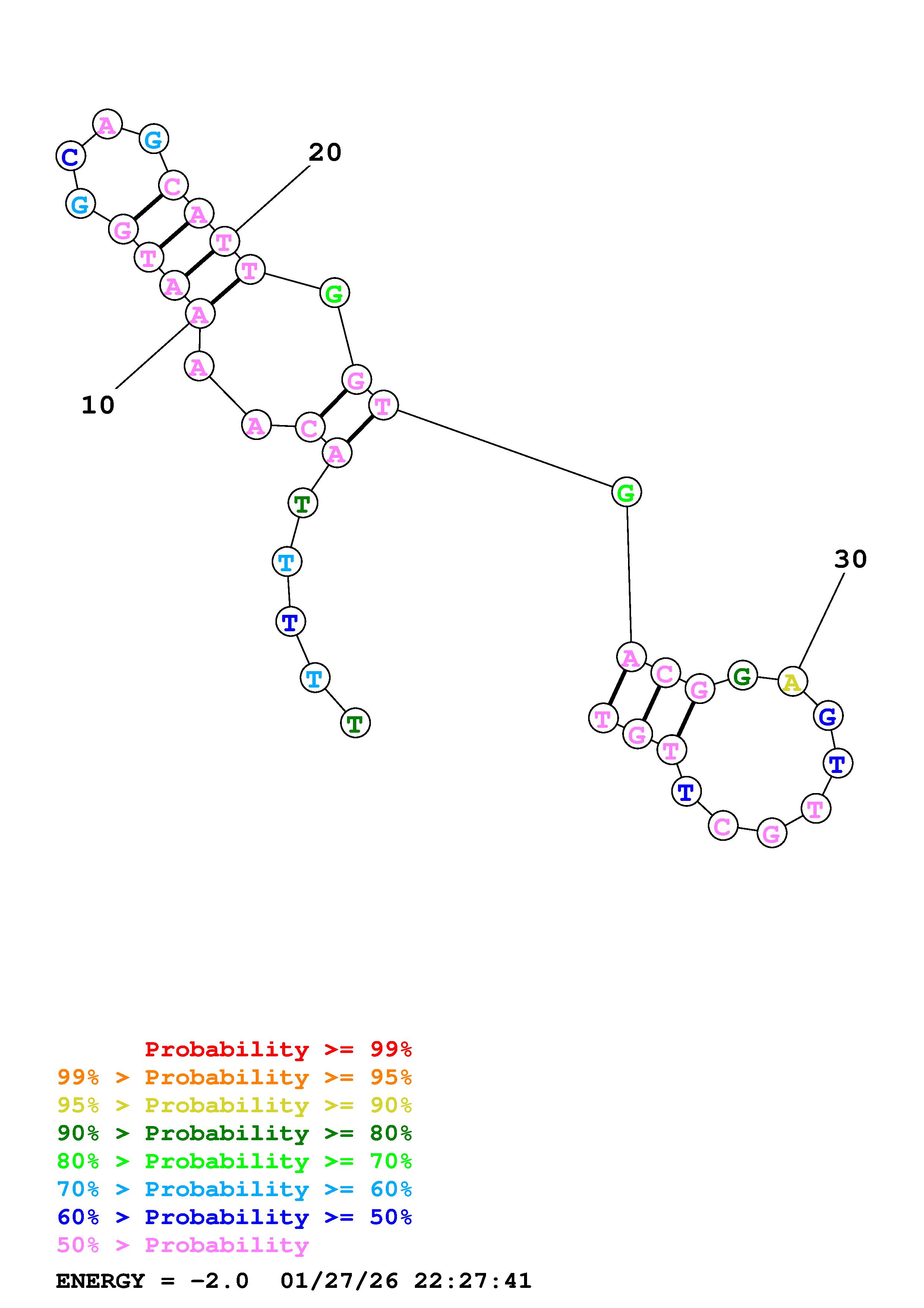 Fold Predict1.fasta Fold.ct --DNA --loop 30 --maximum 20 --percent 10 --temperature 310.15 --window 3