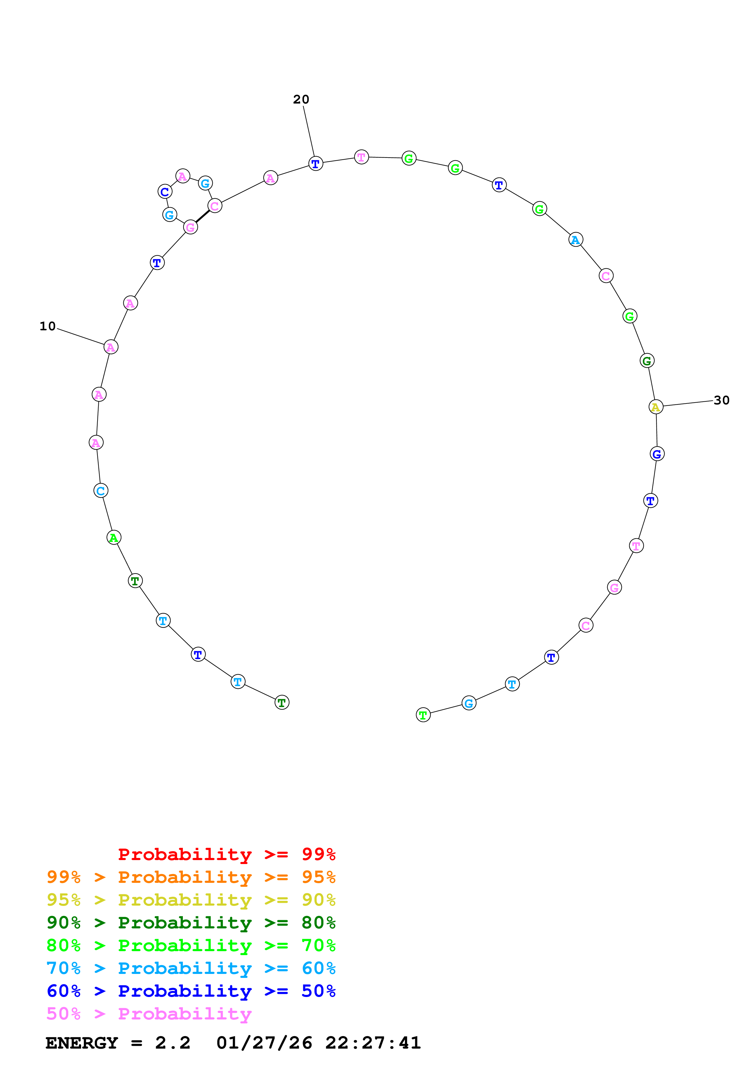 (Generate a structure or structures composed of highly probable base pairs. This is an alternative method for structure prediction that may have higher fidelity in structure prediction.)