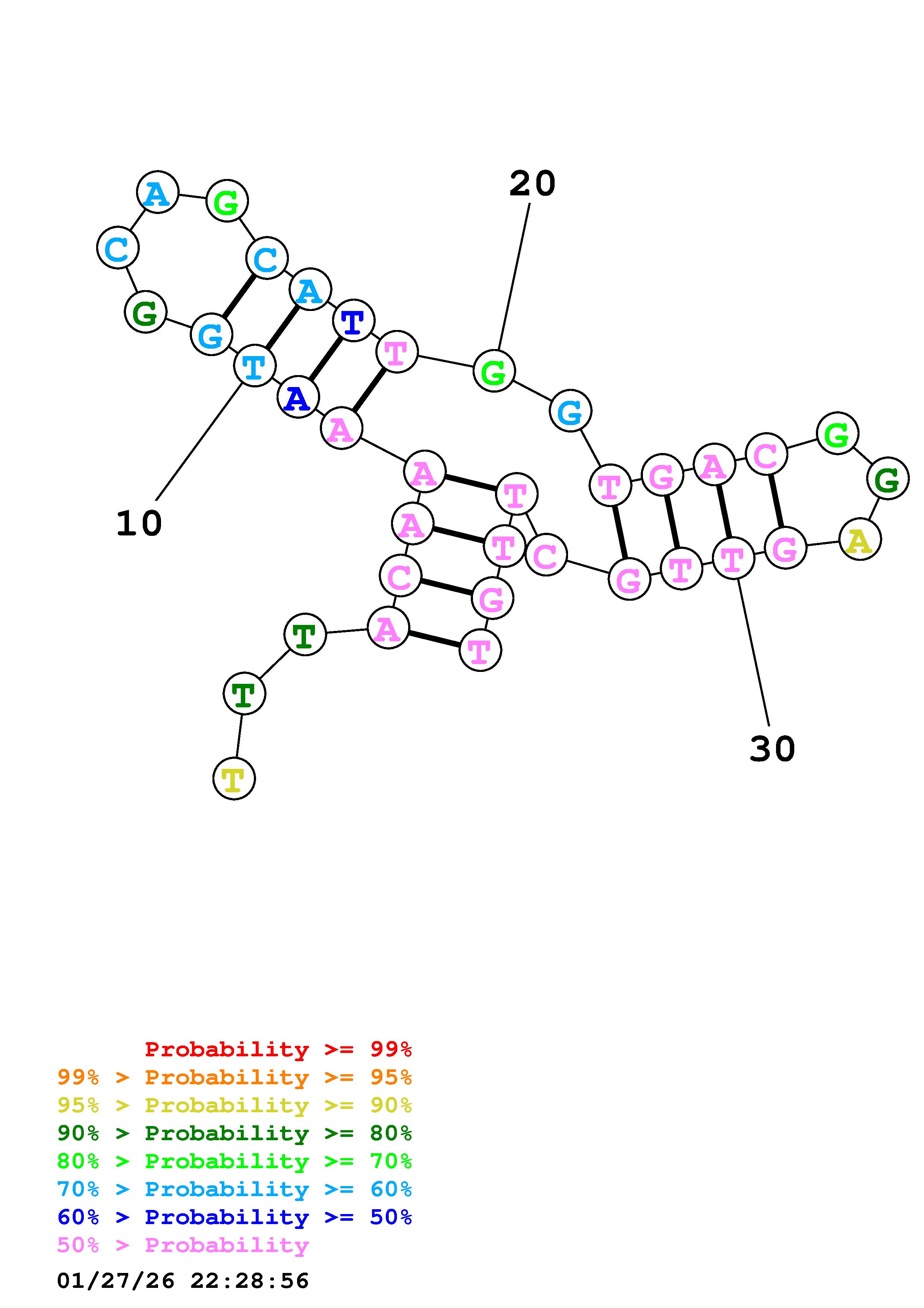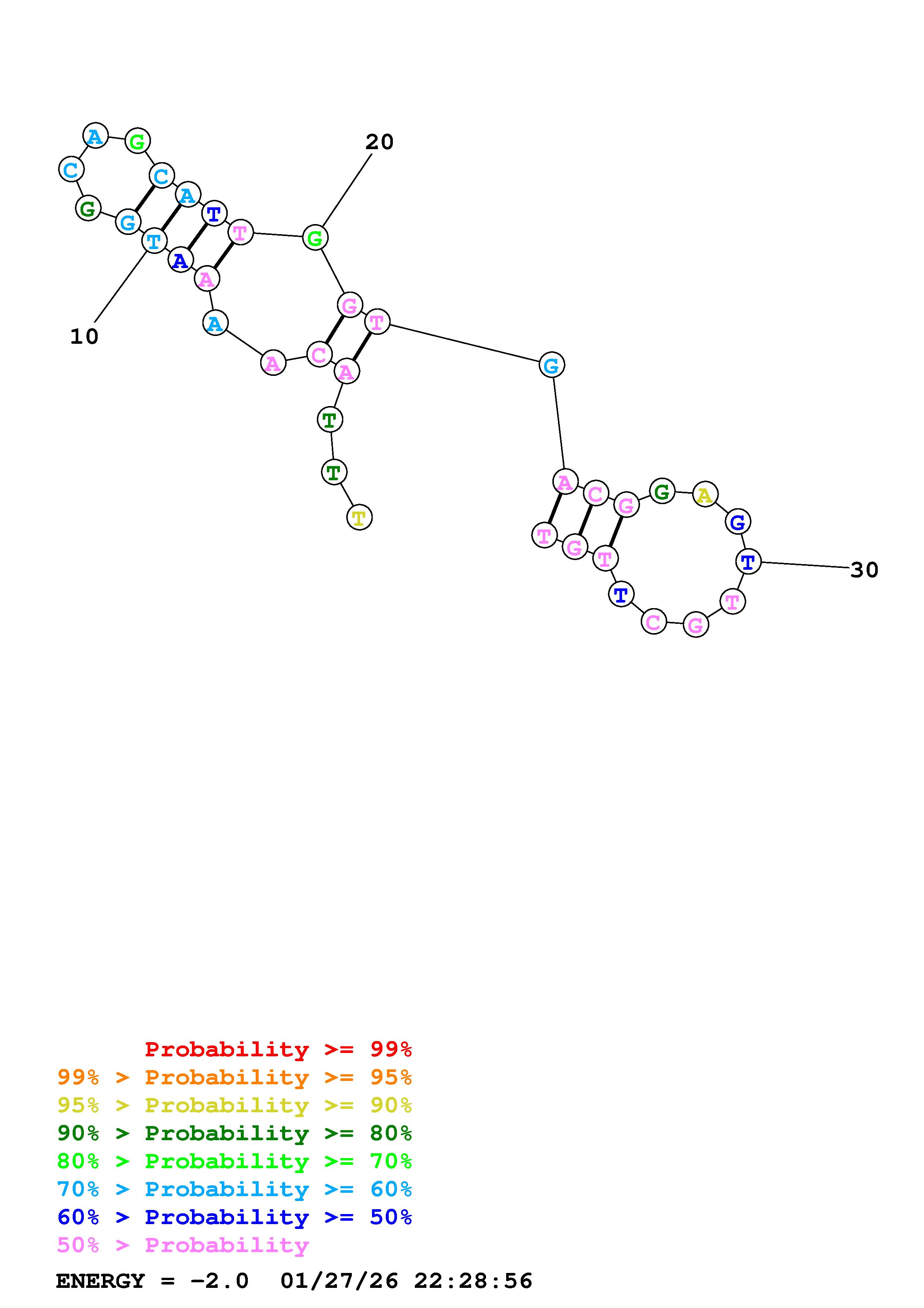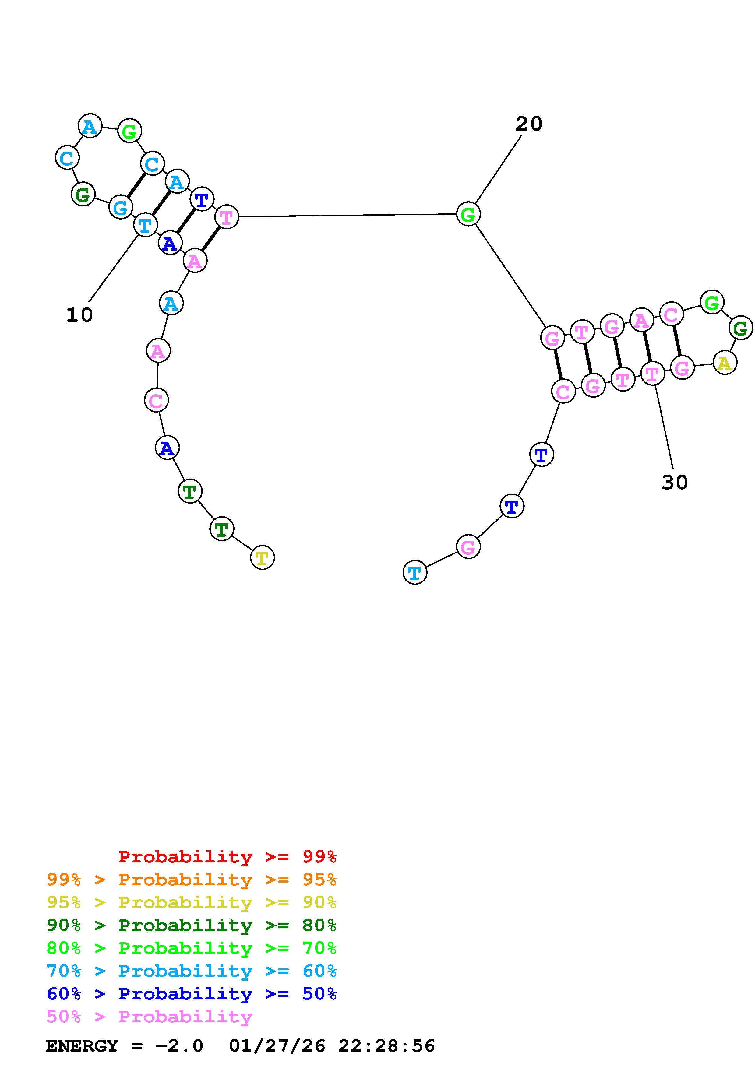 Fold Predict1.fasta Fold.ct --DNA --loop 30 --maximum 20 --percent 10 --temperature 310.15 --window 3