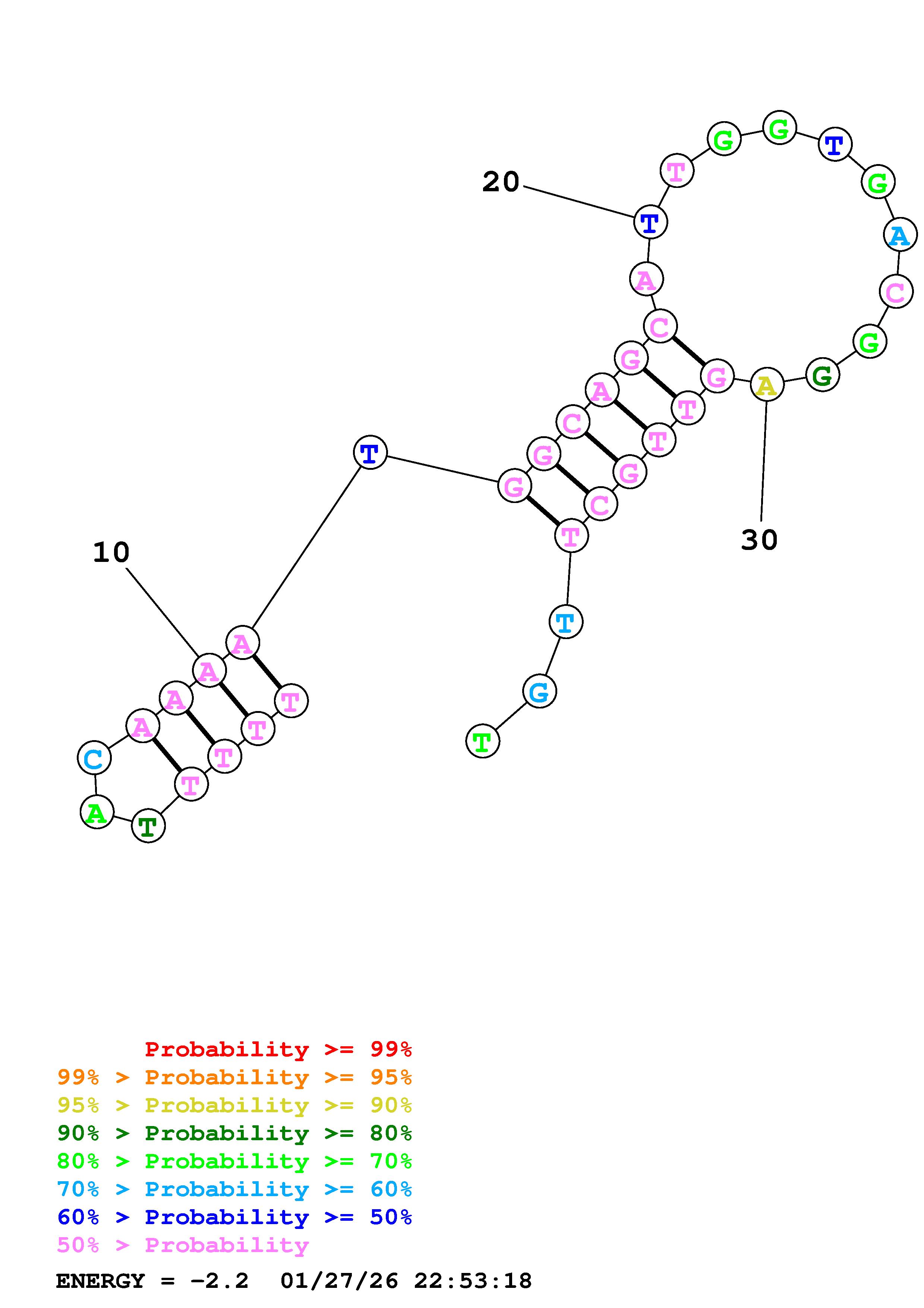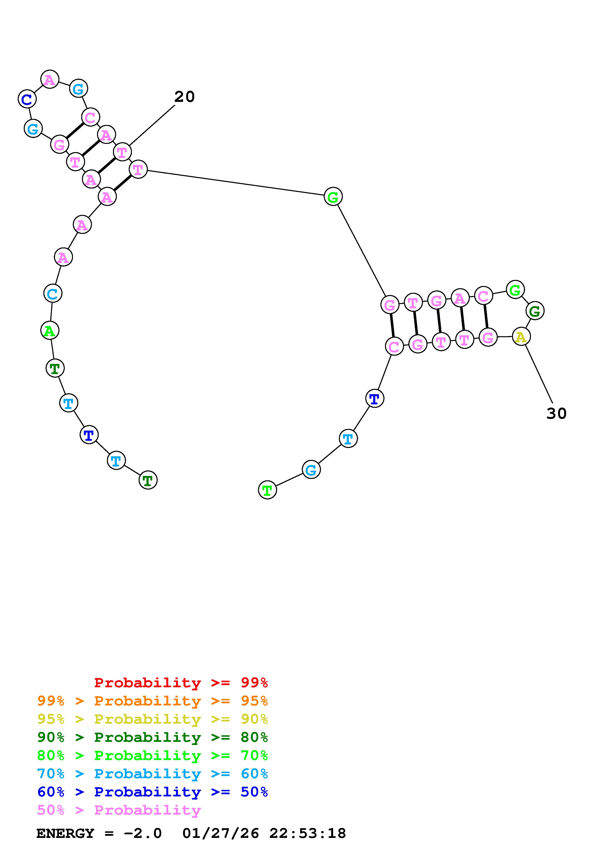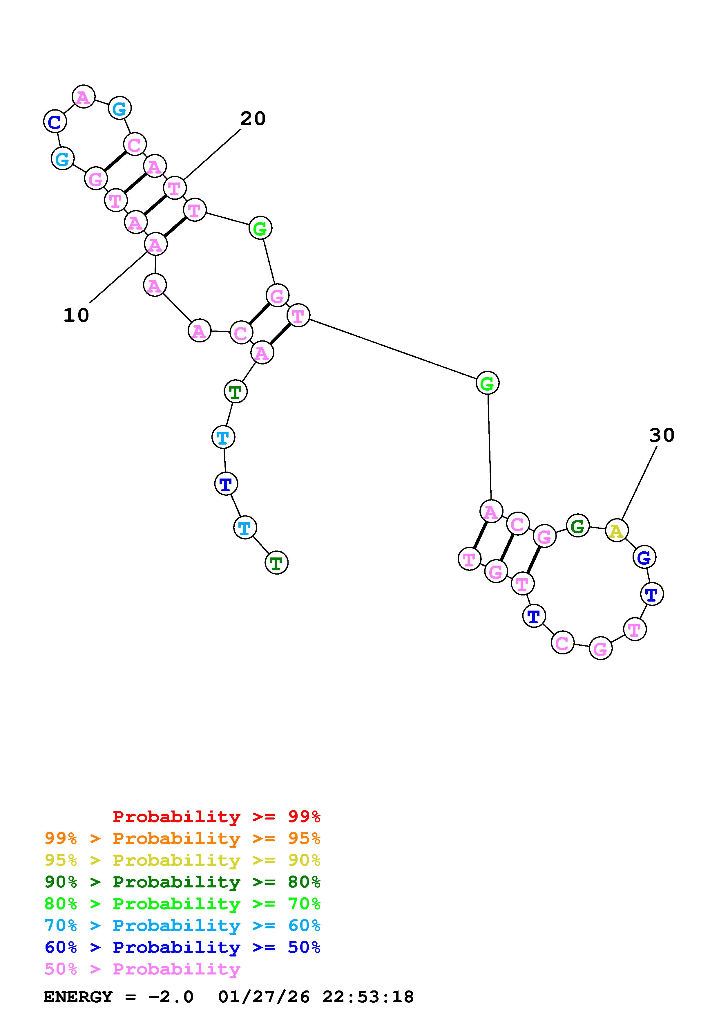 Fold Predict1.fasta Fold.ct --DNA --loop 30 --maximum 20 --percent 10 --temperature 310.15 --window 3