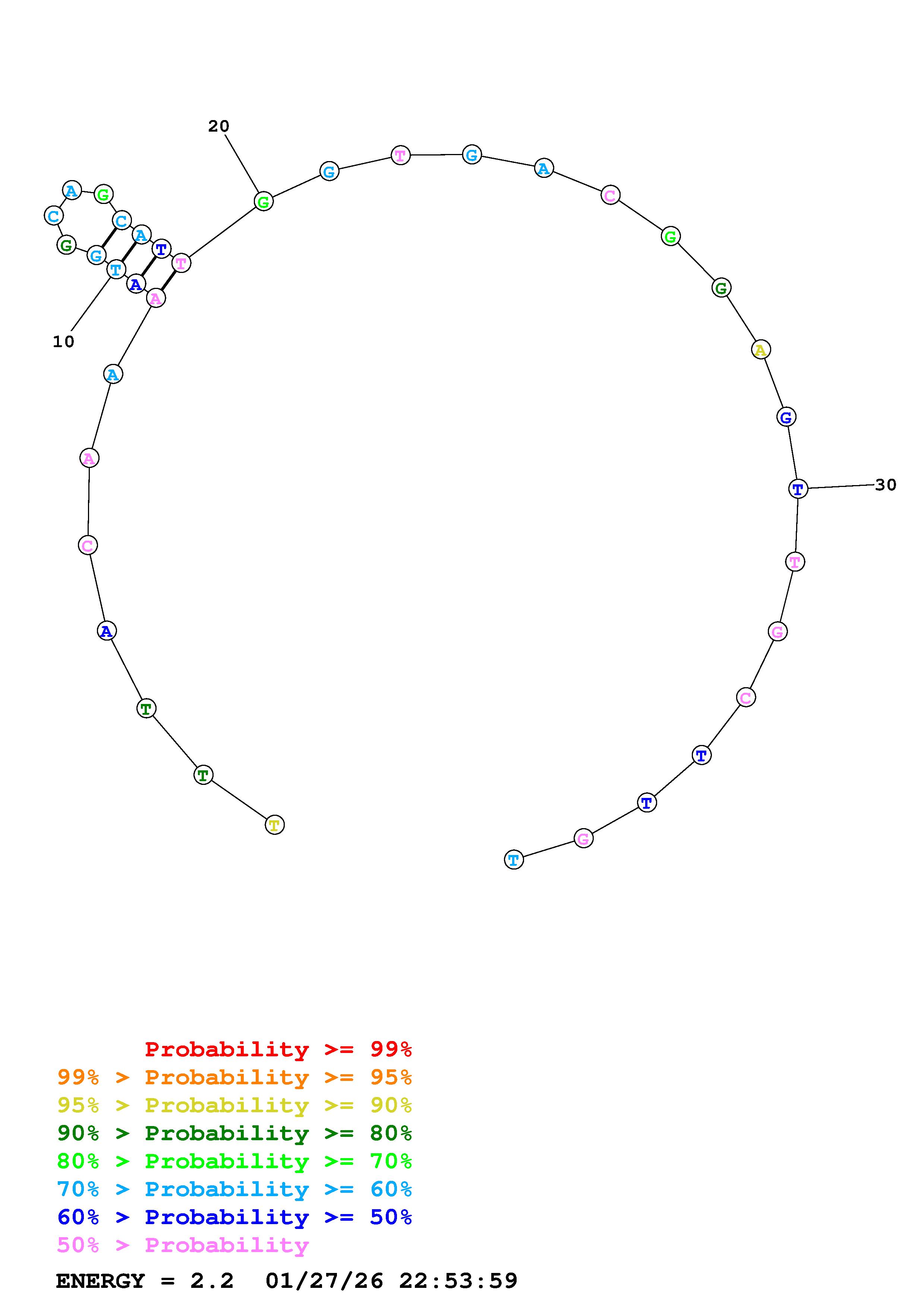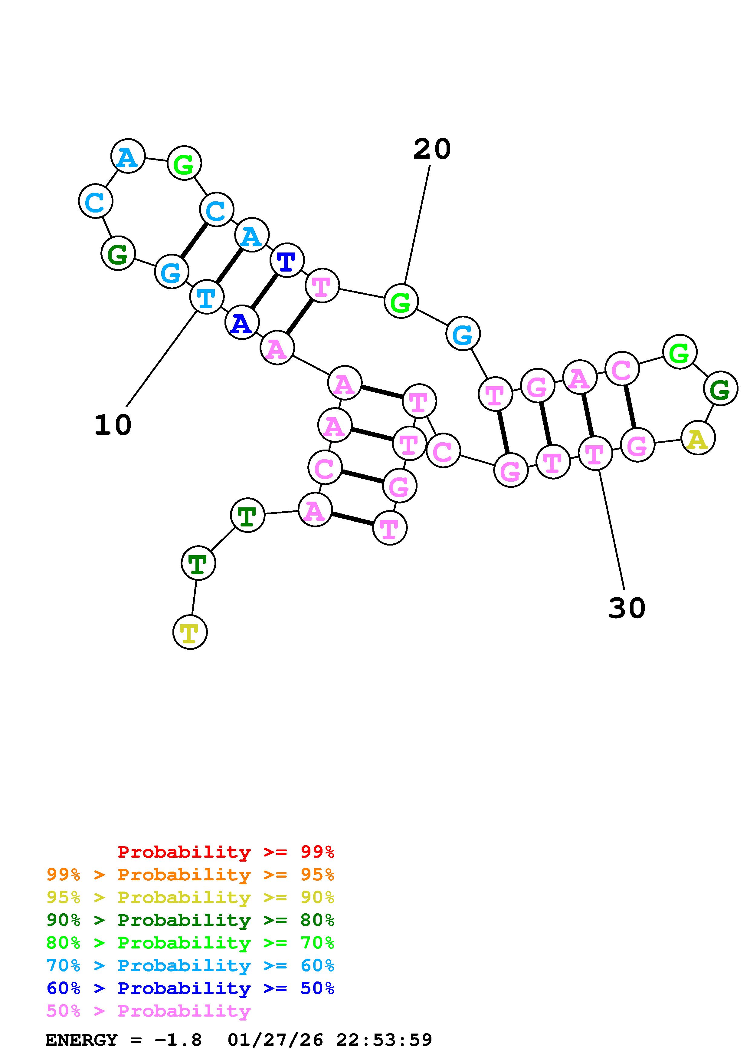 Fold Predict1.fasta Fold.ct --DNA --loop 30 --maximum 20 --percent 10 --temperature 310.15 --window 3