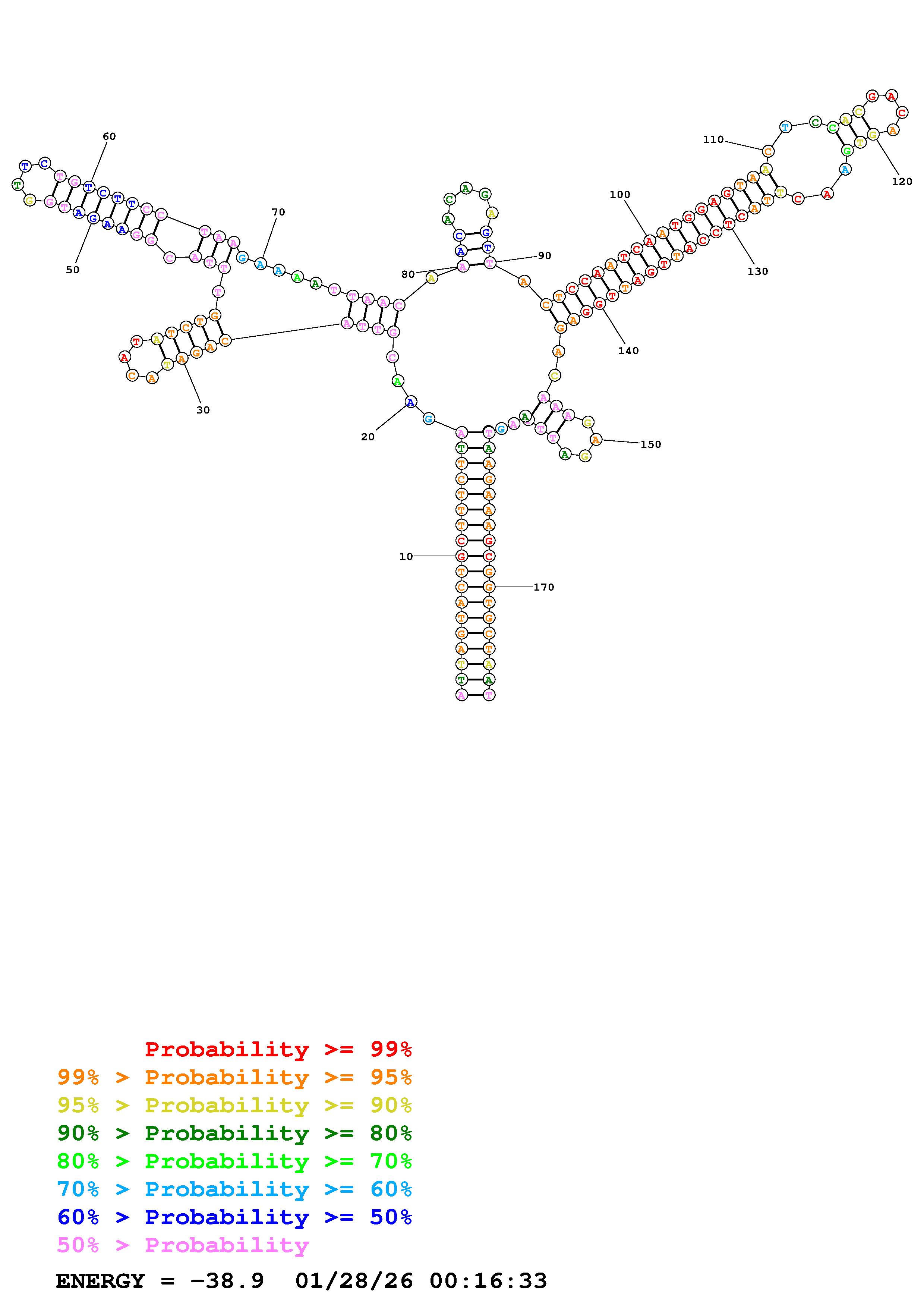 Fold Predict1.fasta Fold.ct --DNA --loop 30 --maximum 20 --percent 10 --temperature 310.15 --window 3