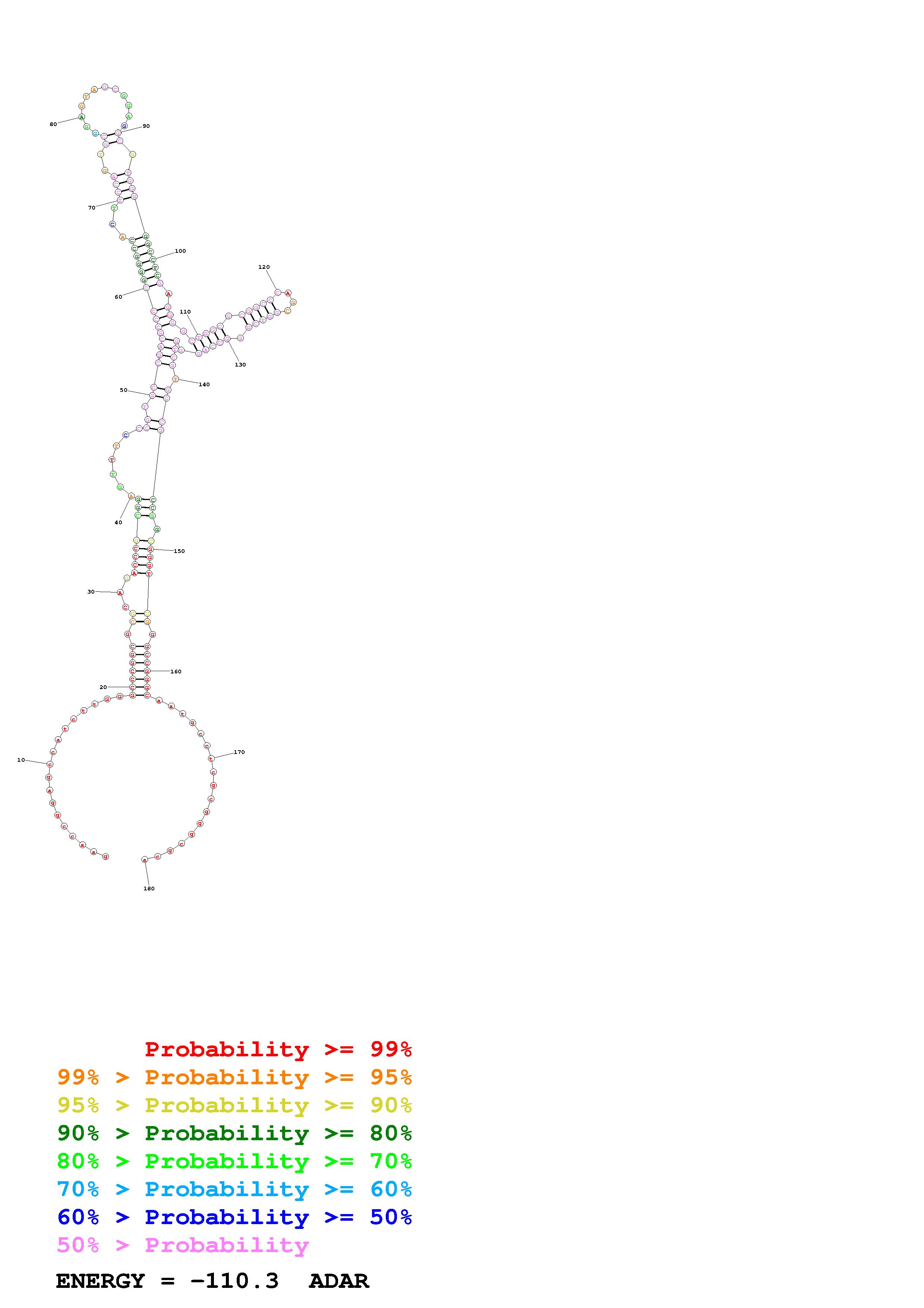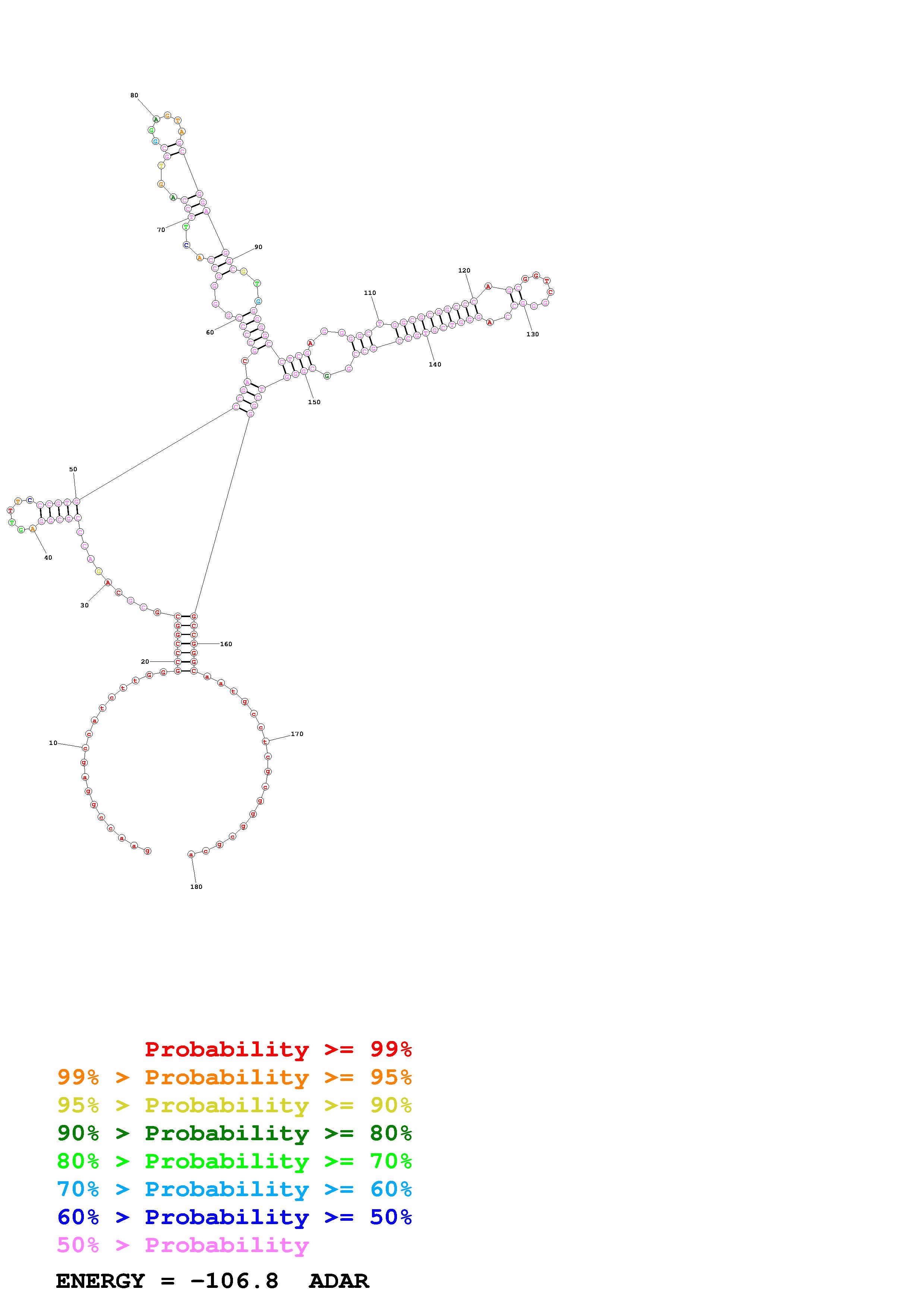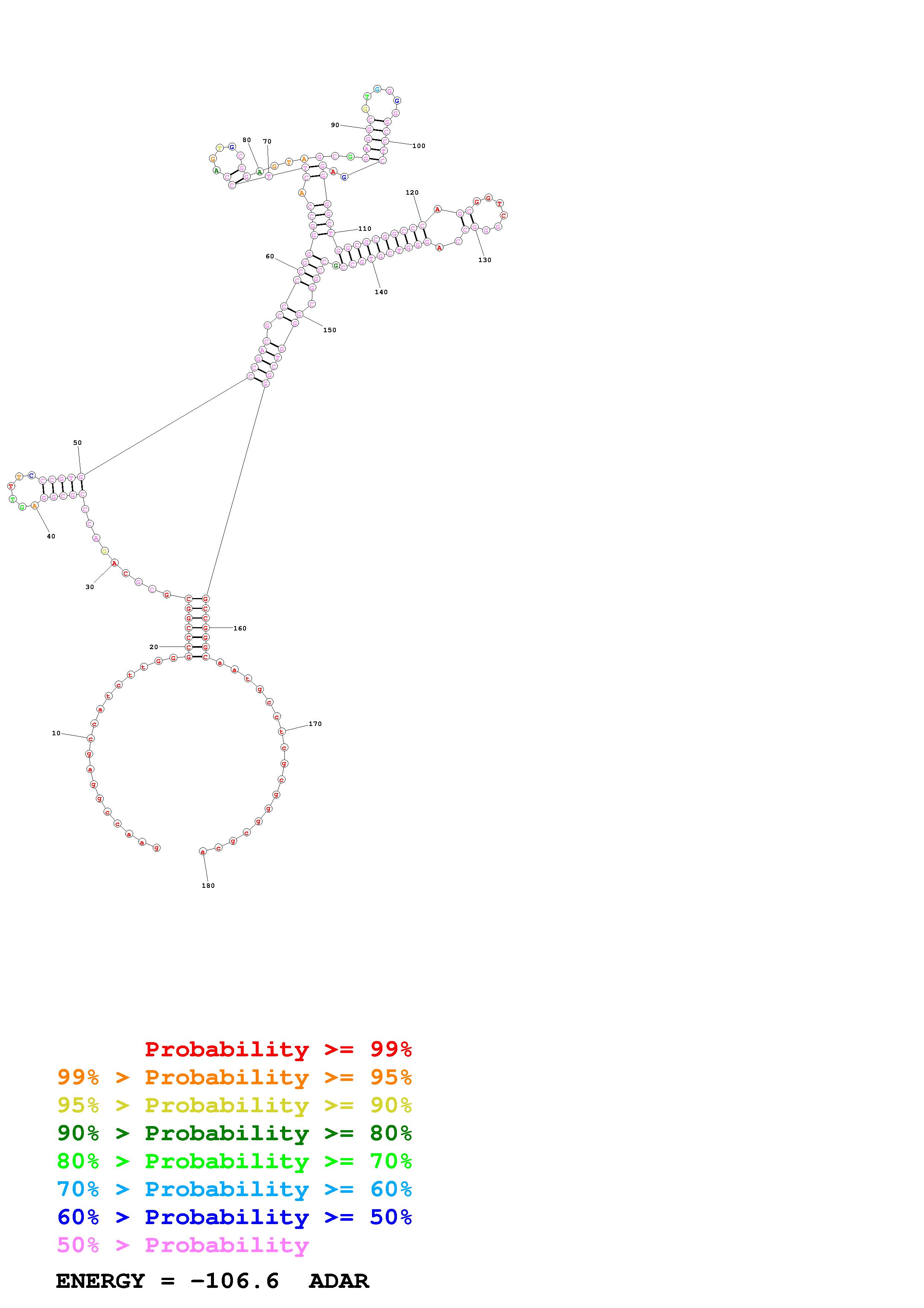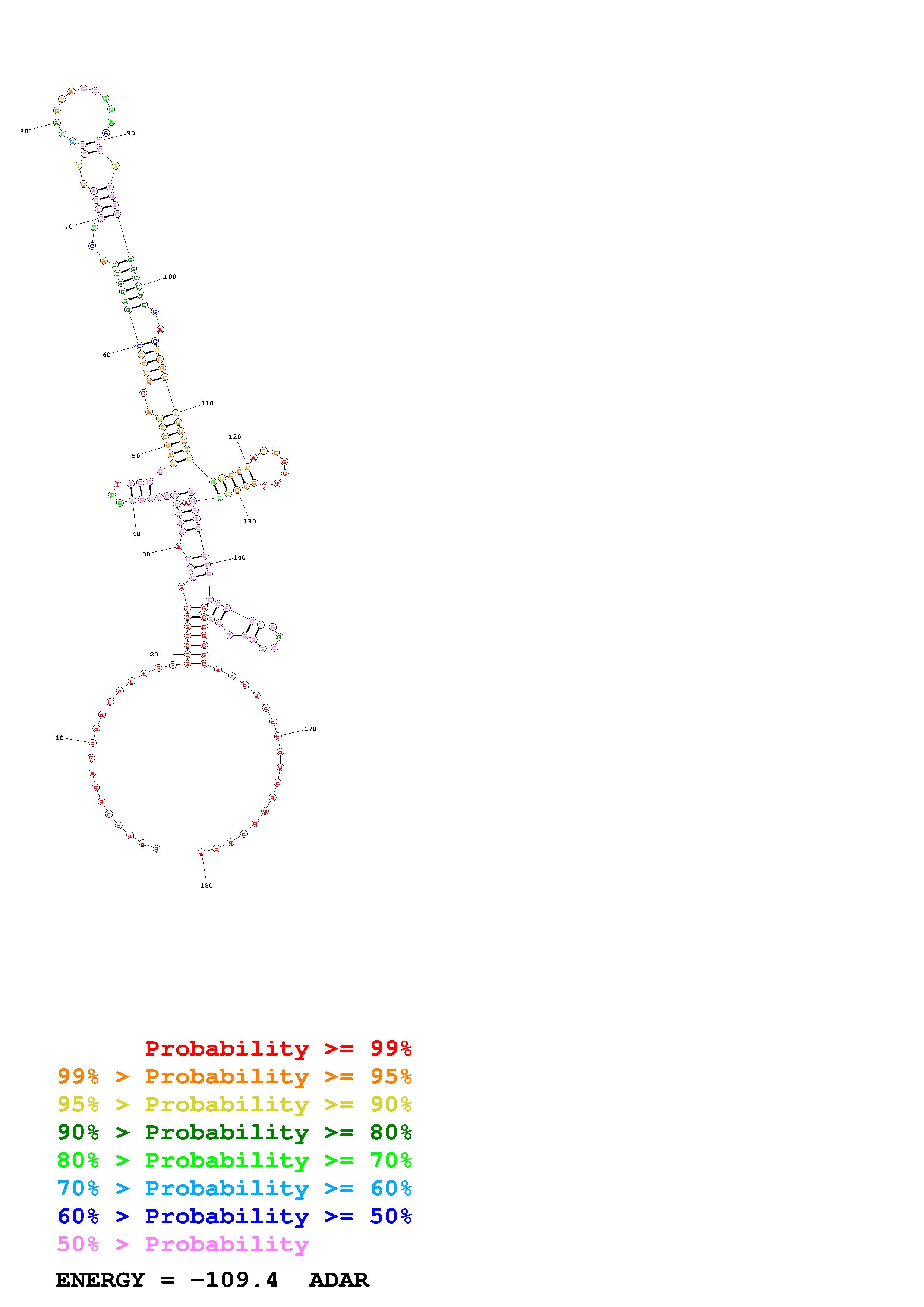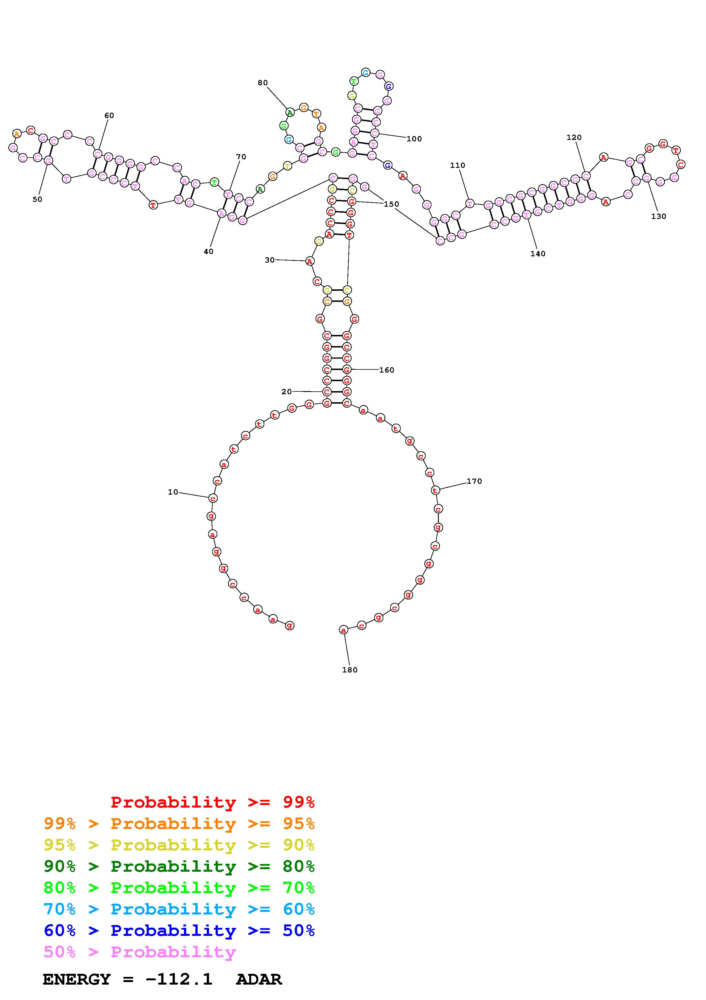 Fold Predict1.fasta Fold.ct --loop 30 --maximum 20 --percent 10 --SHAPE CT_S99_ADAR.shape --SHAPEintercept -0.6 --SHAPEslope 1.8 --temperature 310.15 --window 3