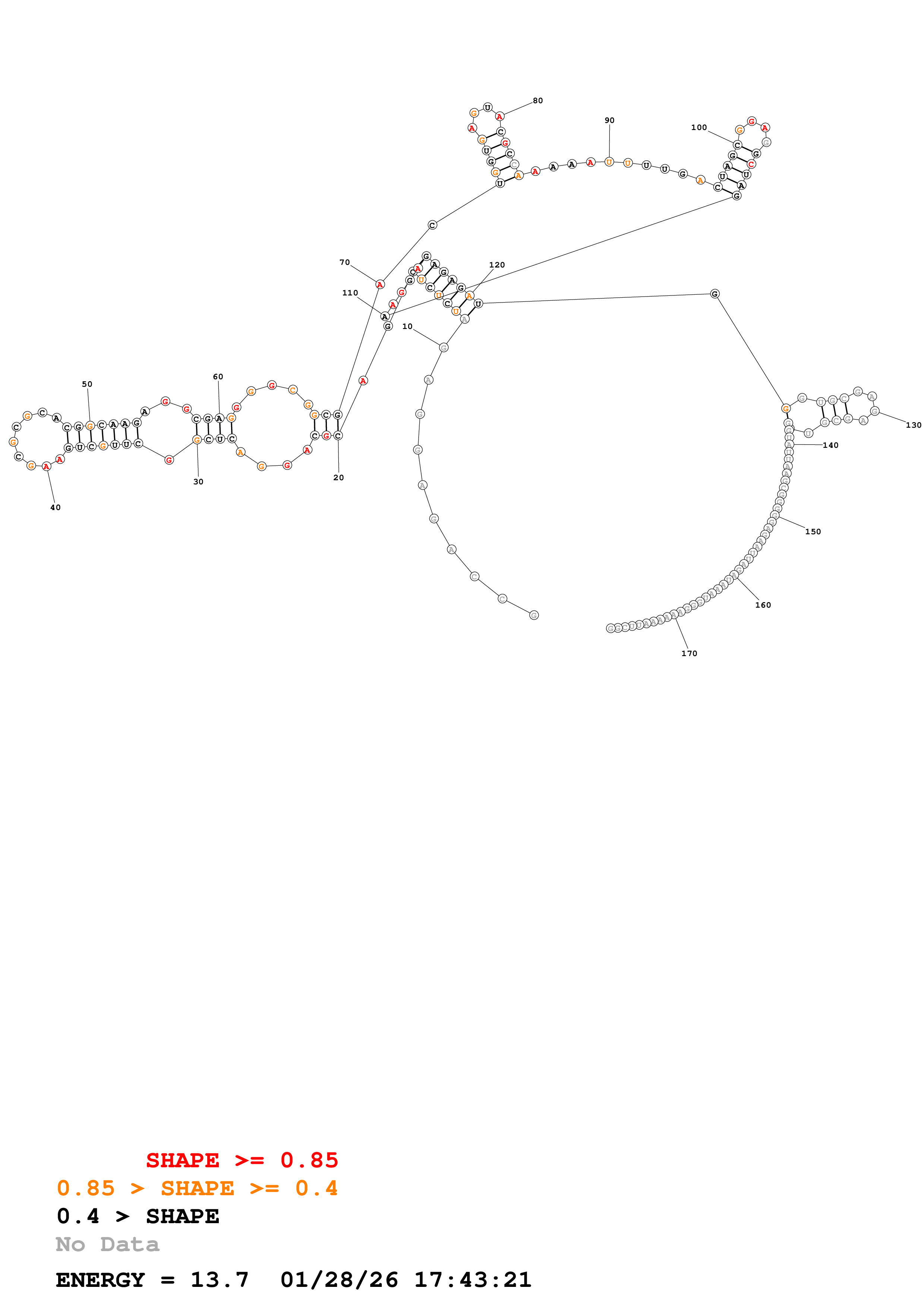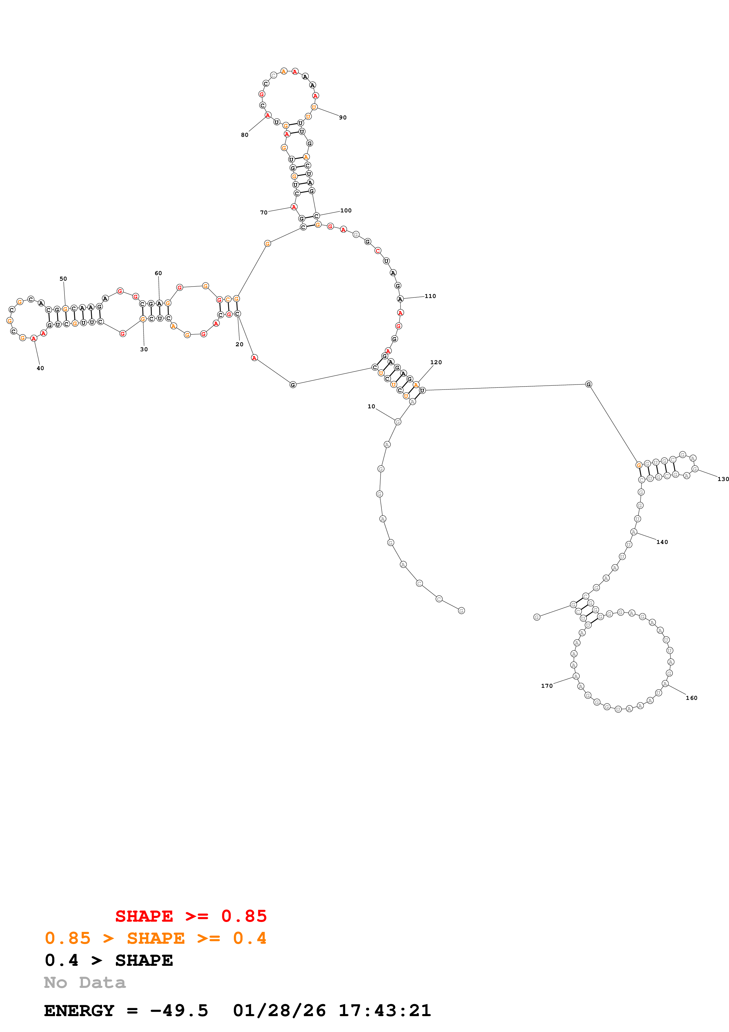 Fold Predict1.fasta Fold.ct --loop 30 --maximum 20 --percent 10 --SHAPE HIV_216_395_reactivity_psionly.shape --SHAPEintercept -0.6 --SHAPEslope 1.8 --temperature 310.15 --window 3