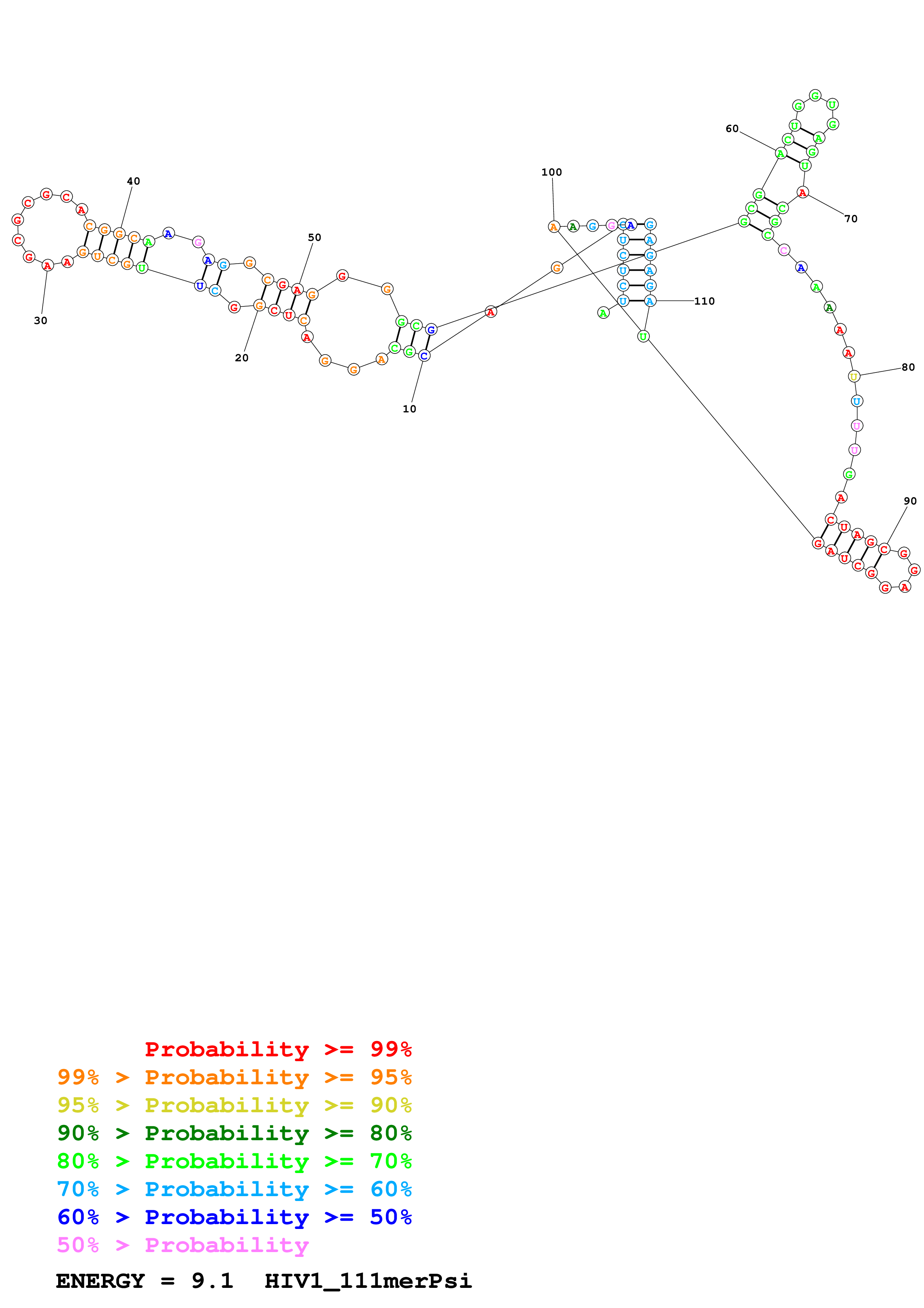 Fold HIV1_111merPsi.fasta Fold.ct --loop 30 --maximum 20 --percent 10 --temperature 310.15 --window 3