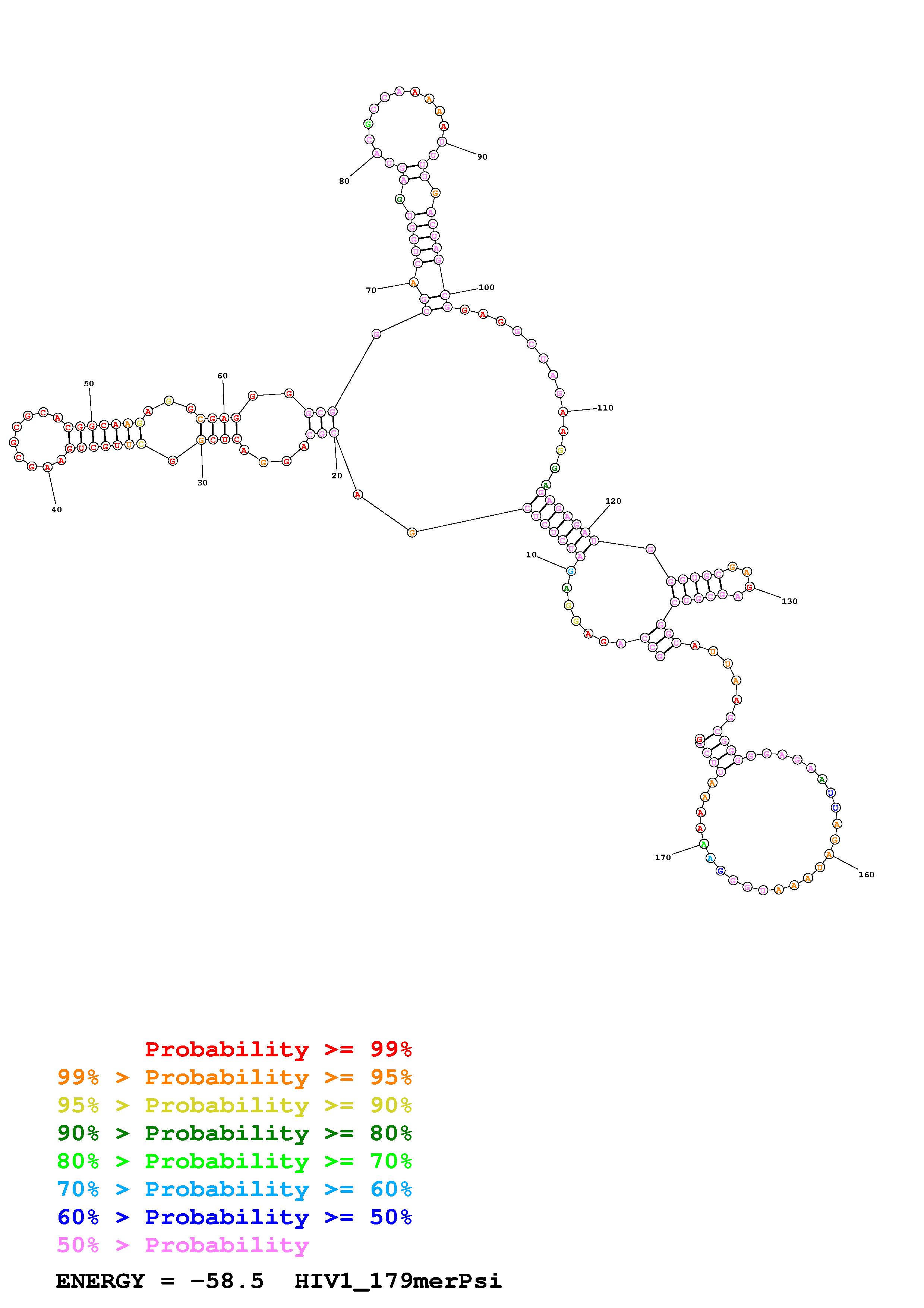 Fold HIV1_179mer.fasta Fold.ct --loop 30 --maximum 20 --percent 10 --SHAPE HIV_216_395_reactivity.shape --SHAPEintercept -0.6 --SHAPEslope 1.8 --temperature 310.15 --window 3