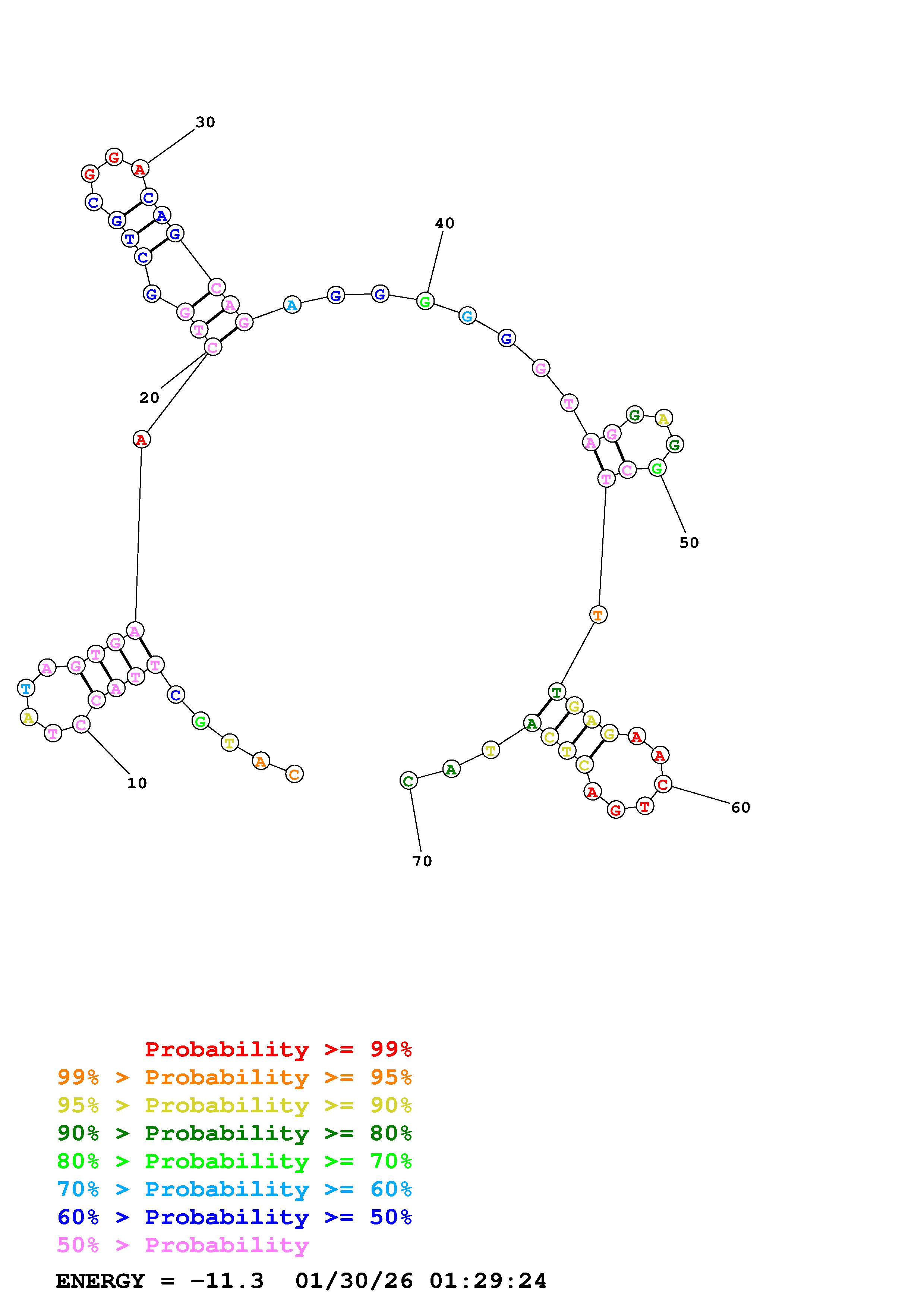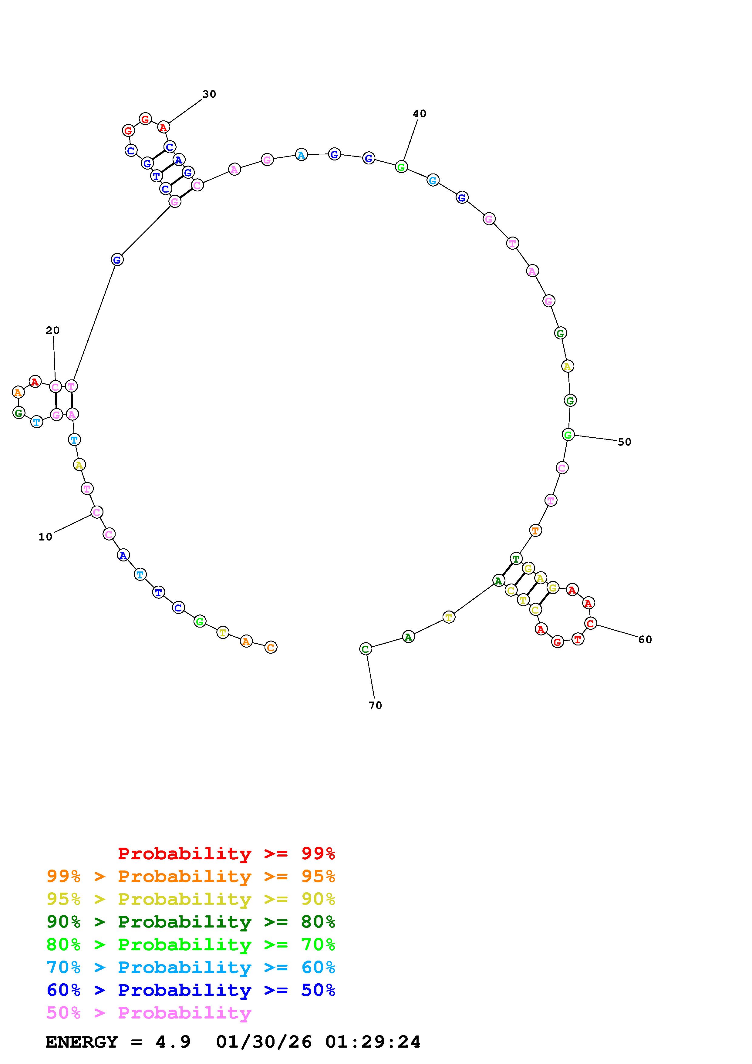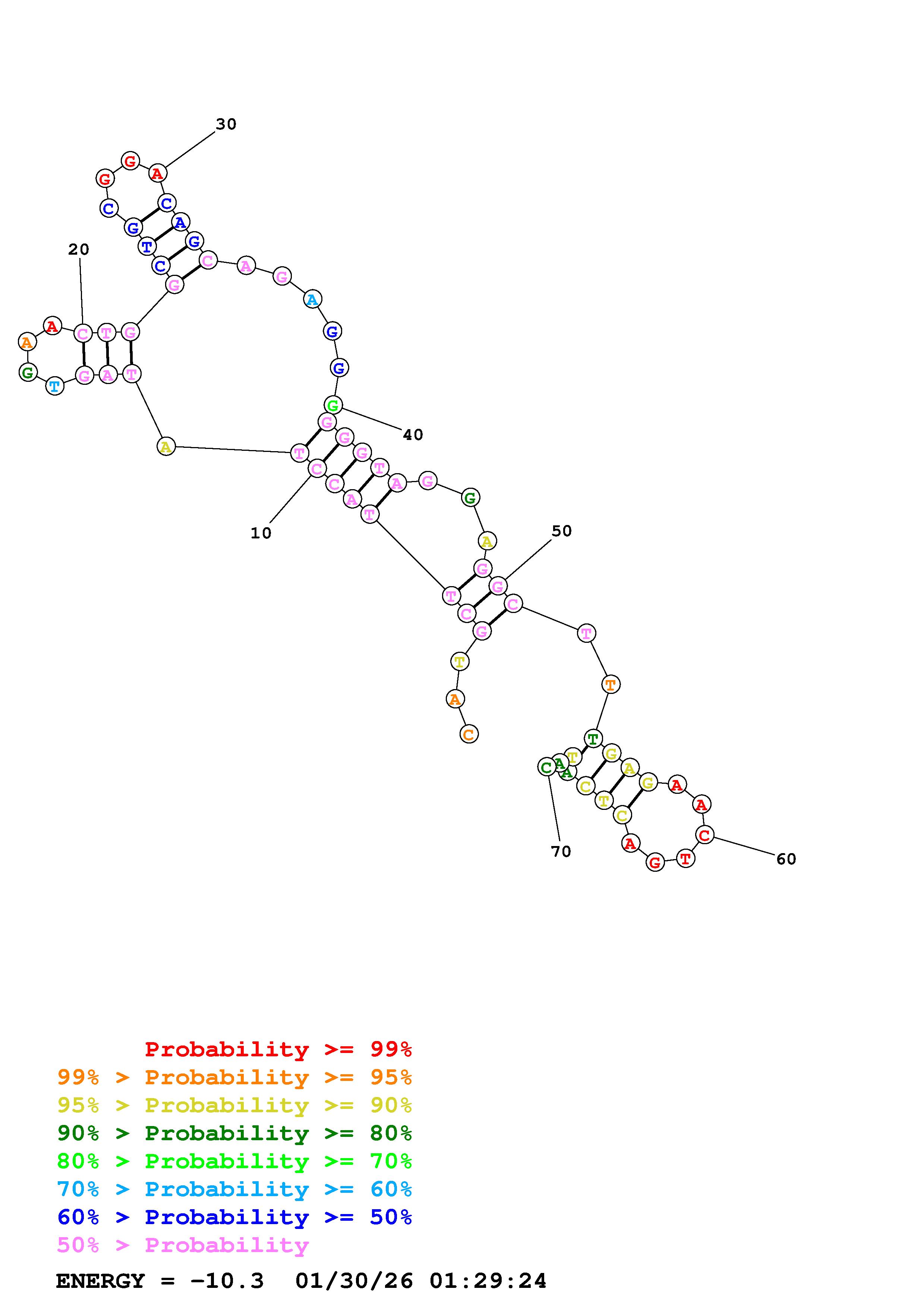 Fold Predict1.fasta Fold.ct --DNA --loop 30 --maximum 20 --percent 10 --temperature 298 --window 3