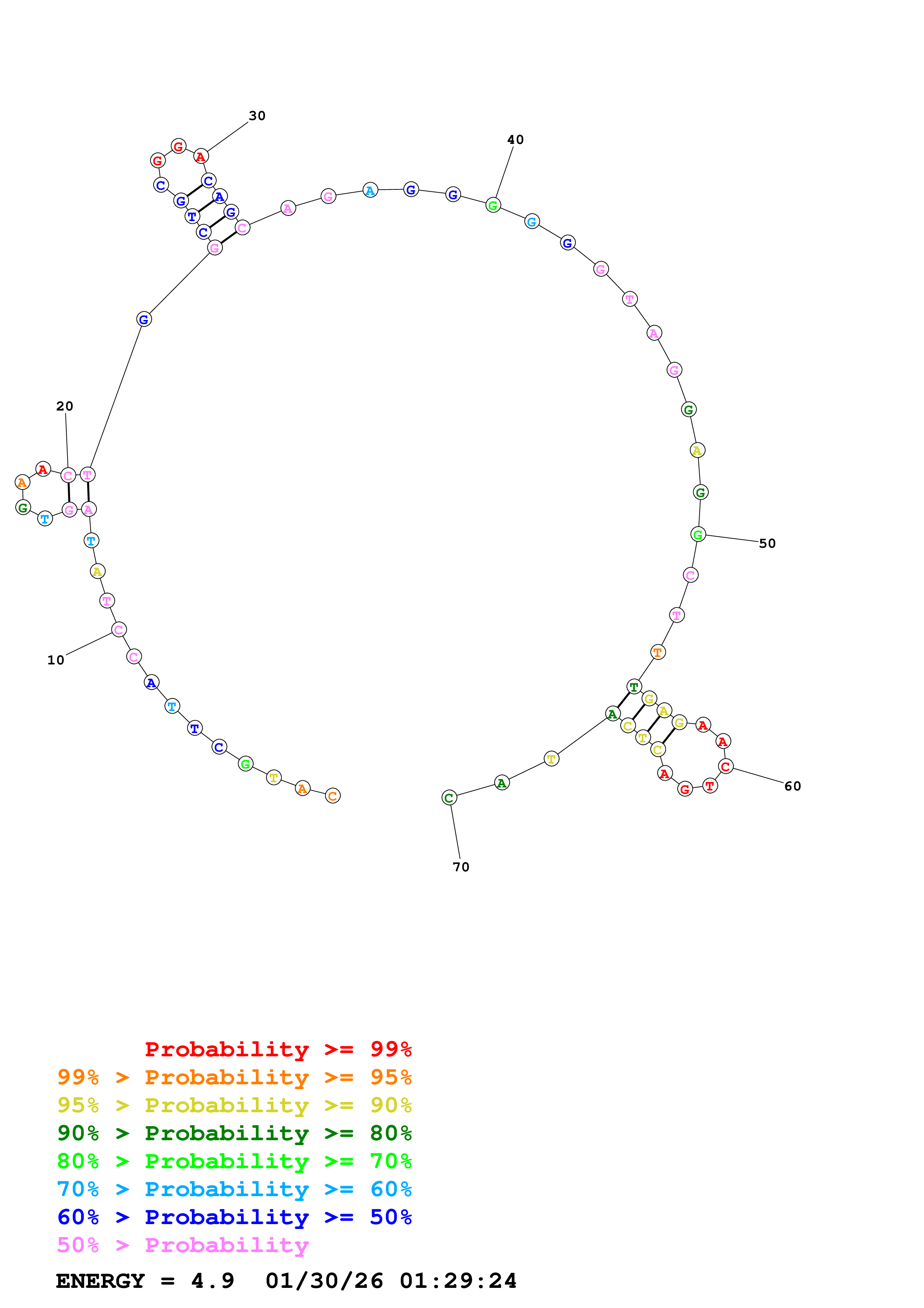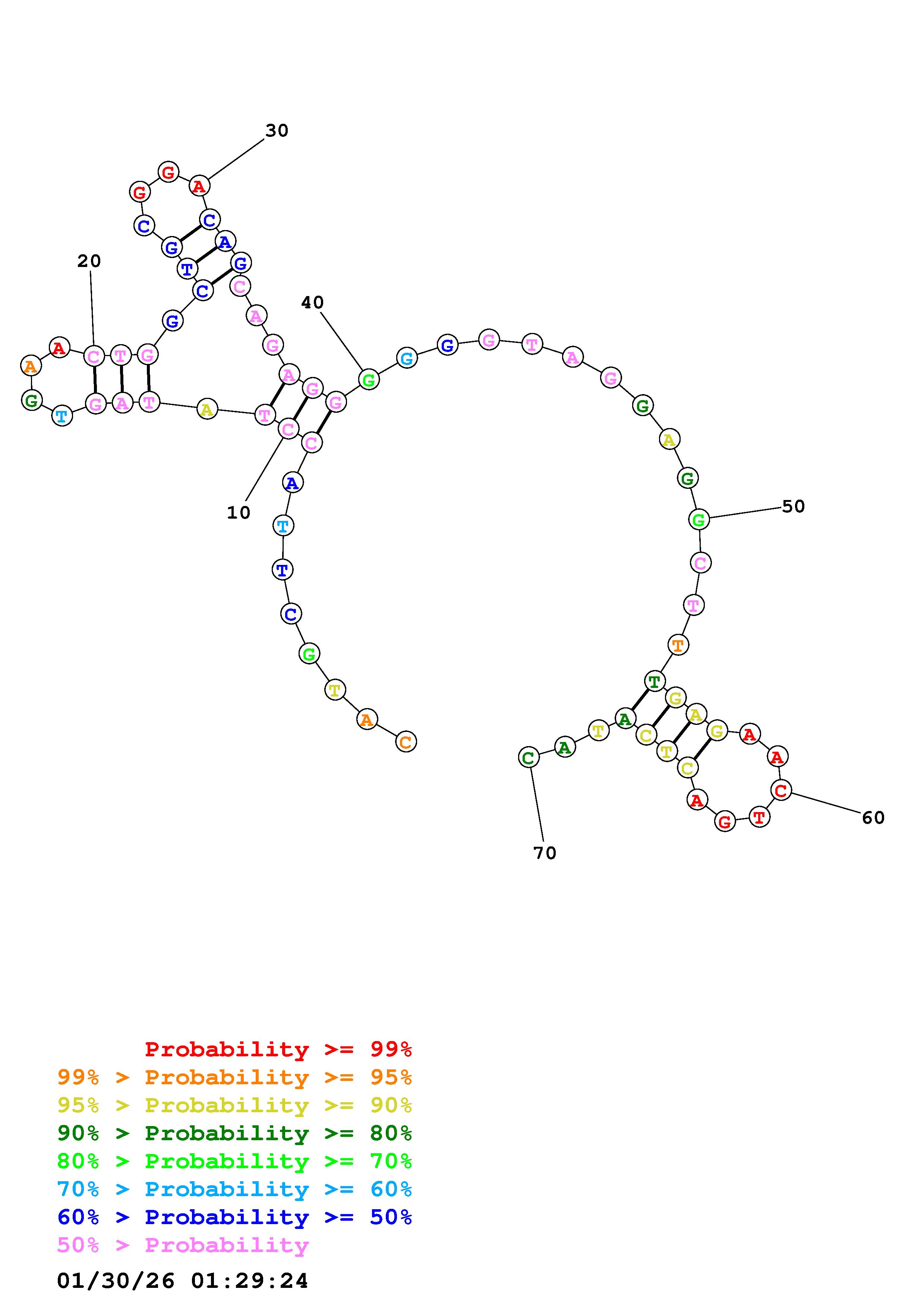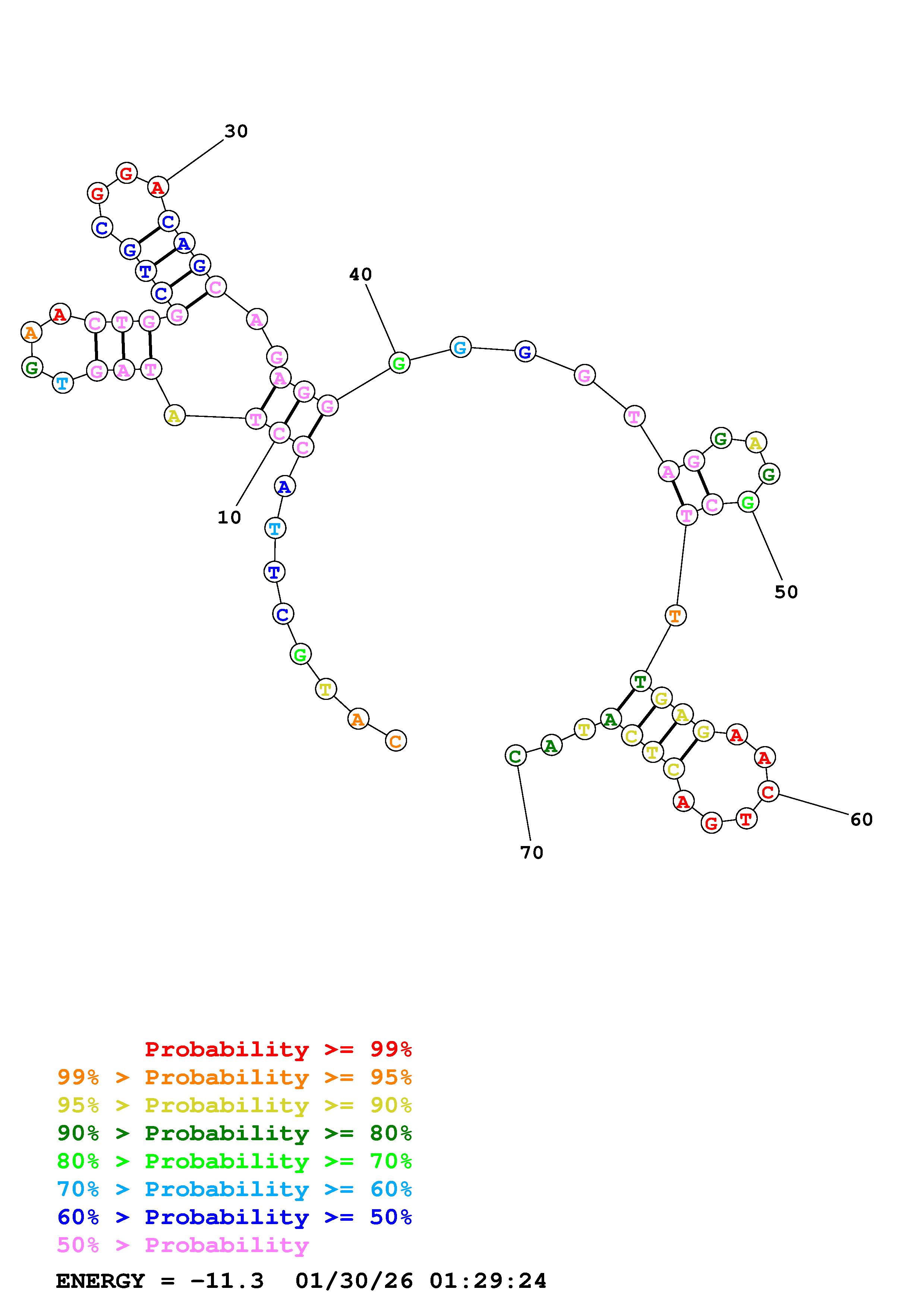 Fold Predict1.fasta Fold.ct --DNA --loop 30 --maximum 20 --percent 10 --temperature 298 --window 3