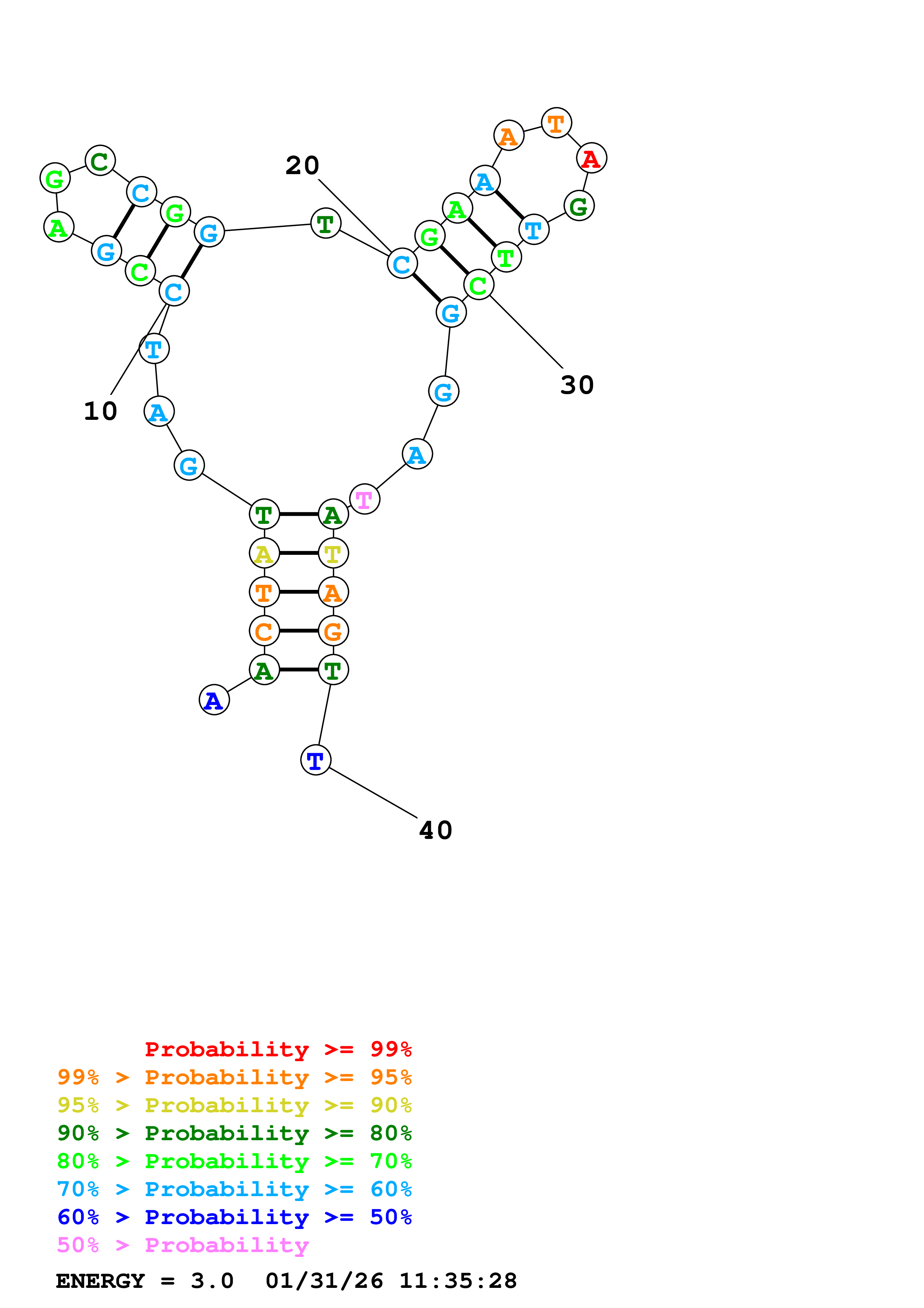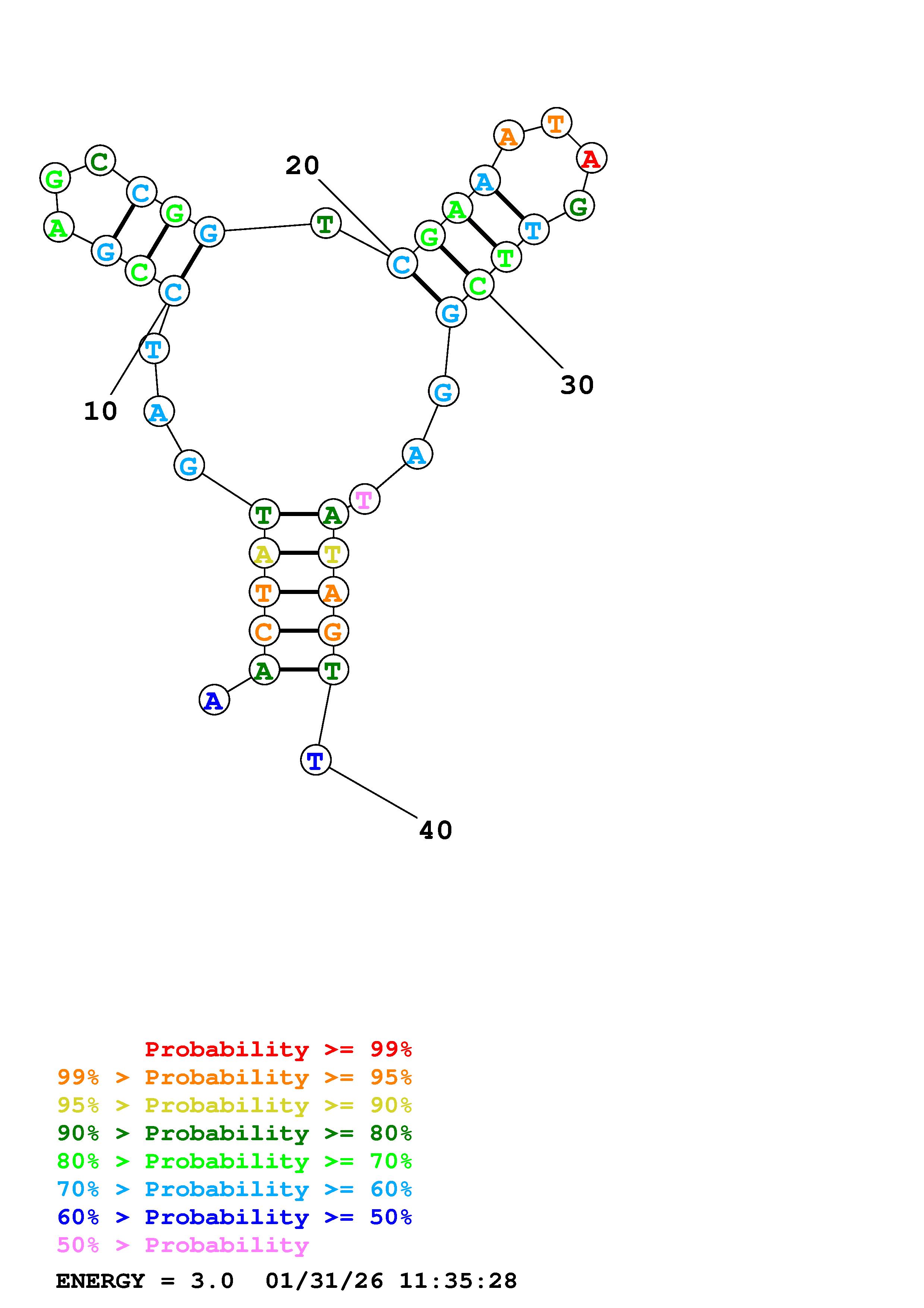 Fold Predict1.fasta Fold.ct --DNA --loop 30 --maximum 20 --percent 10 --temperature 310.15 --window 3