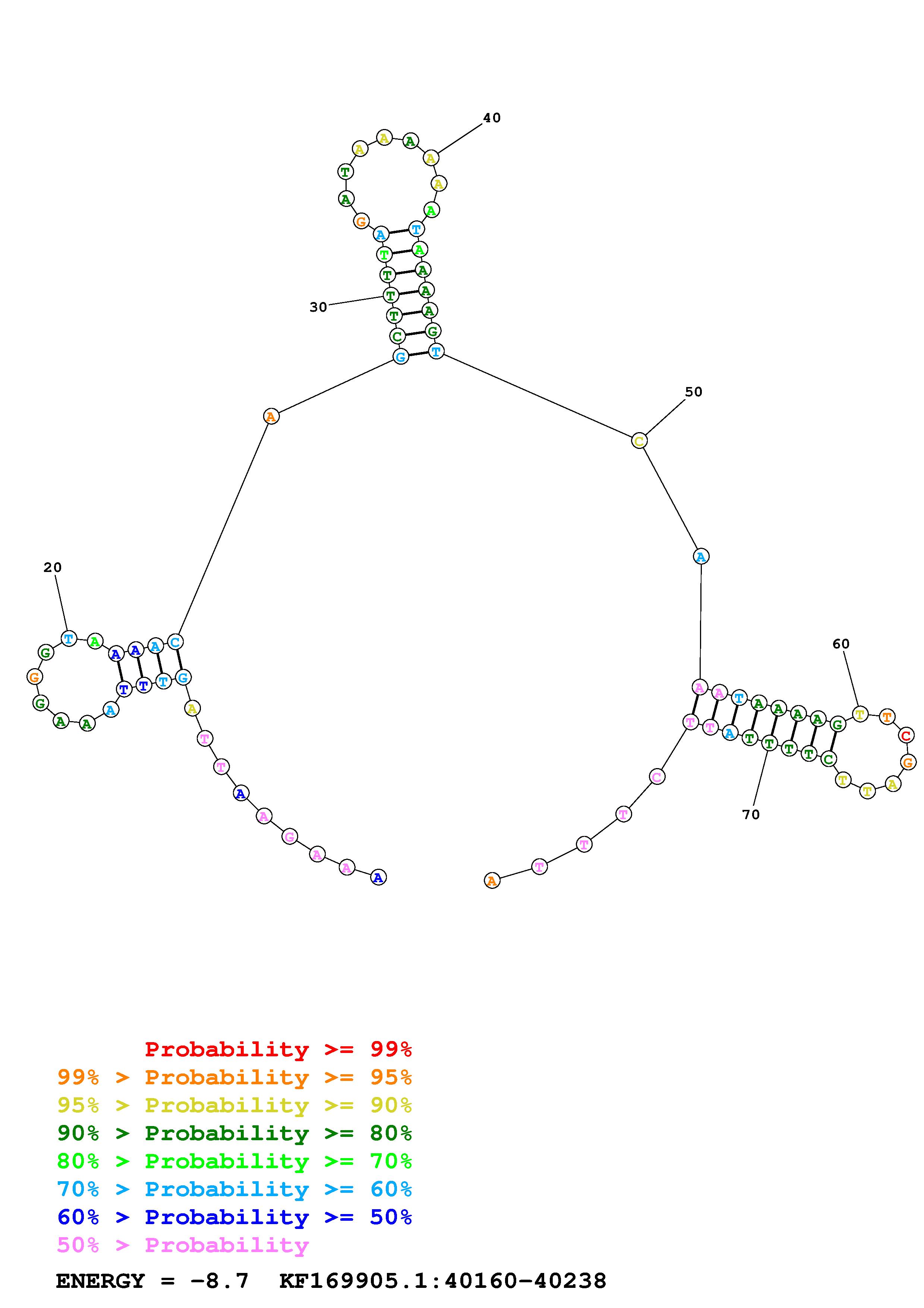 Fold region4.fa Fold.ct --DNA --loop 30 --maximum 20 --percent 10 --temperature 310.15 --window 3