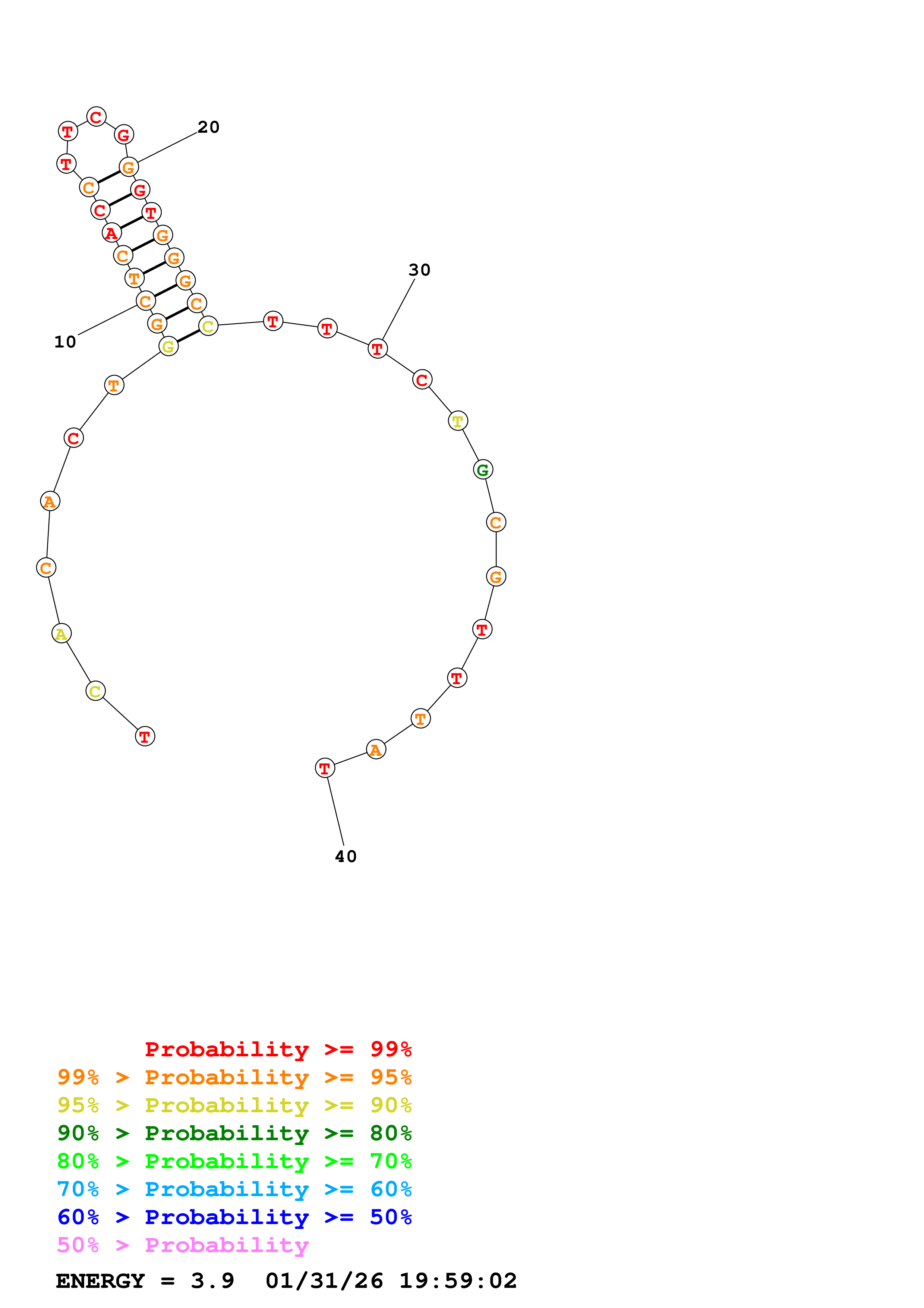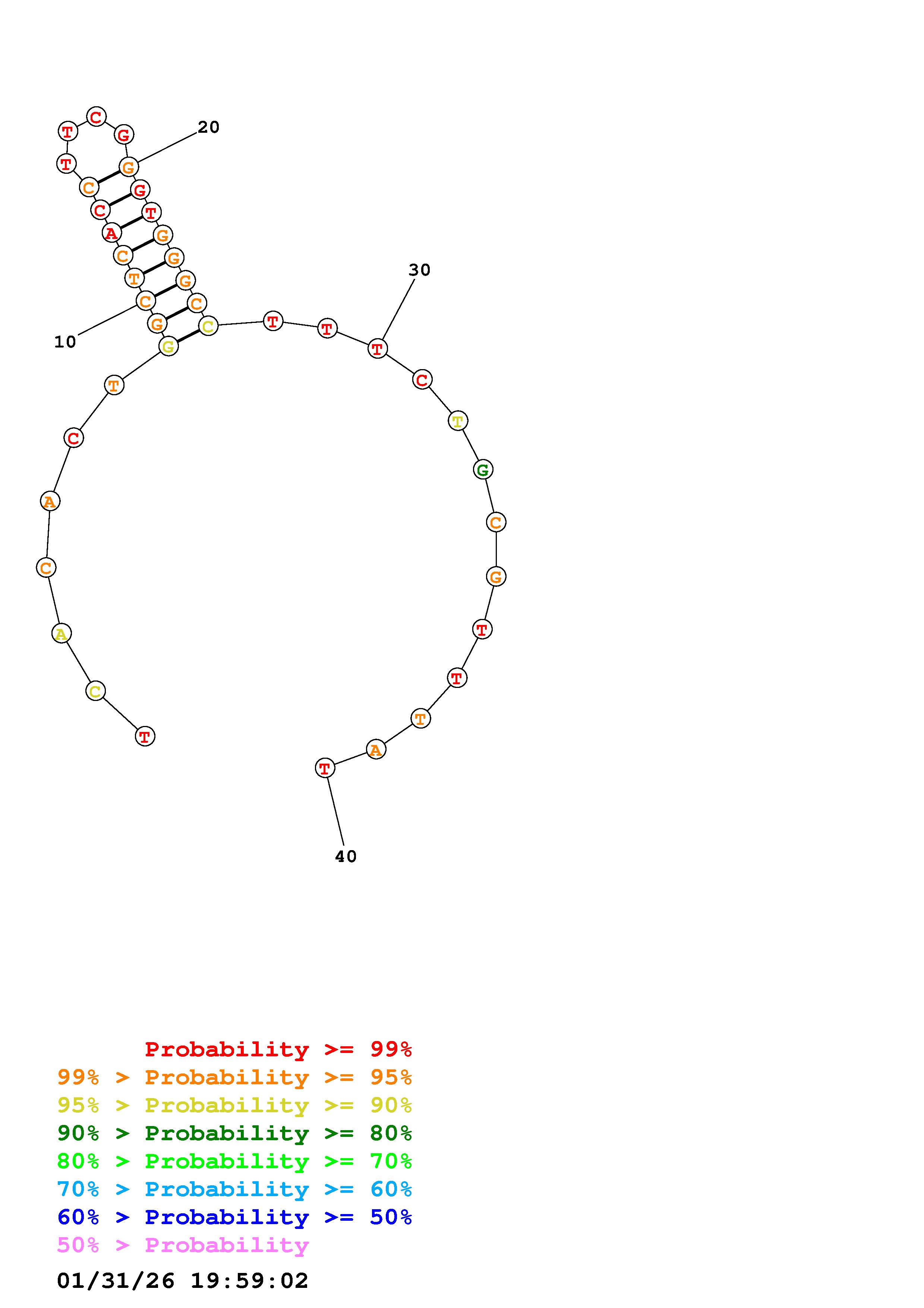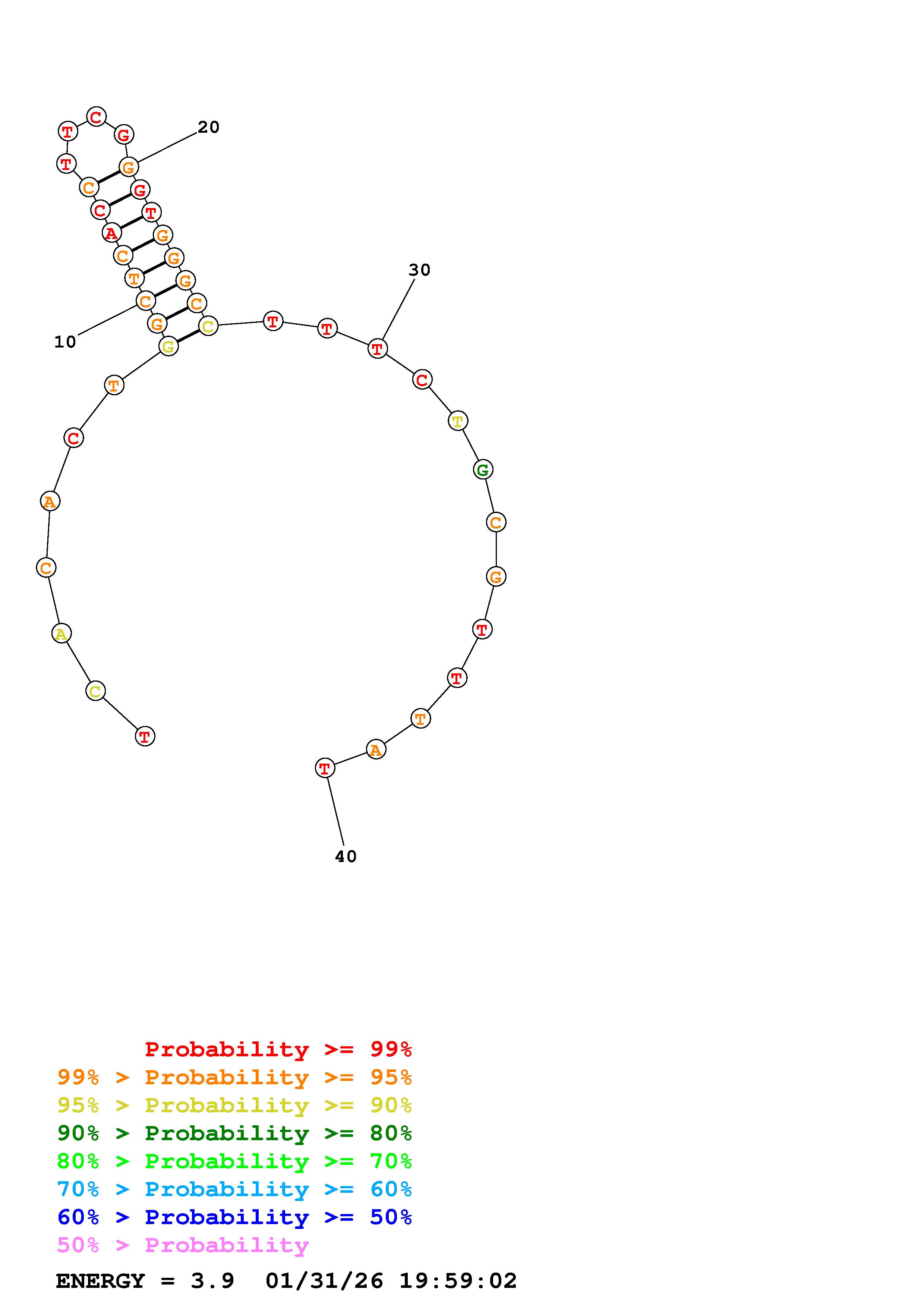 Fold Predict1.fasta Fold.ct --DNA --loop 30 --maximum 20 --percent 10 --temperature 310.15 --window 3