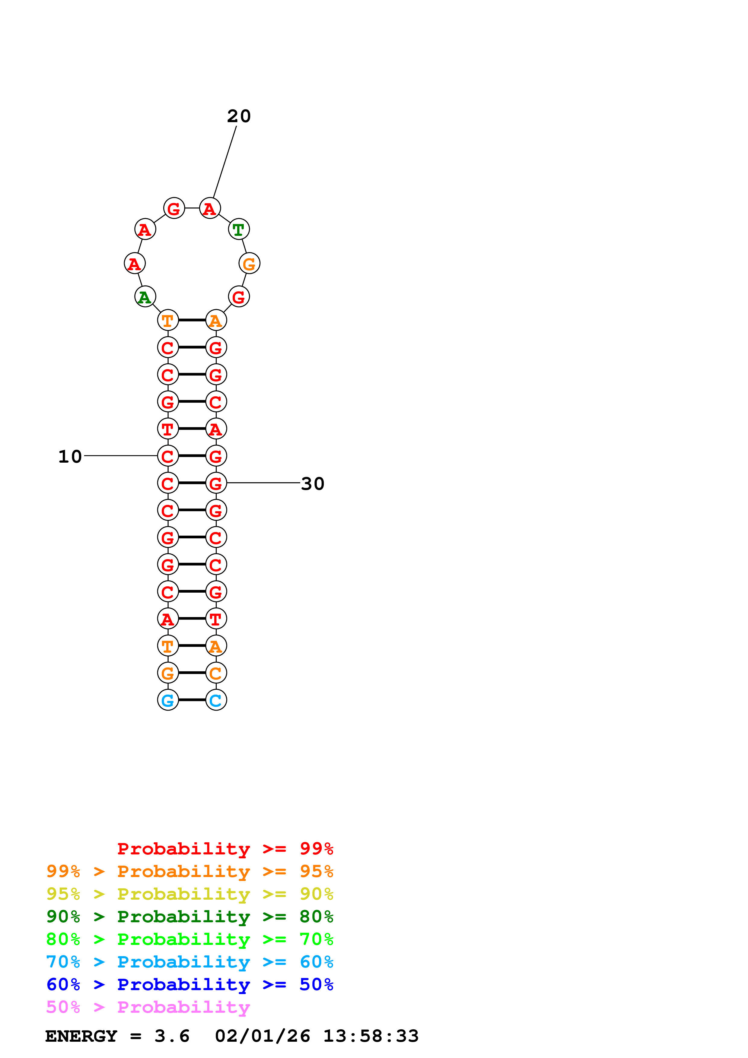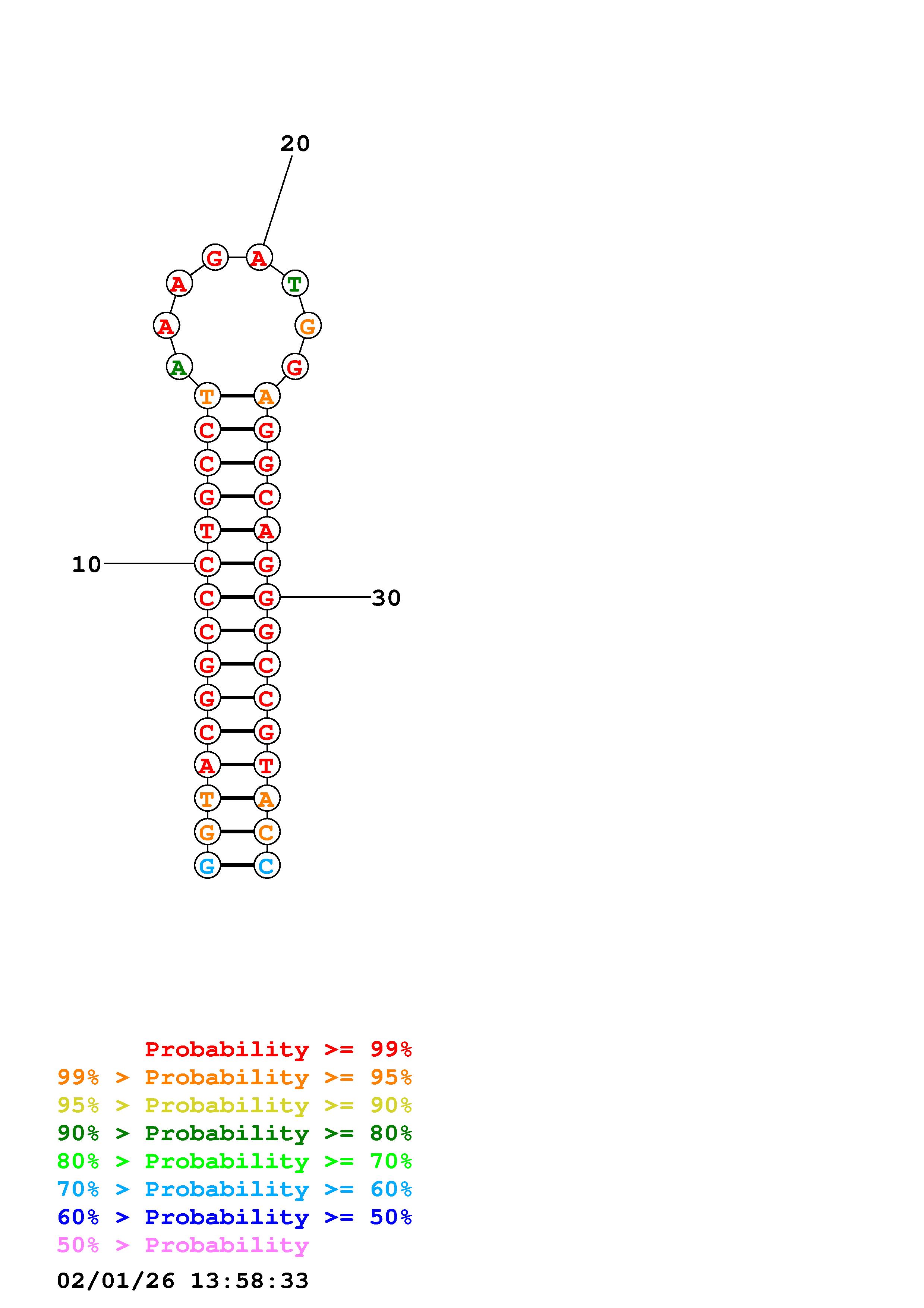 Fold Predict1.fasta Fold.ct --DNA --loop 30 --maximum 20 --percent 10 --temperature 310.15 --window 3