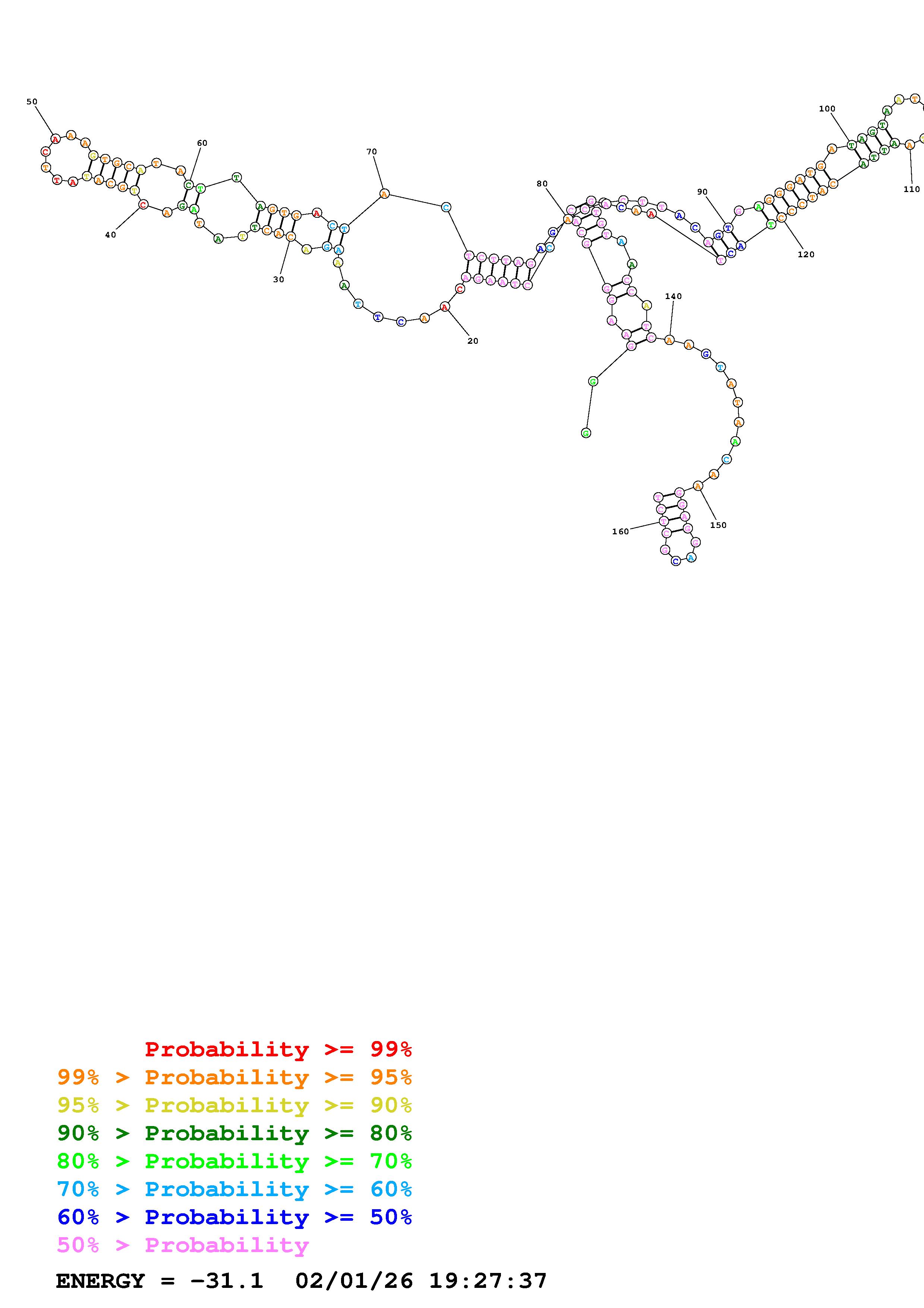 Fold Predict1.fasta Fold.ct --loop 30 --maximum 20 --percent 10 --temperature 310.15 --window 3