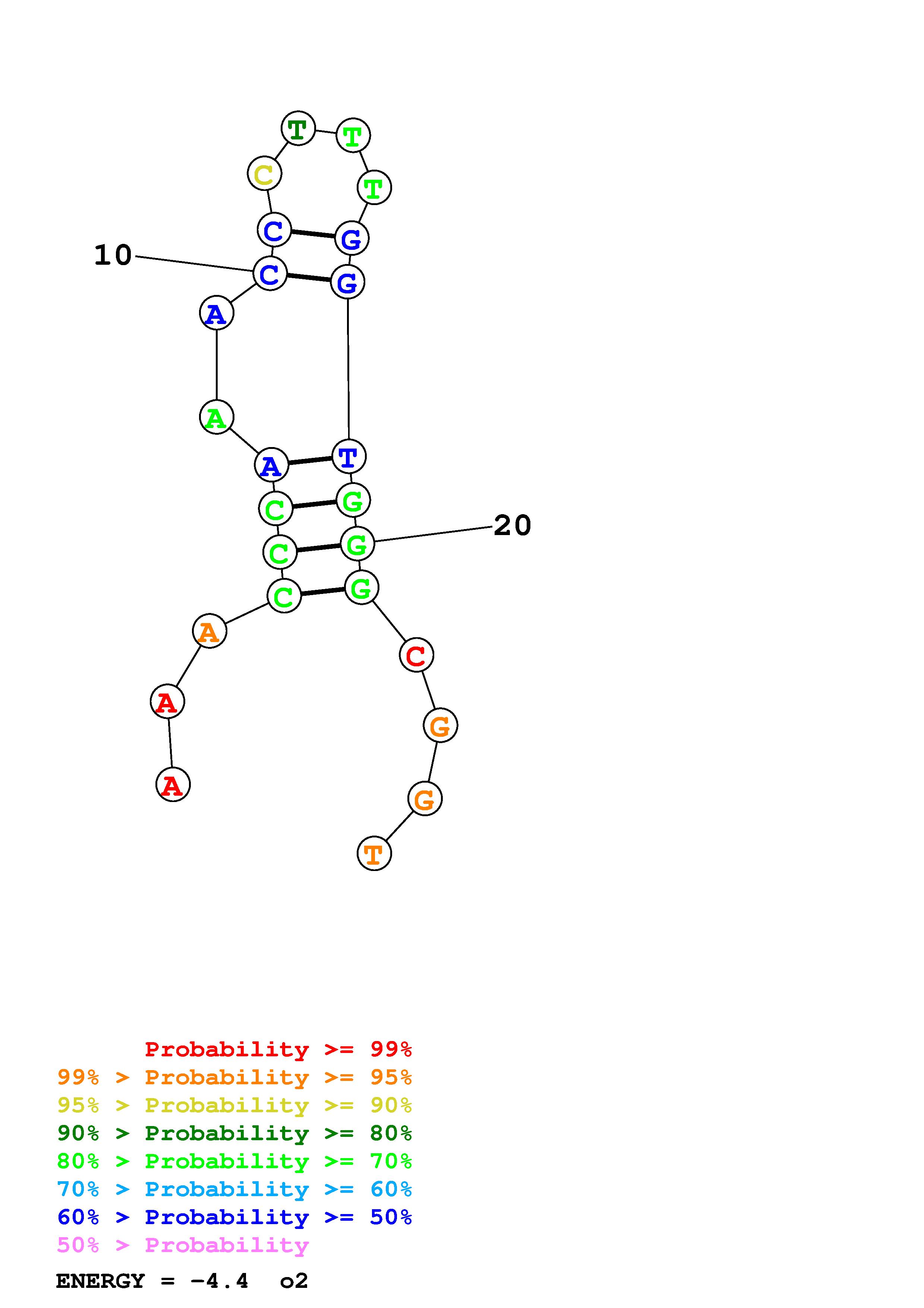 Fold Predict1.fasta Fold.ct --DNA --loop 30 --maximum 20 --percent 10 --temperature 298.15 --window 3