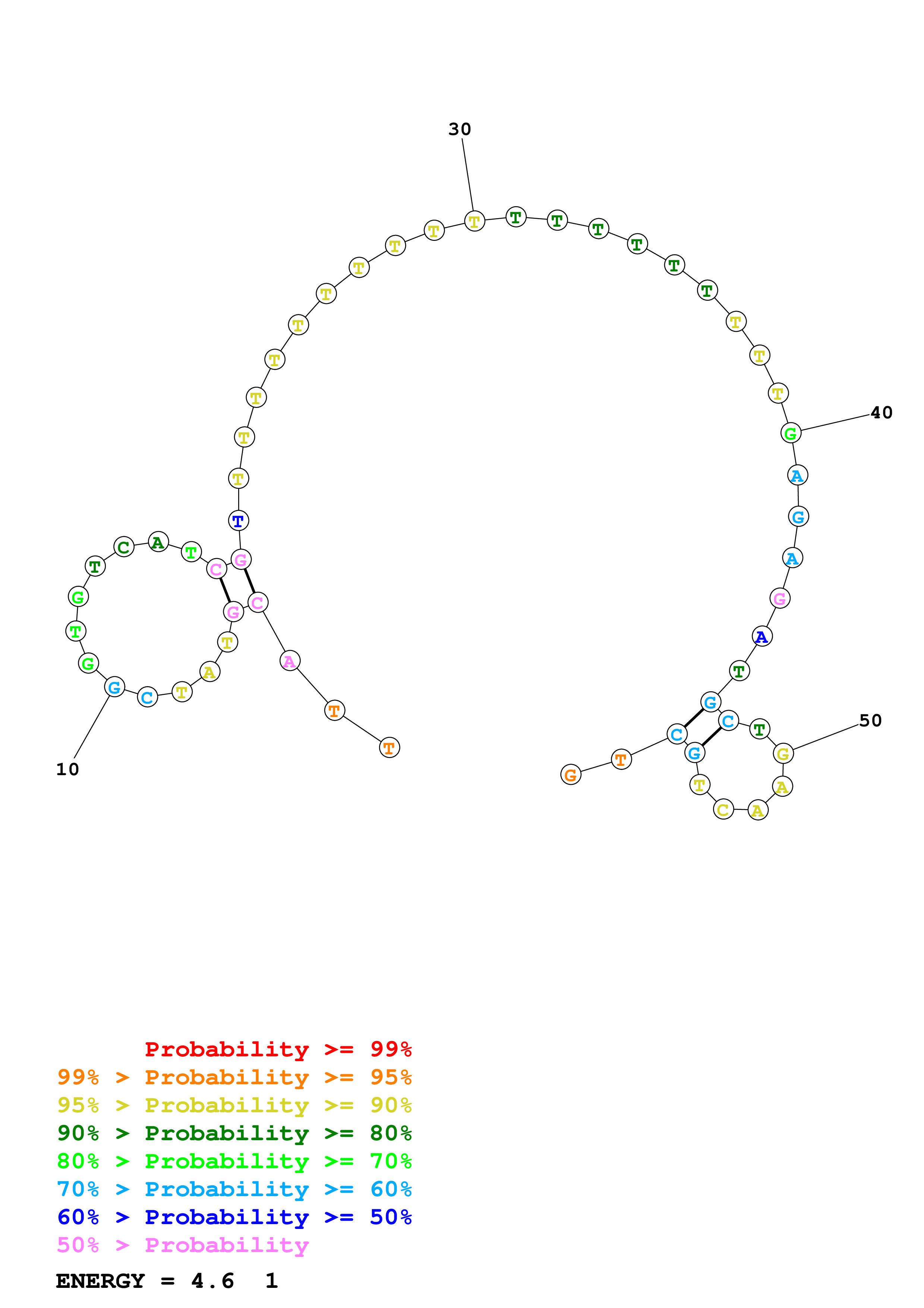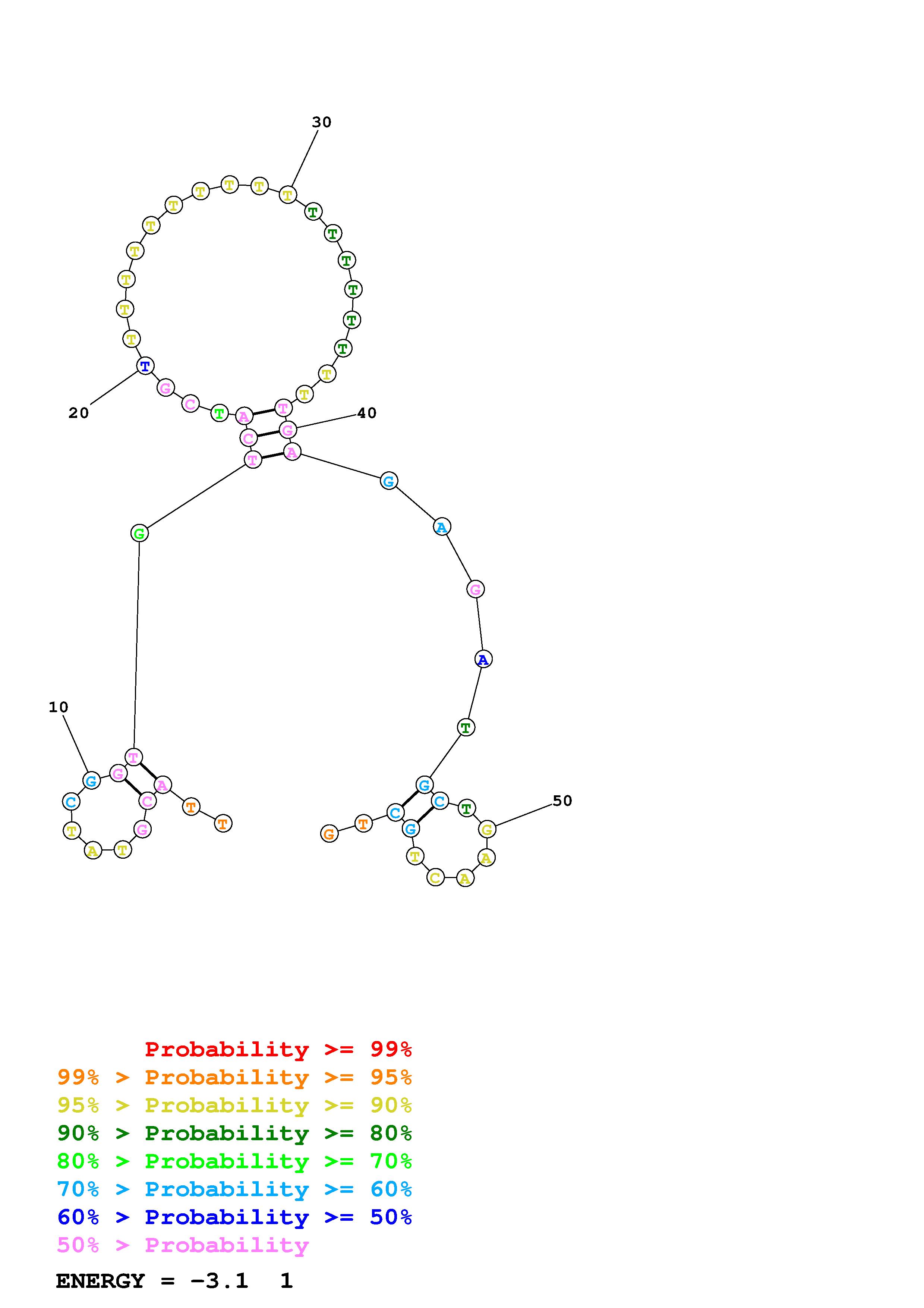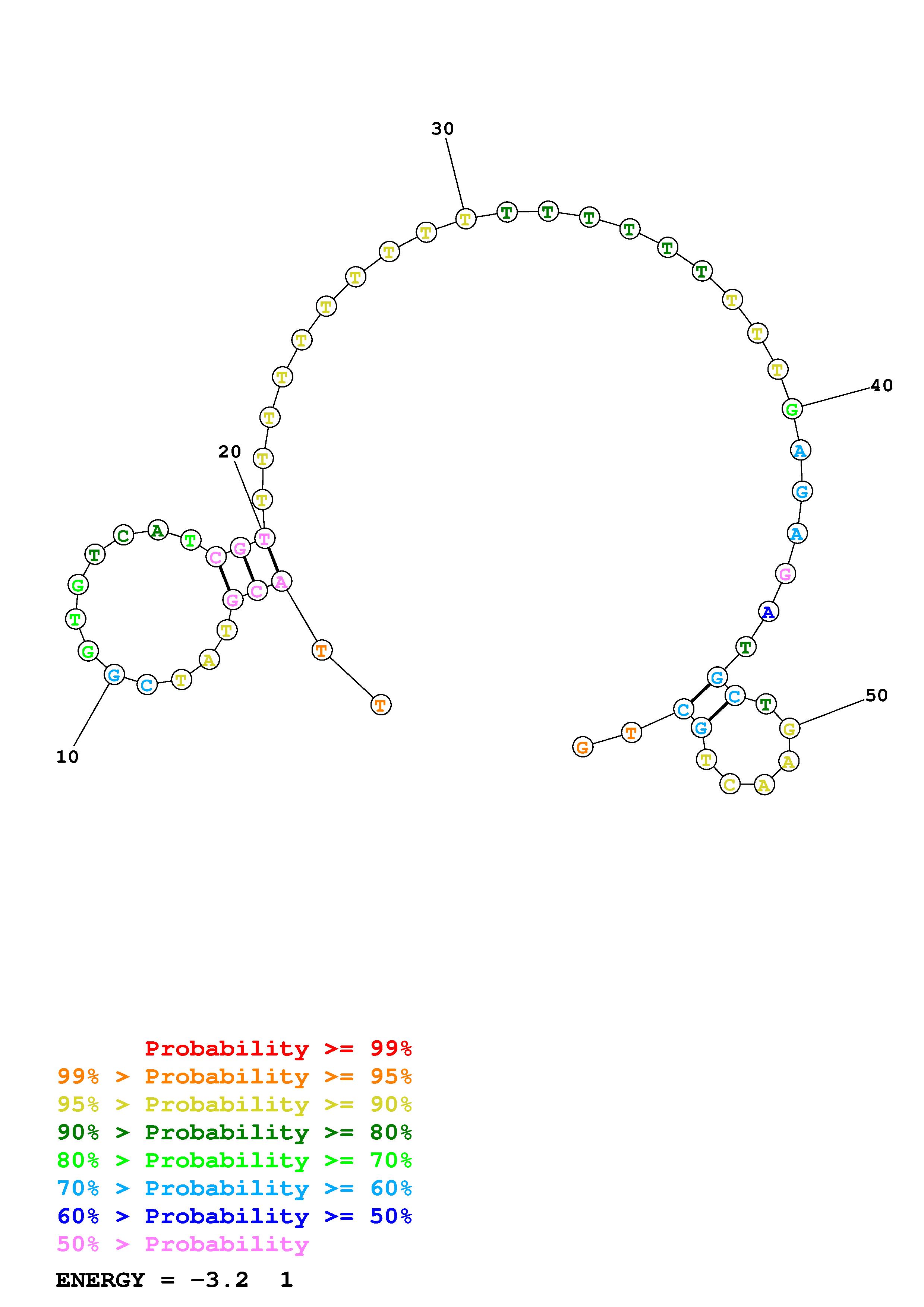 Fold Predict1.fasta Fold.ct --DNA --loop 30 --maximum 20 --percent 10 --temperature 297 --window 3
