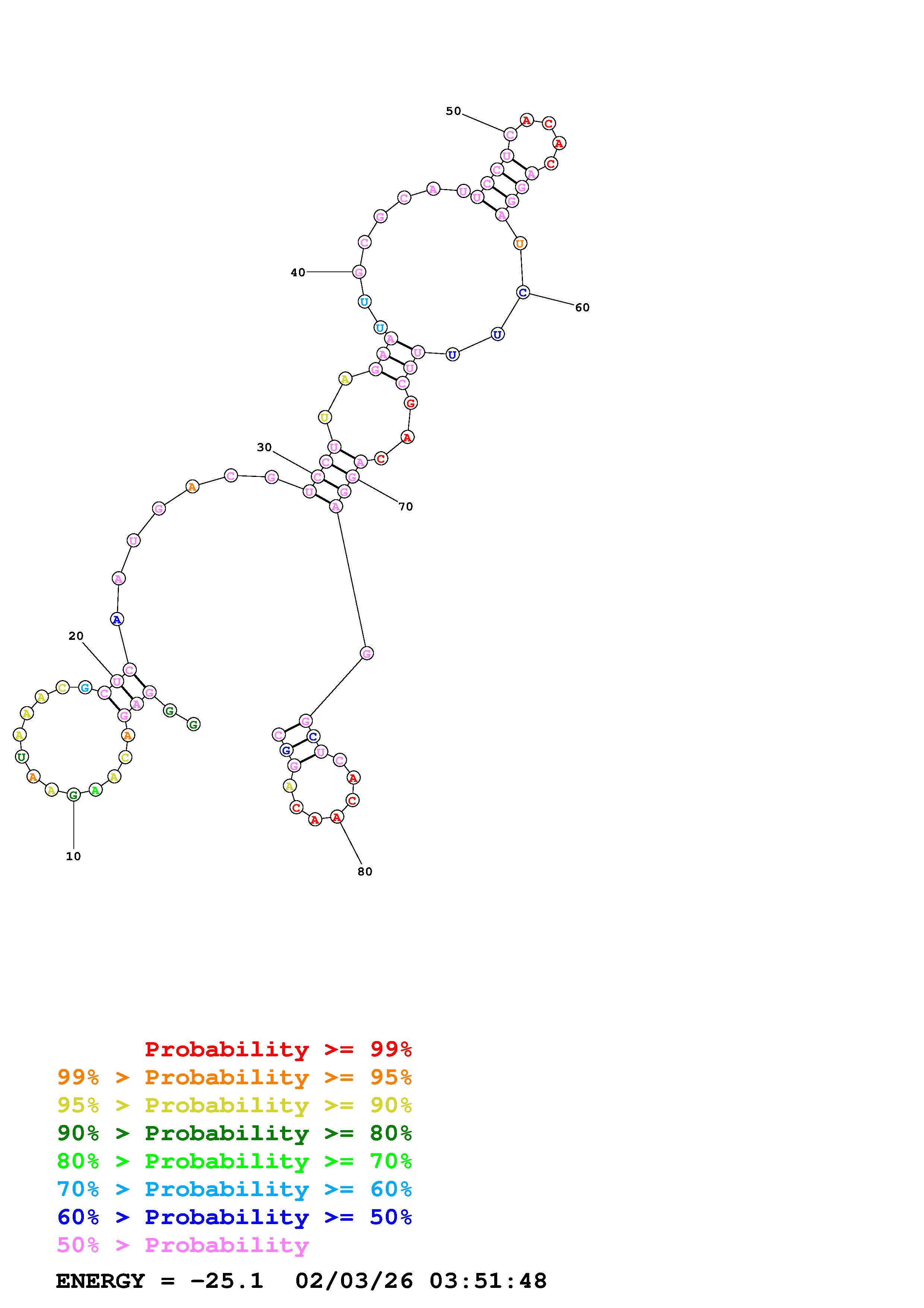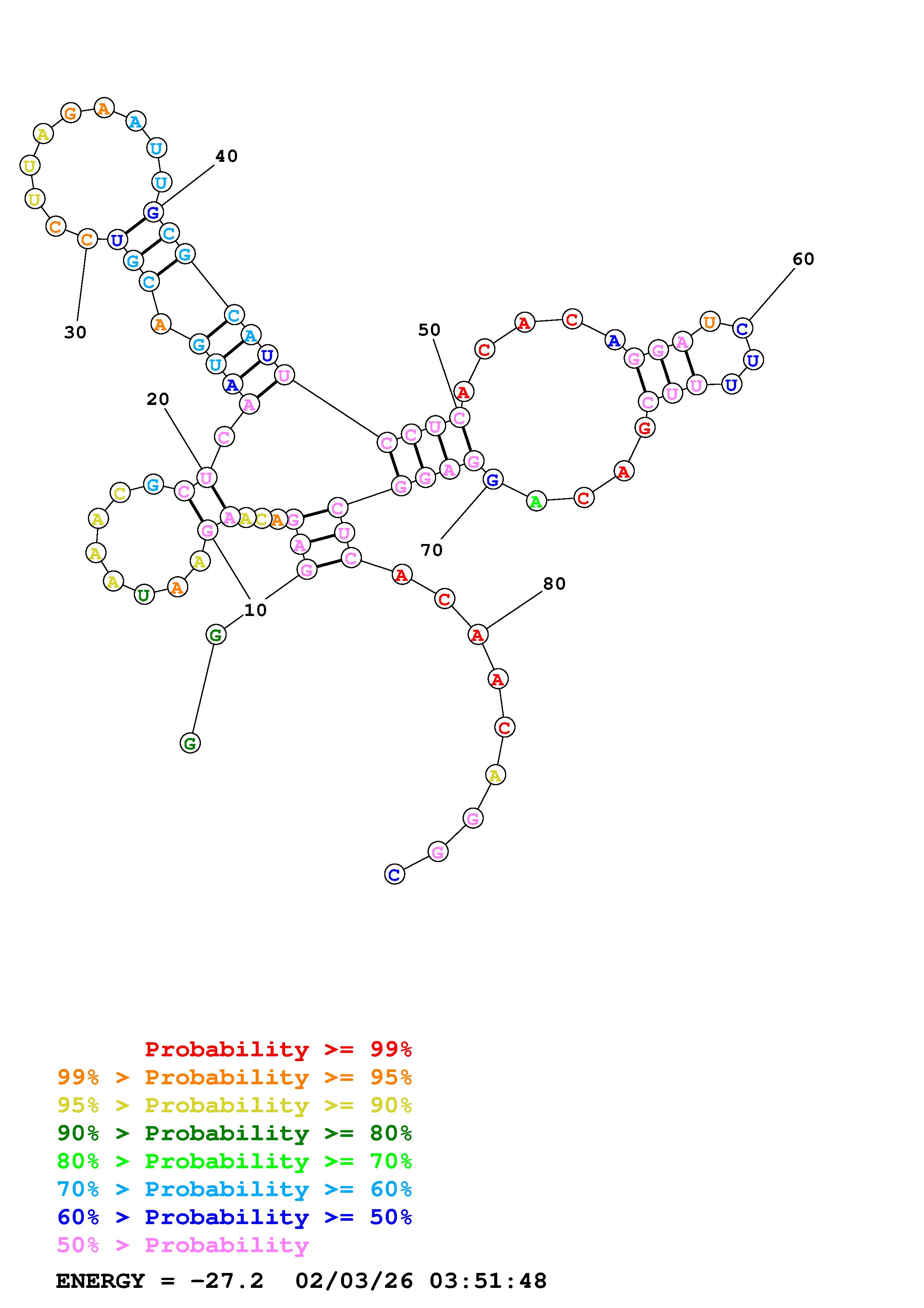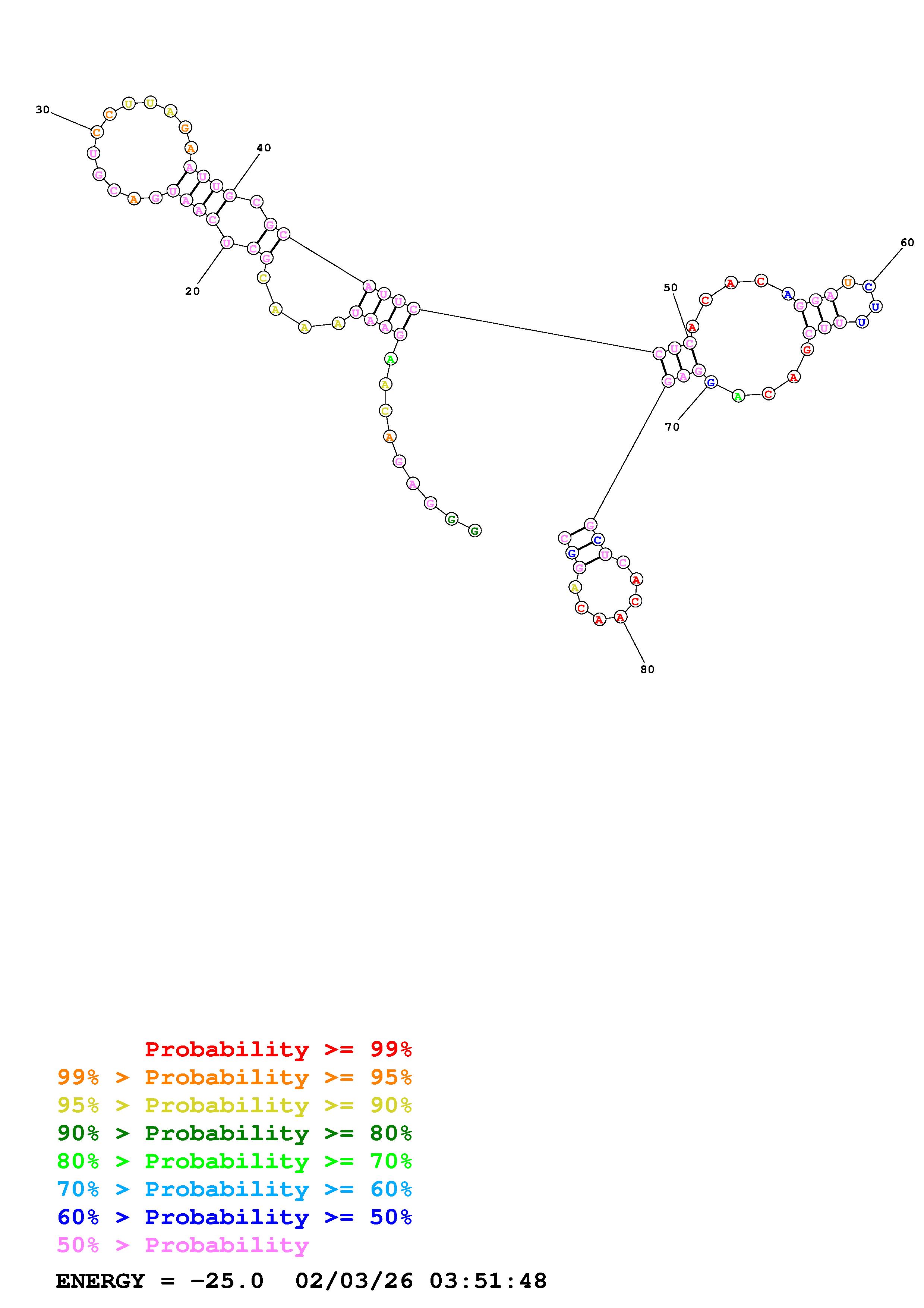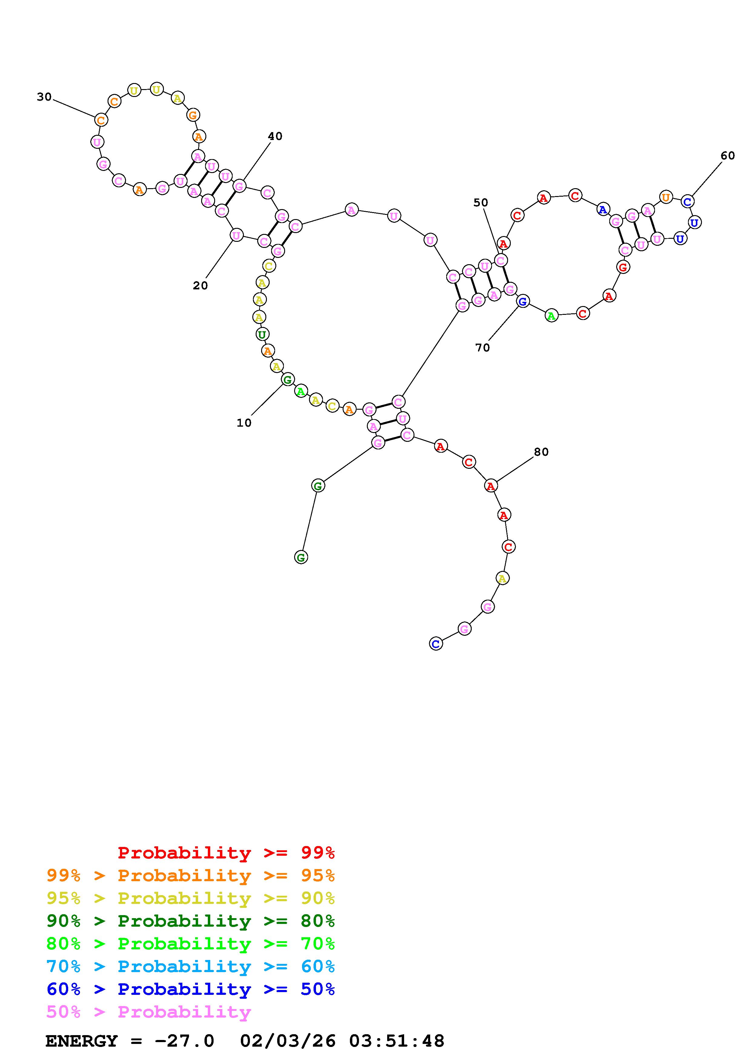 Fold Predict1.fasta Fold.ct --loop 30 --maximum 20 --percent 10 --temperature 277 --window 3