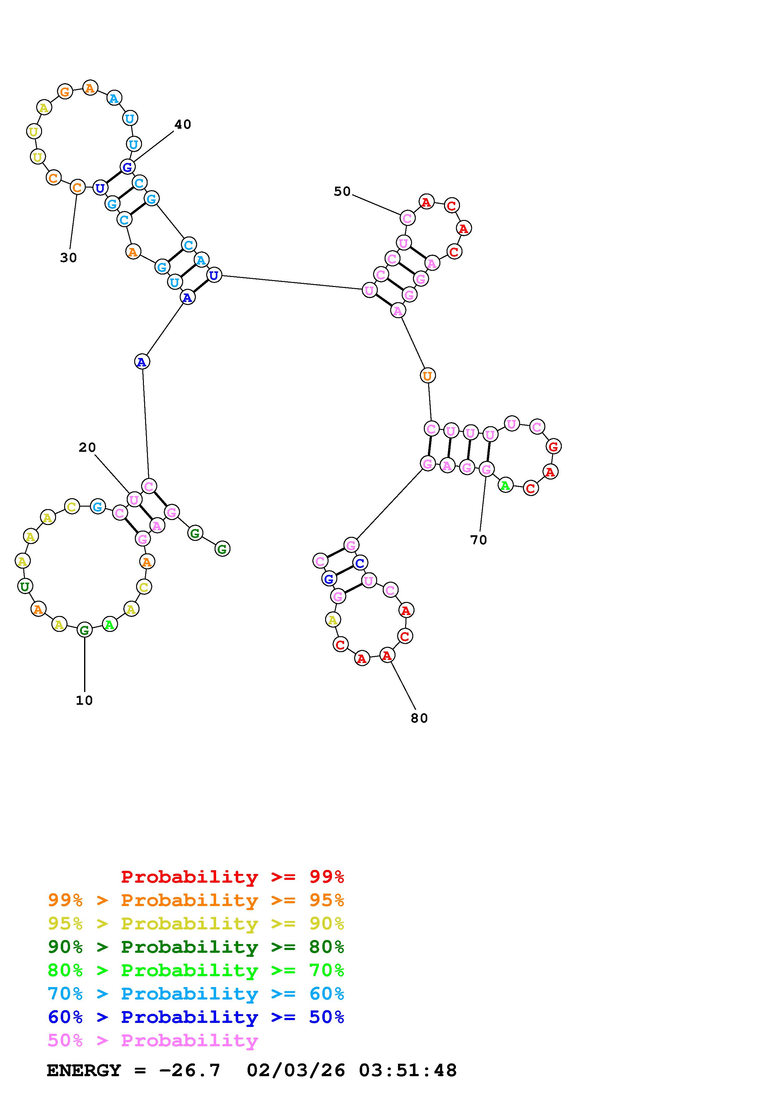 (Generate a structure or structures composed of highly probable base pairs. This is an alternative method for structure prediction that may have higher fidelity in structure prediction.)
