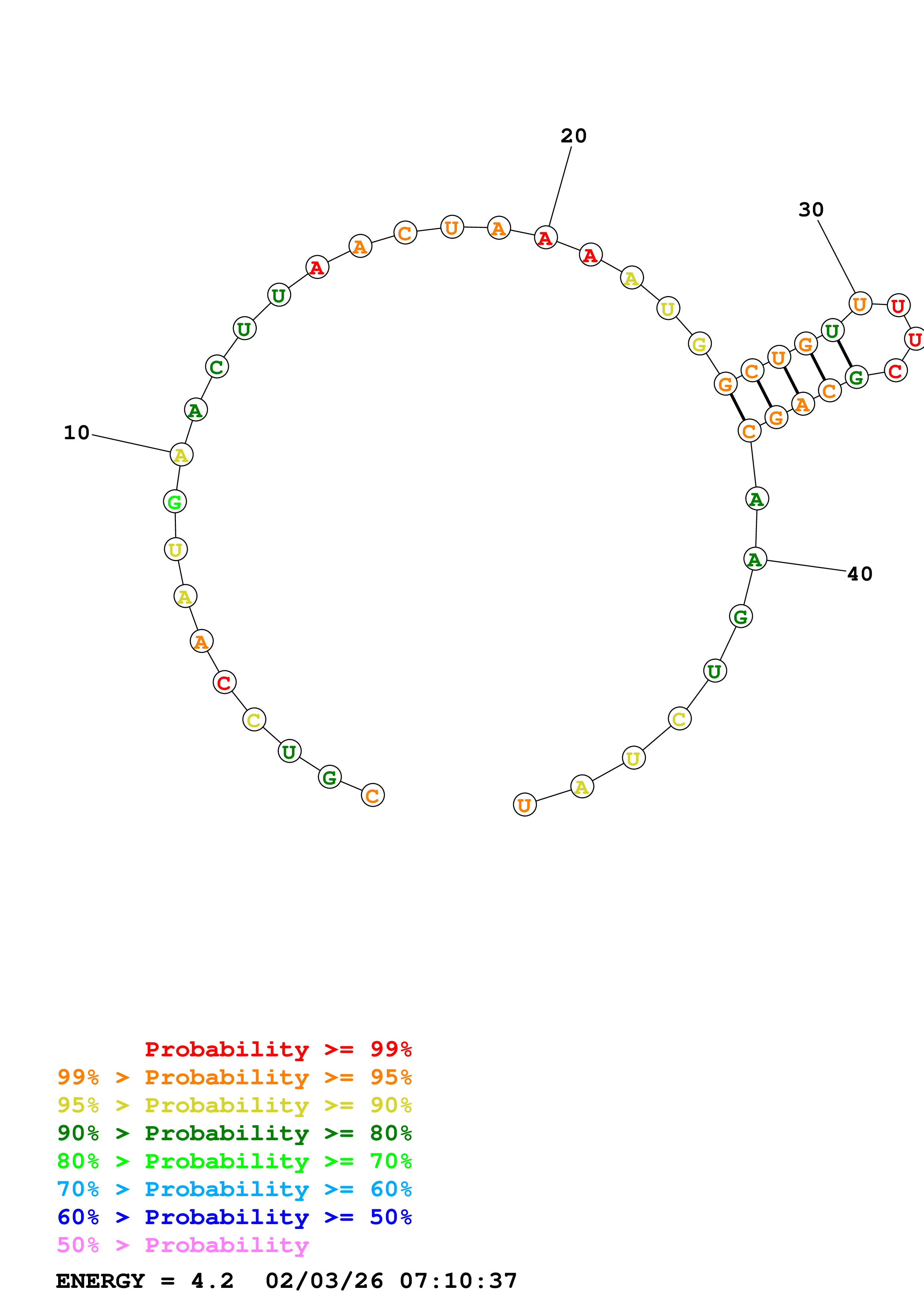 (Predict a secondary structure of probable base pairs, which might include pseudoknots.)