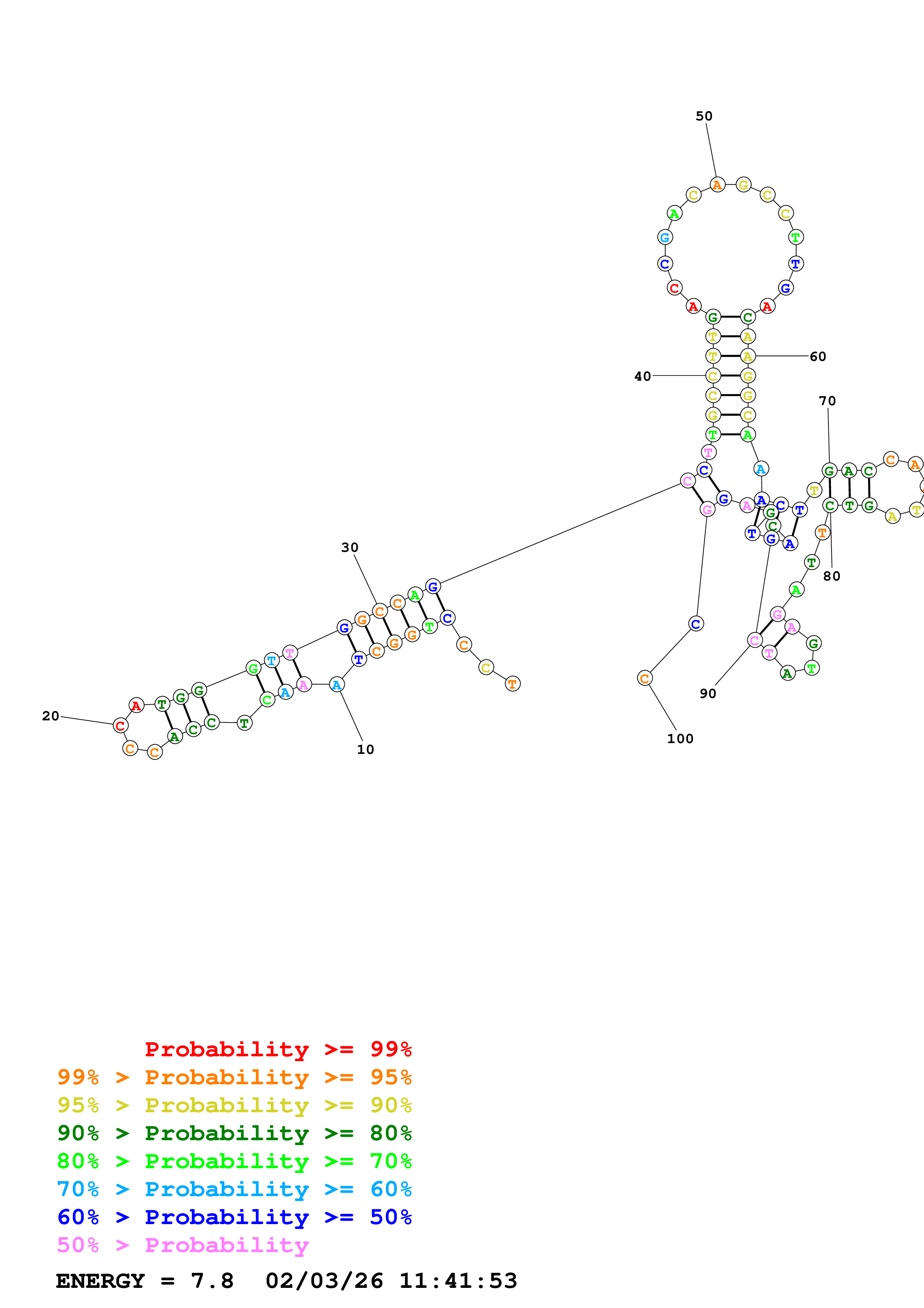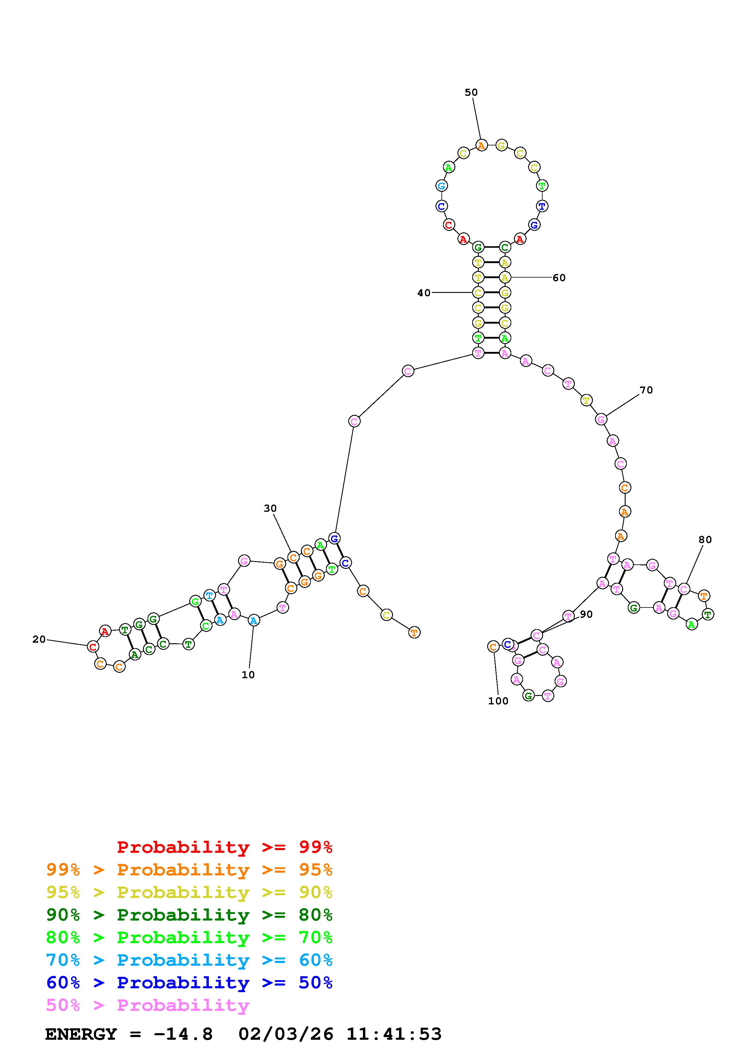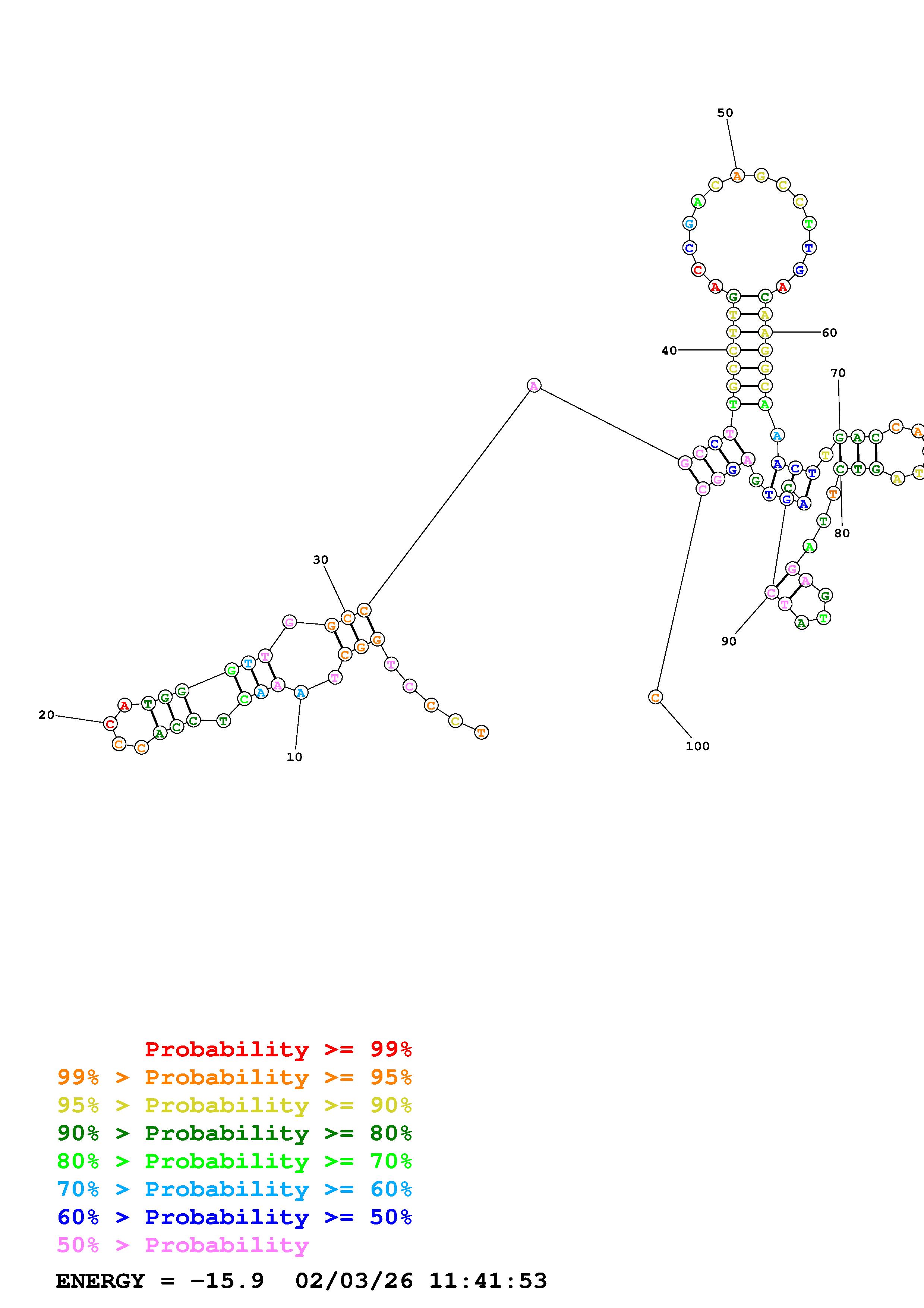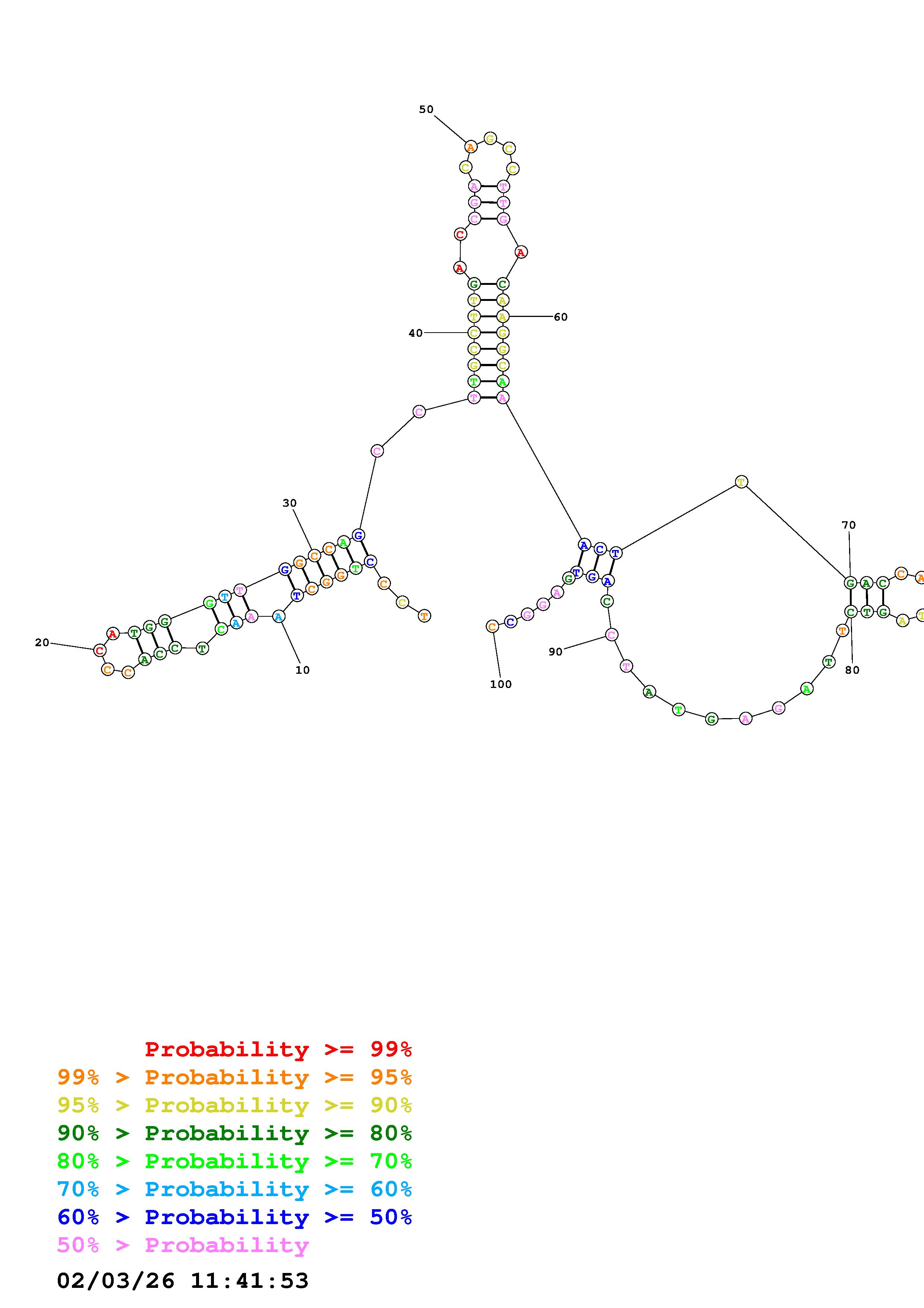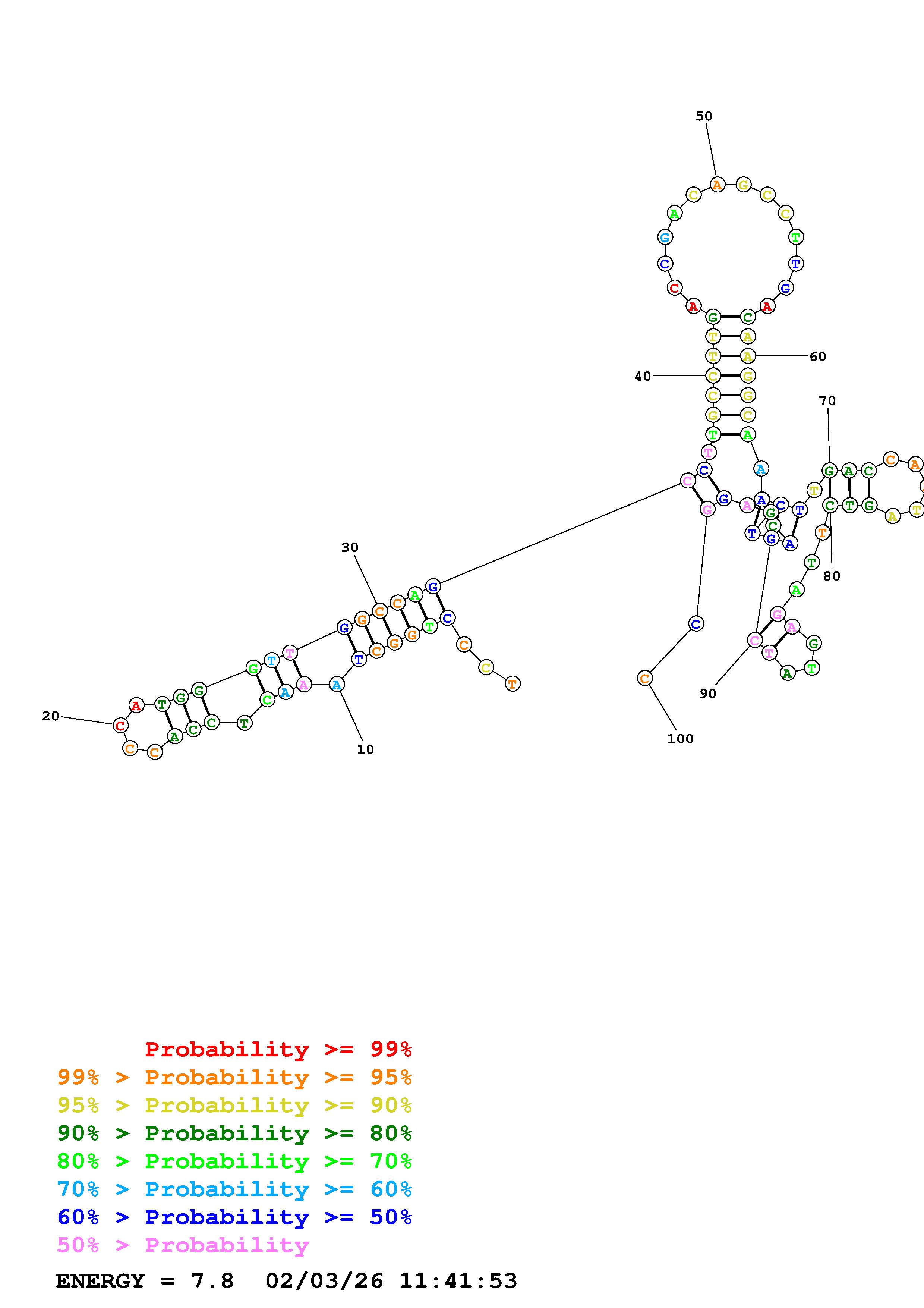 Fold Predict1.fasta Fold.ct --DNA --loop 30 --maximum 20 --percent 10 --temperature 310.15 --window 3