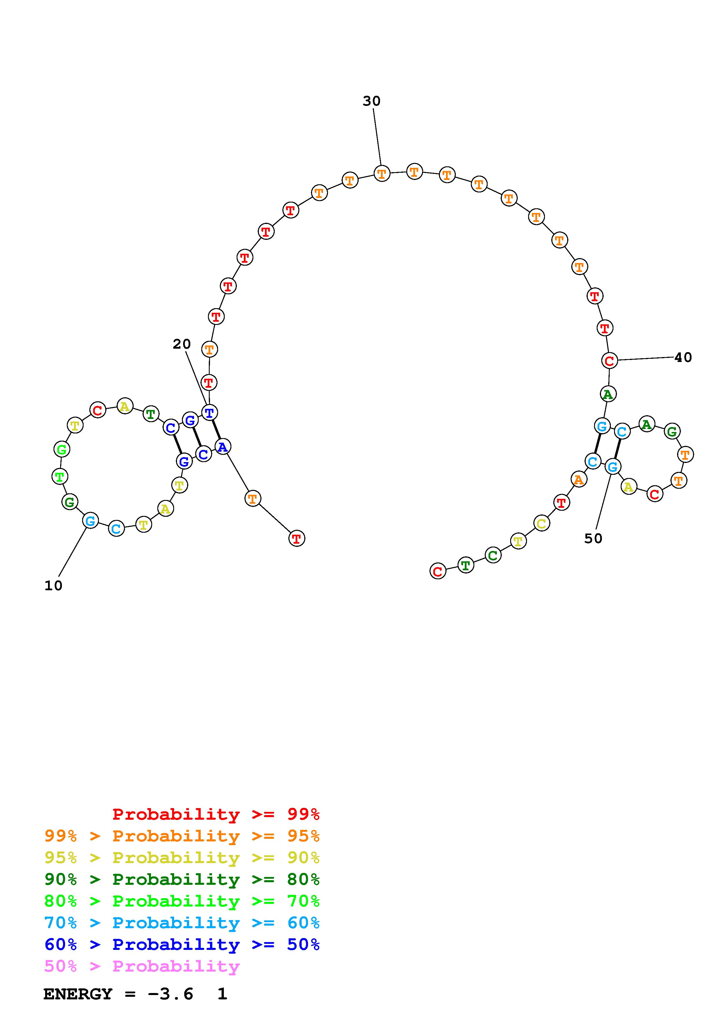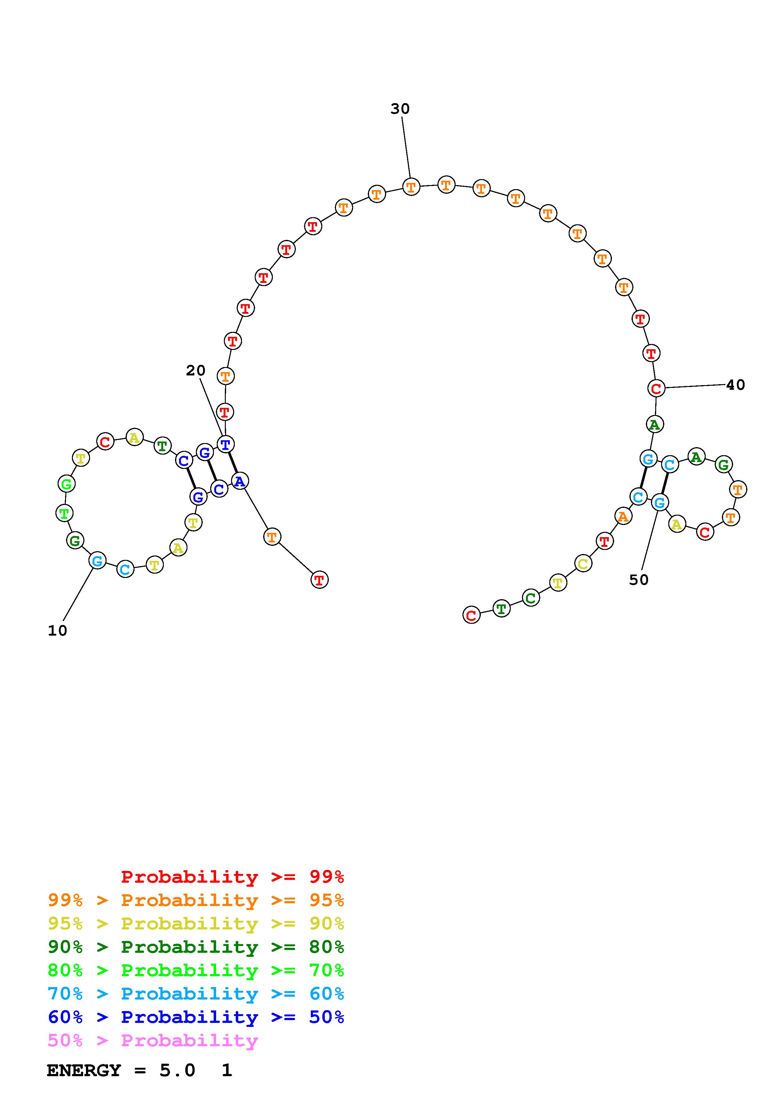 Fold Predict1.fasta Fold.ct --DNA --loop 30 --maximum 20 --percent 10 --temperature 297 --window 3