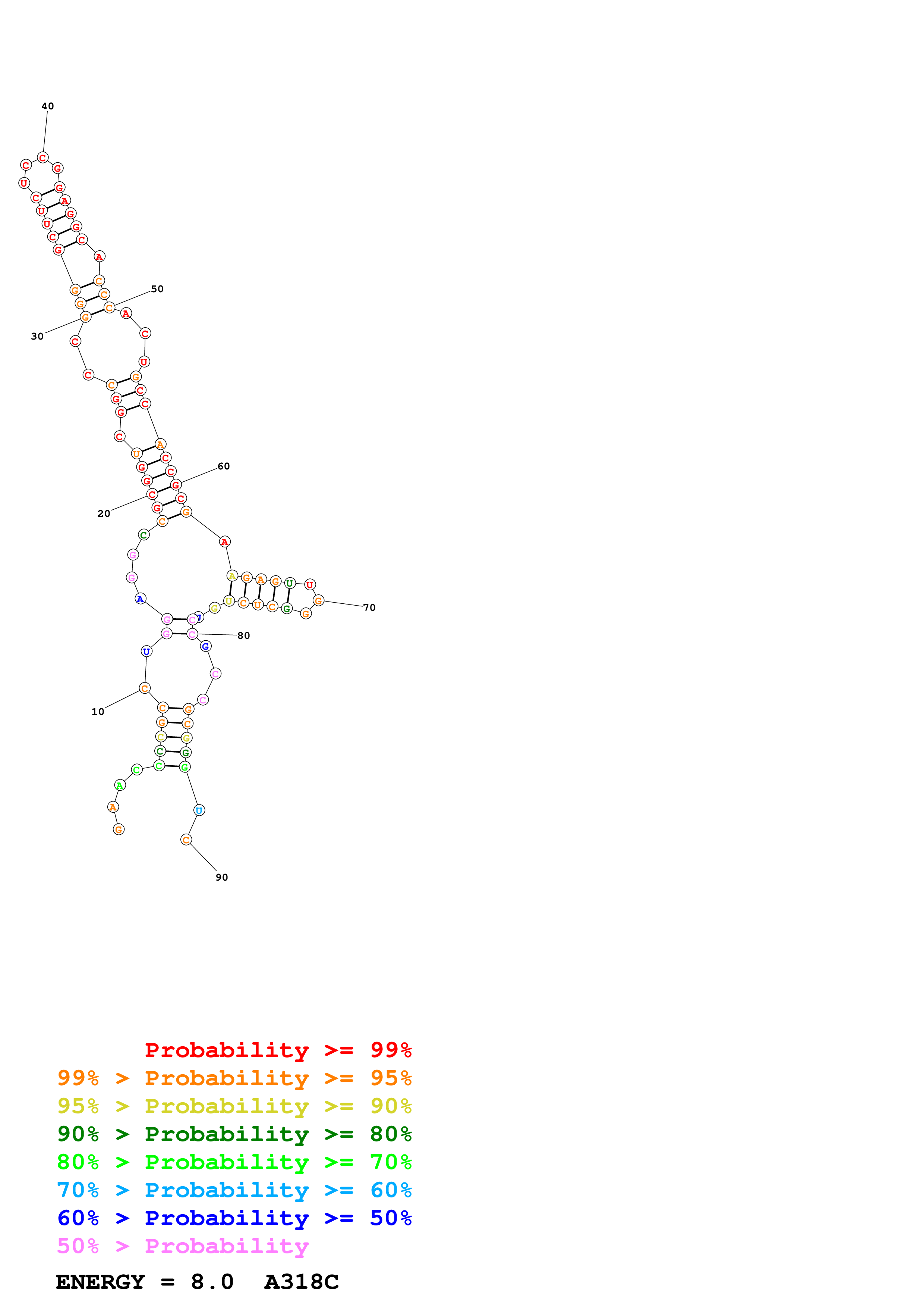 Fold test_sequences.txt Fold.ct --loop 30 --maximum 20 --percent 10 --temperature 310.15 --window 3