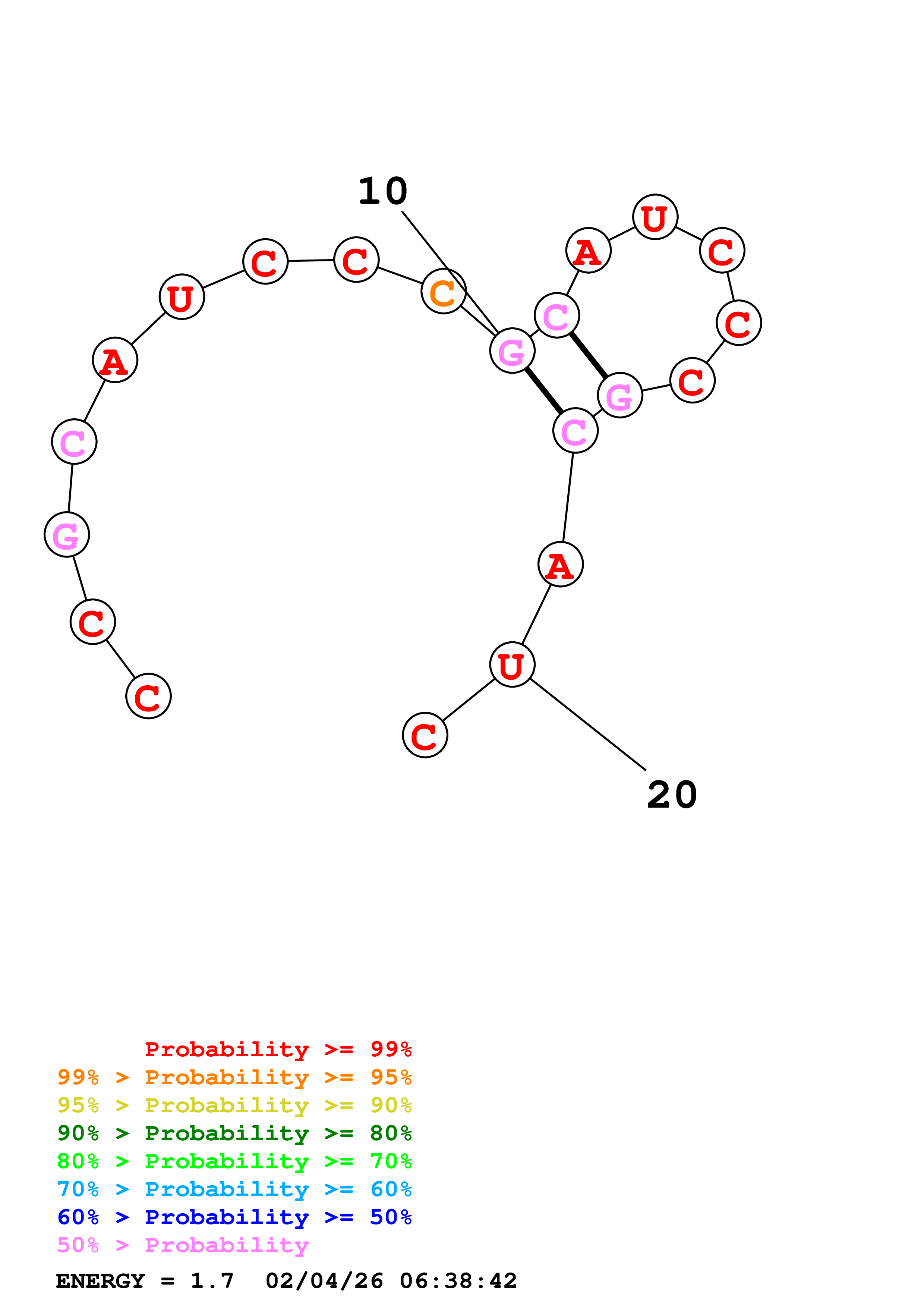 (Generate a structure or structures composed of highly probable base pairs. This is an alternative method for structure prediction that may have higher fidelity in structure prediction.)