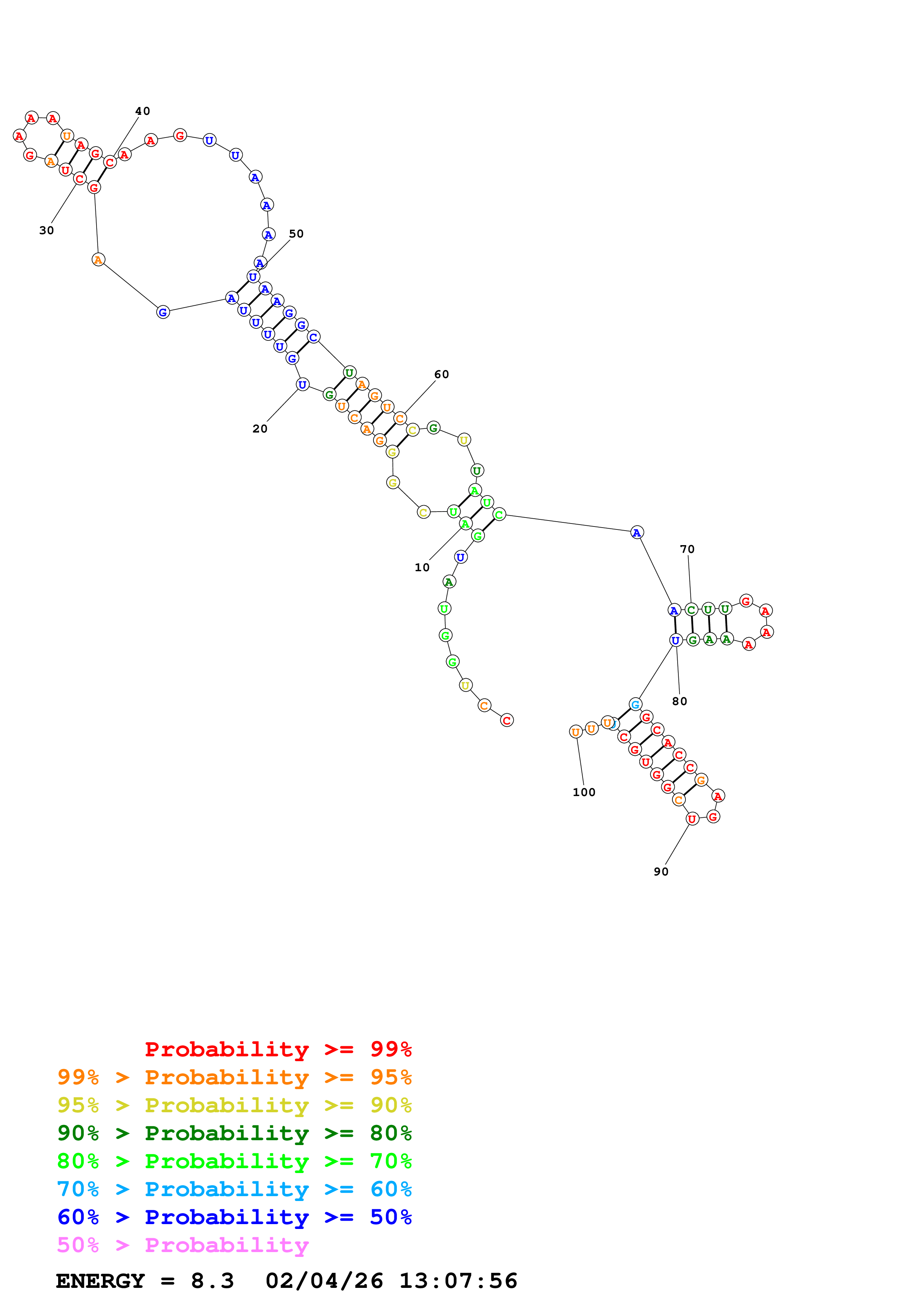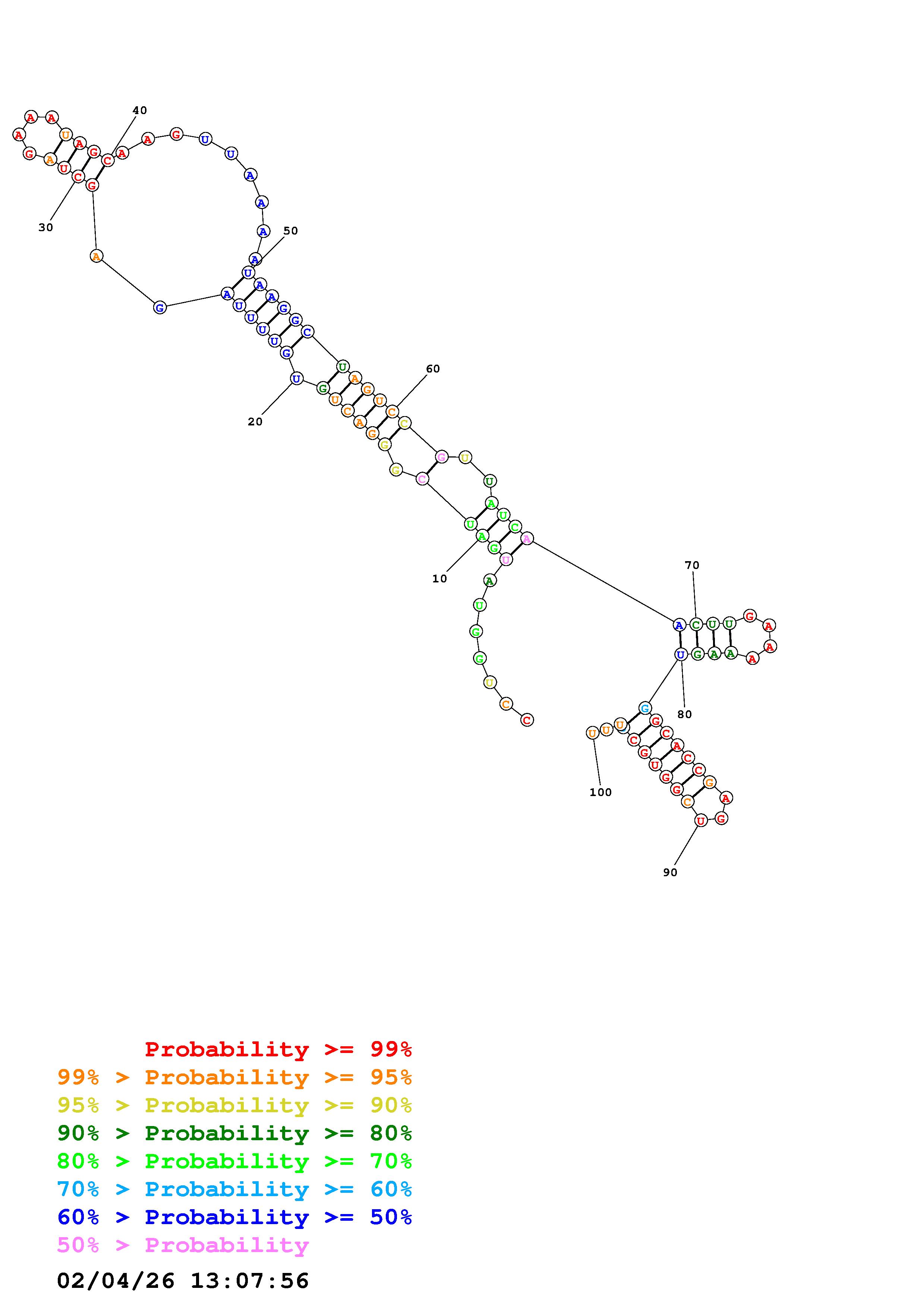 (Generate a structure or structures composed of highly probable base pairs. This is an alternative method for structure prediction that may have higher fidelity in structure prediction.)