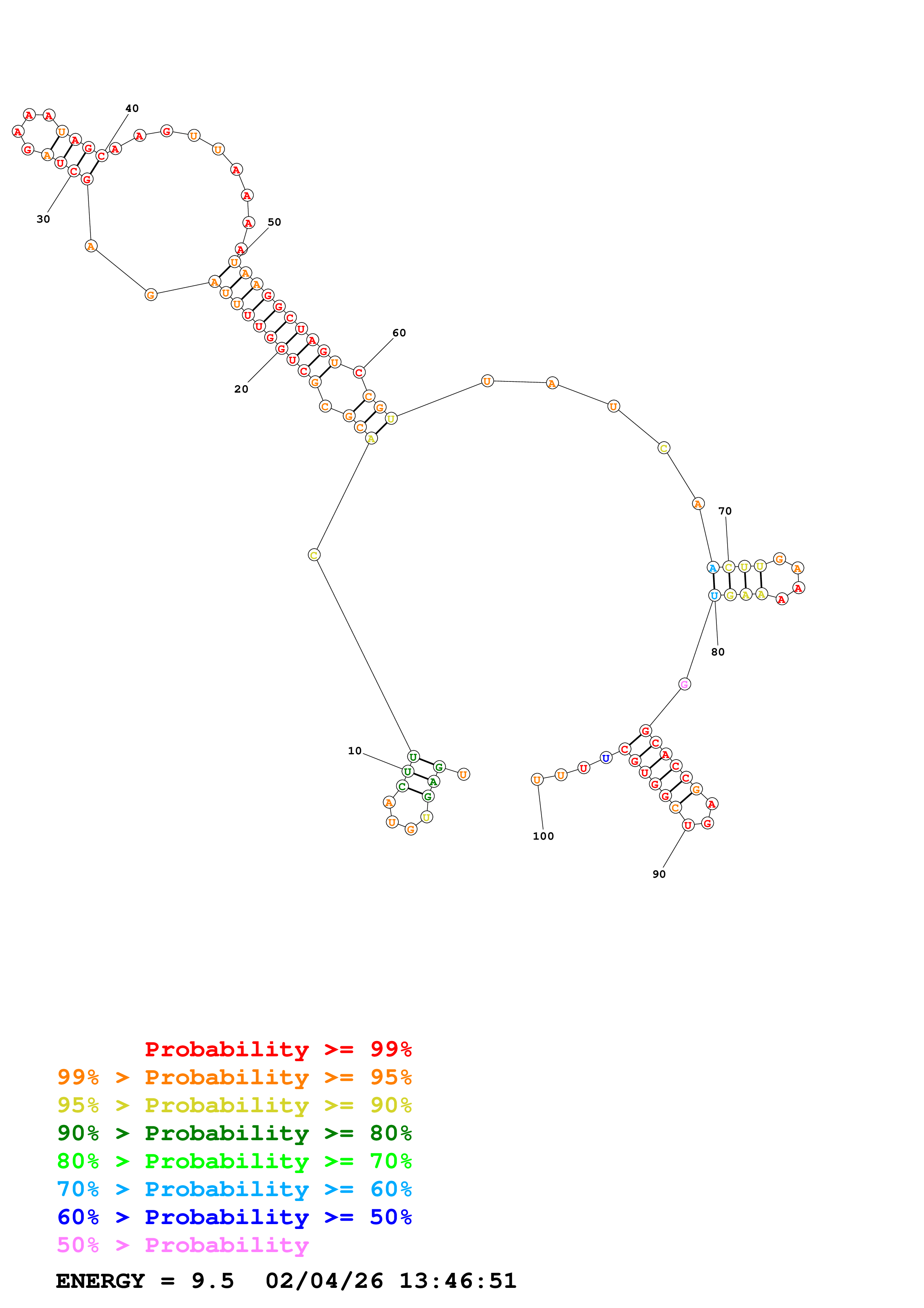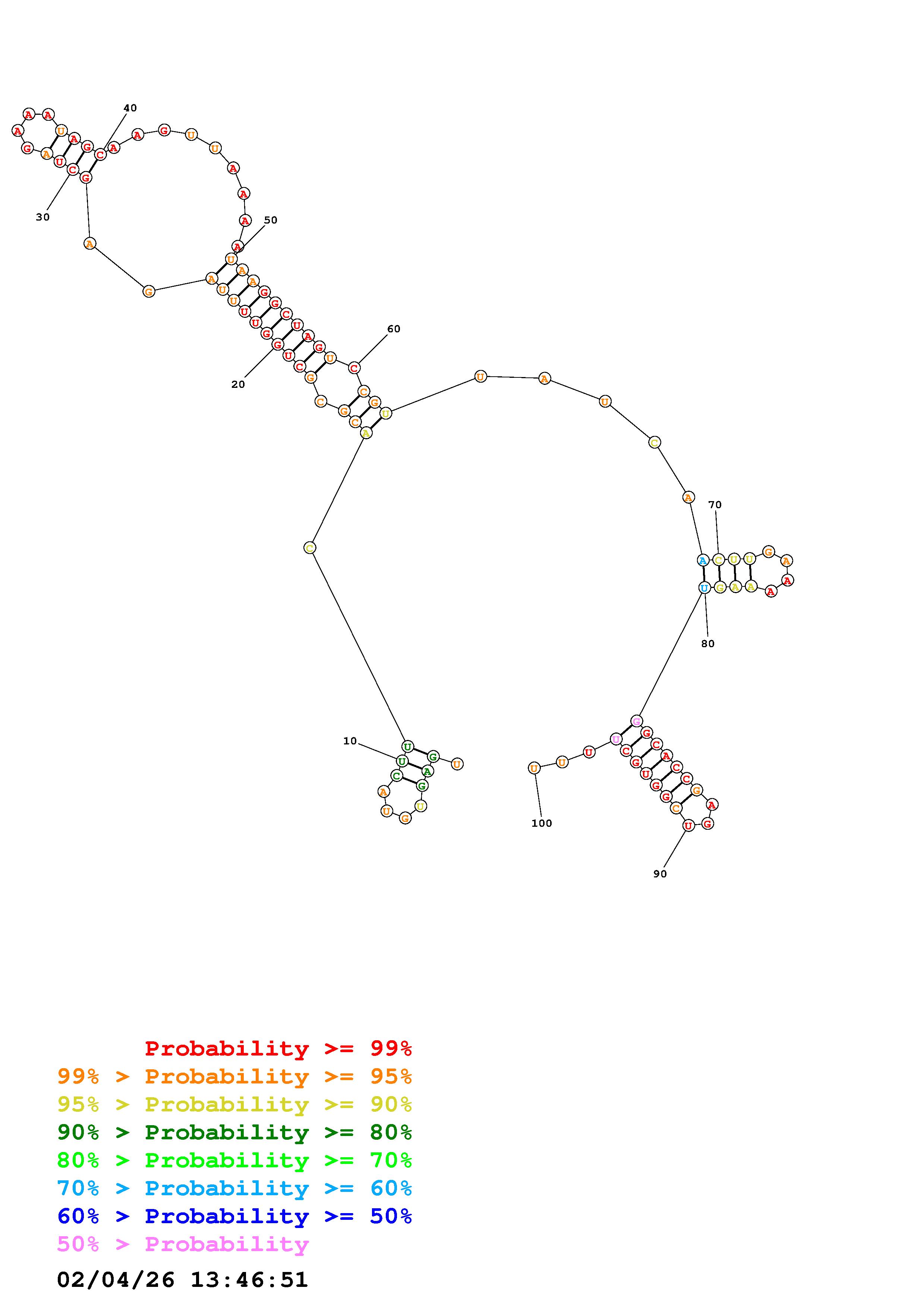 (Generate a structure or structures composed of highly probable base pairs. This is an alternative method for structure prediction that may have higher fidelity in structure prediction.)