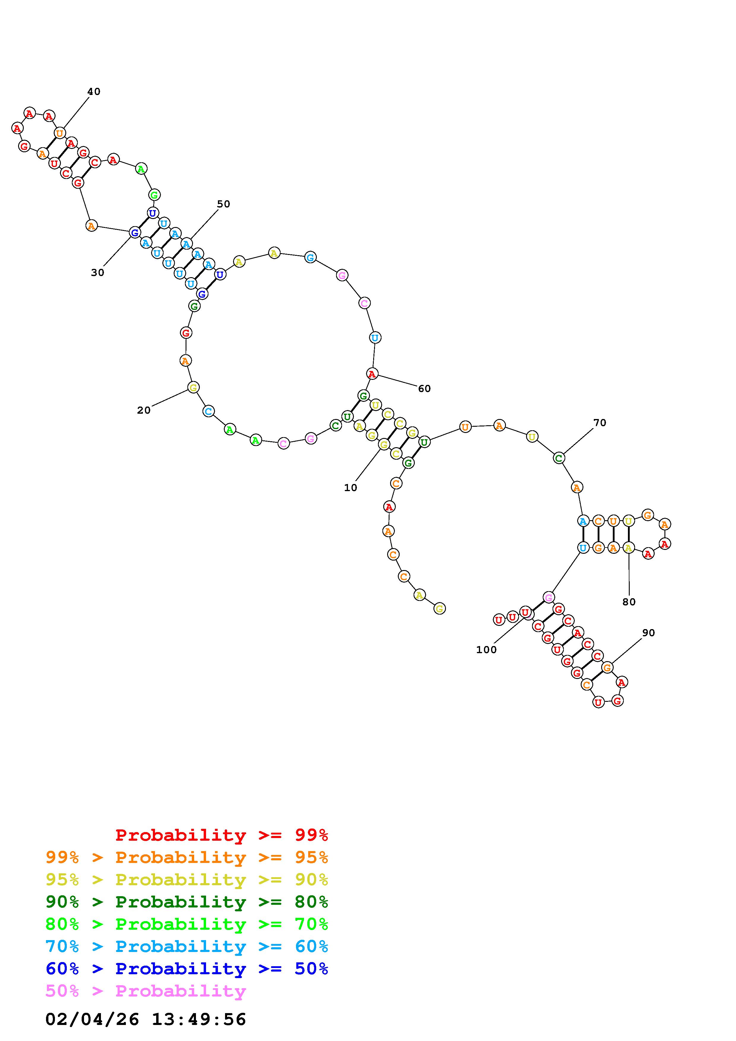 (Generate a structure or structures composed of highly probable base pairs. This is an alternative method for structure prediction that may have higher fidelity in structure prediction.)