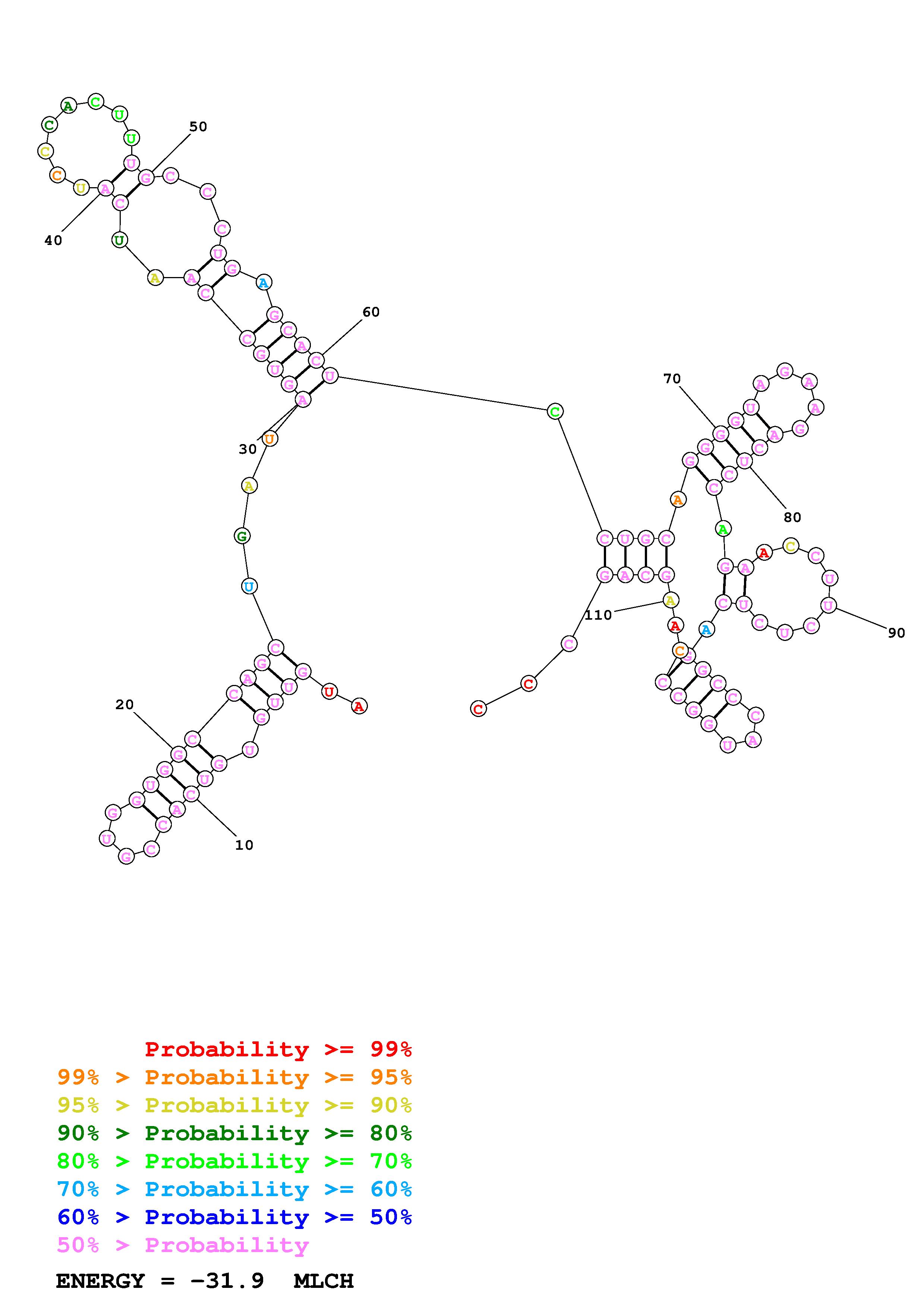 Fold Predict1.fasta Fold.ct --loop 30 --maximum 20 --percent 10 --temperature 310.15 --window 3