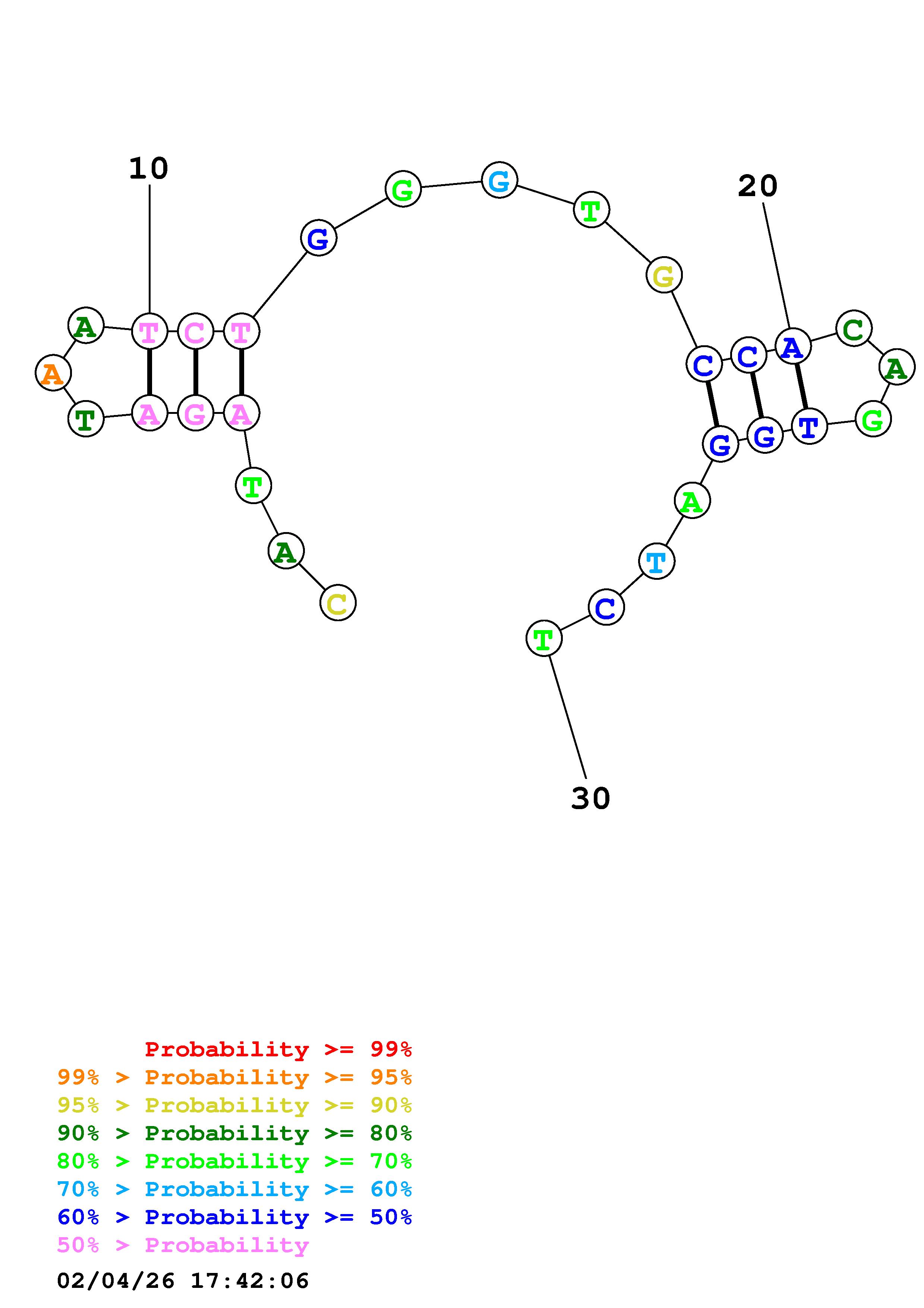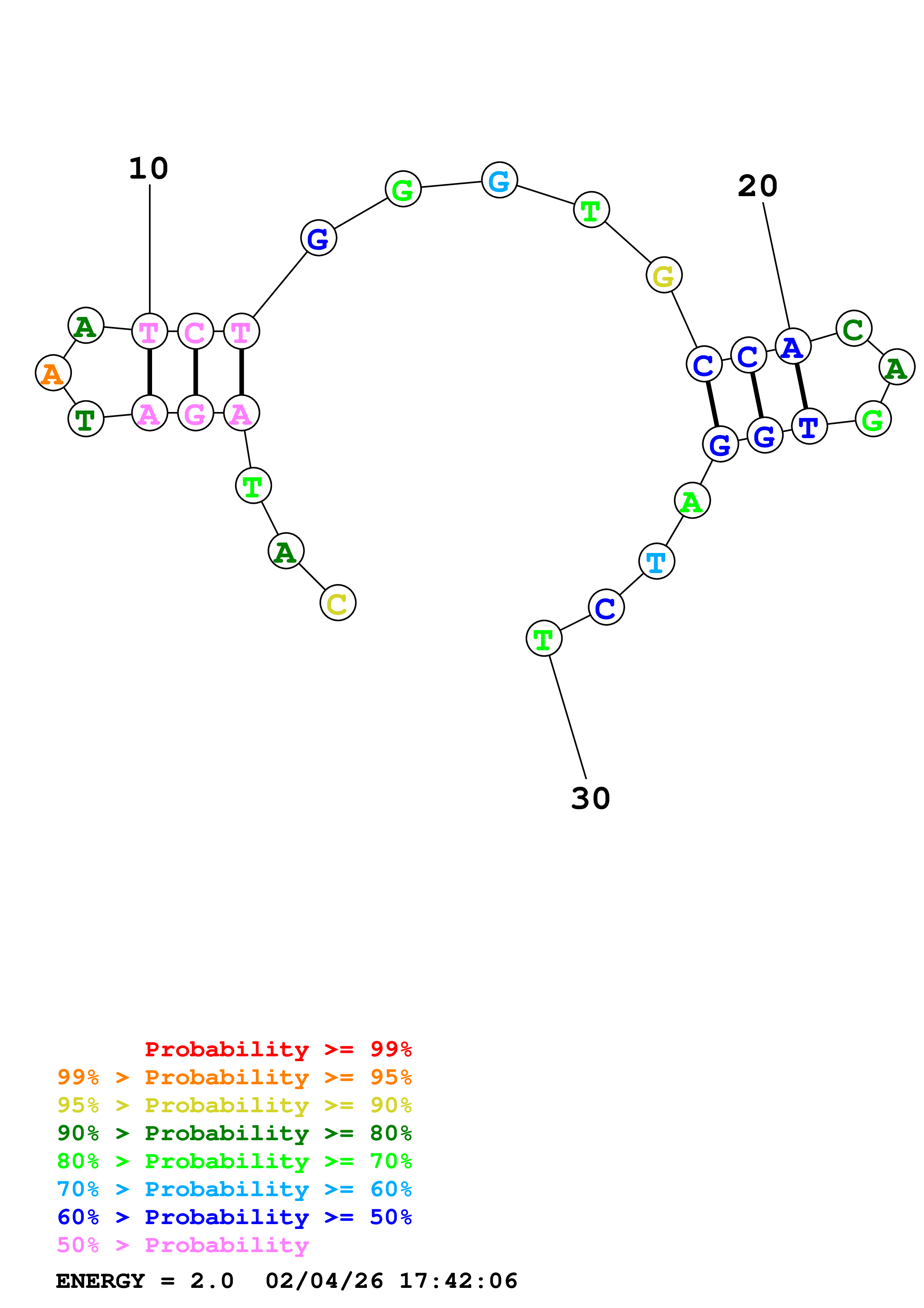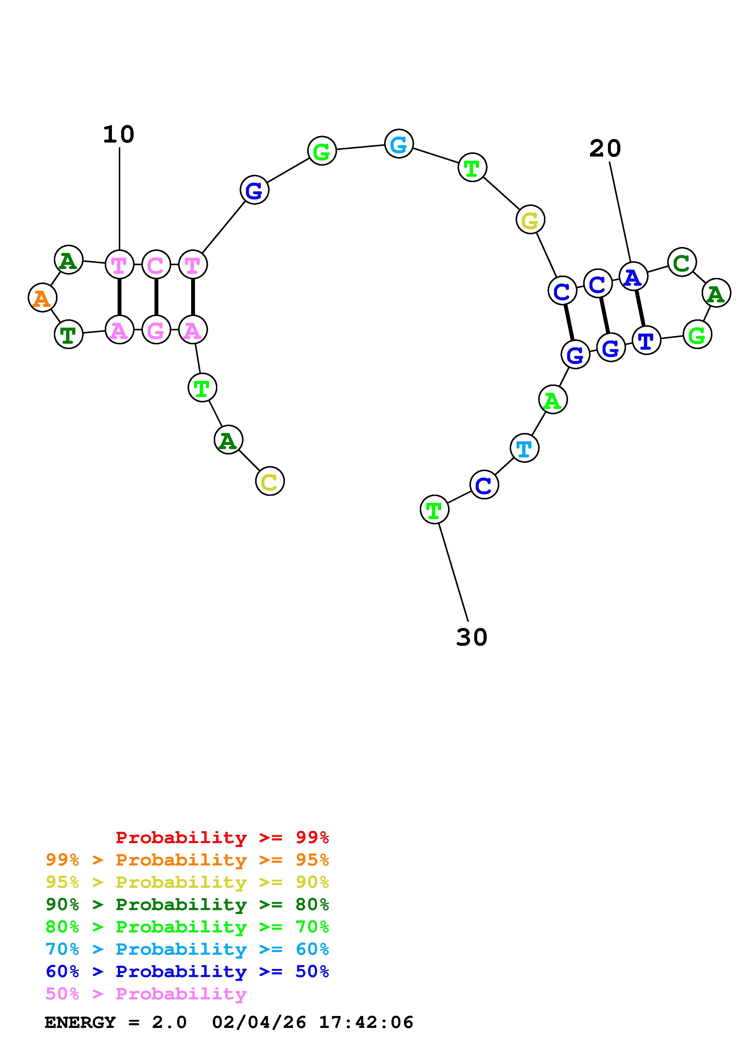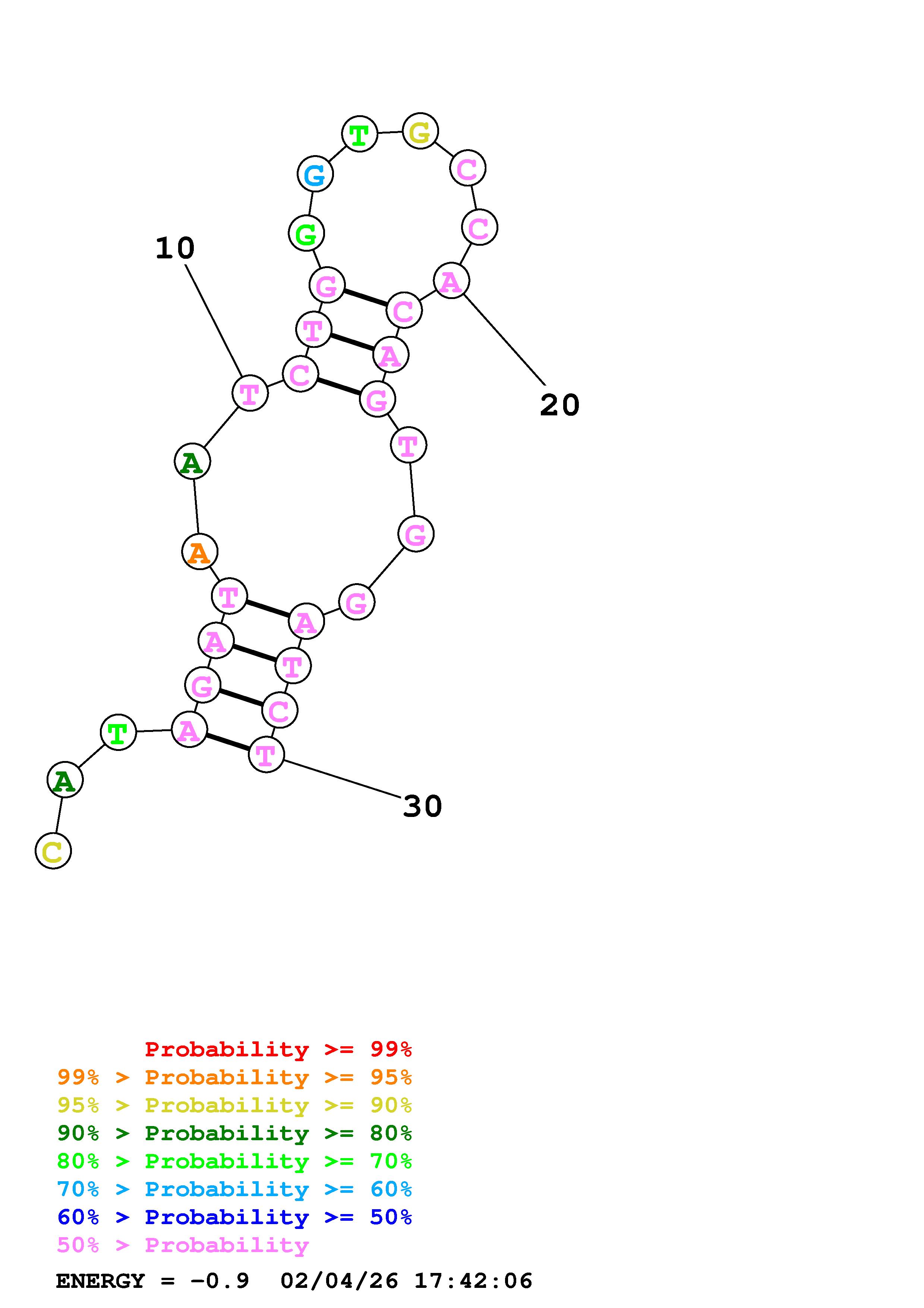 Fold Predict1.fasta Fold.ct --DNA --loop 30 --maximum 20 --percent 10 --temperature 310.15 --window 3