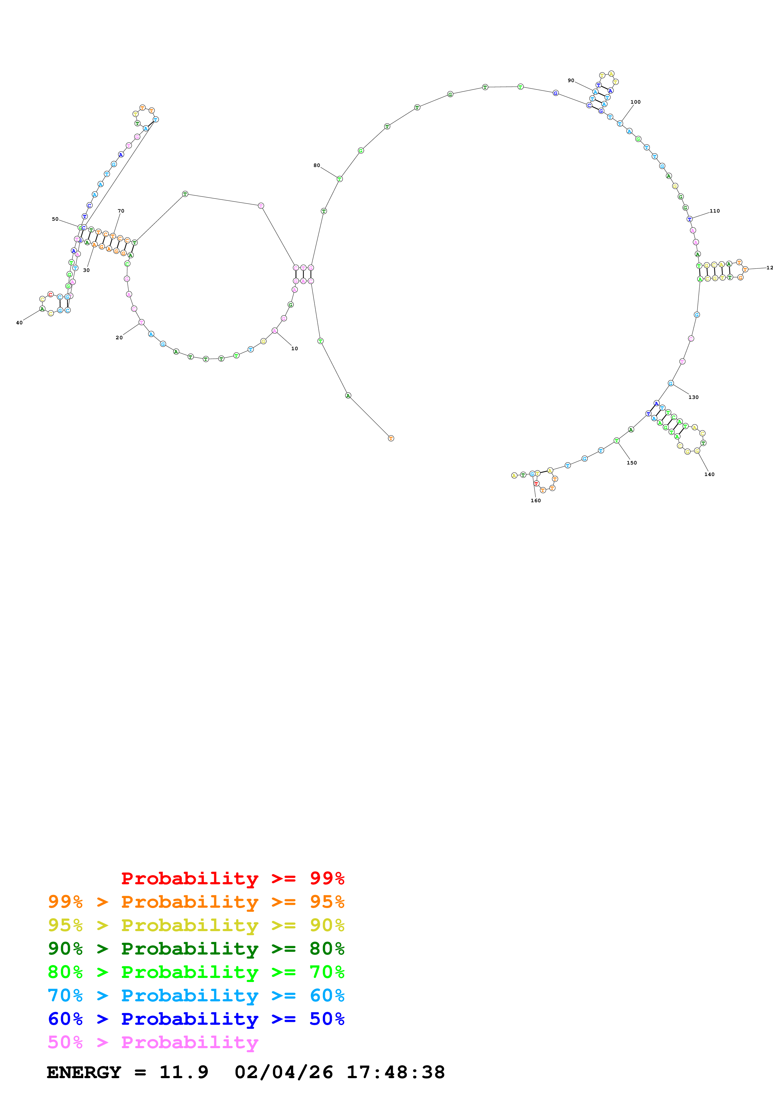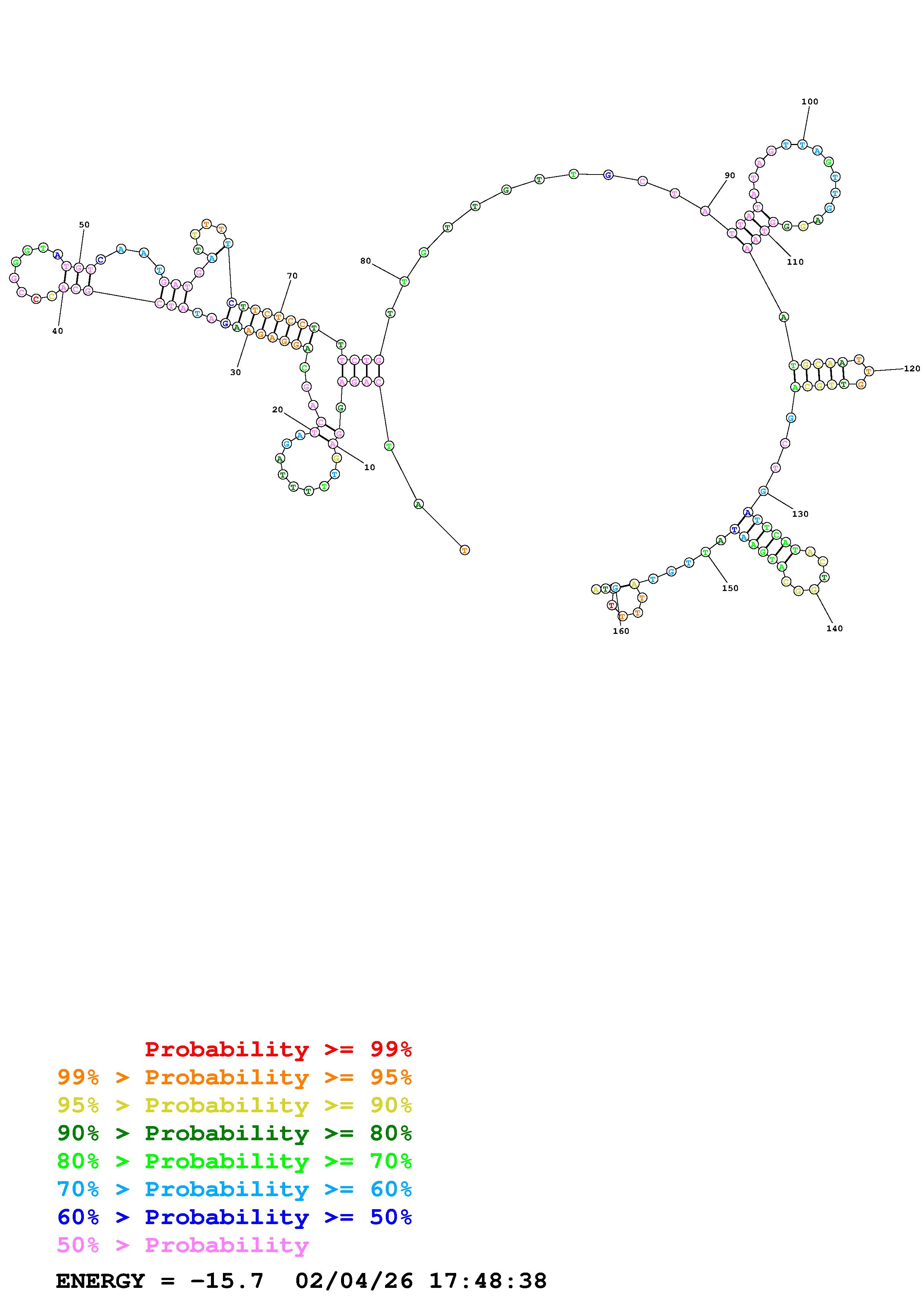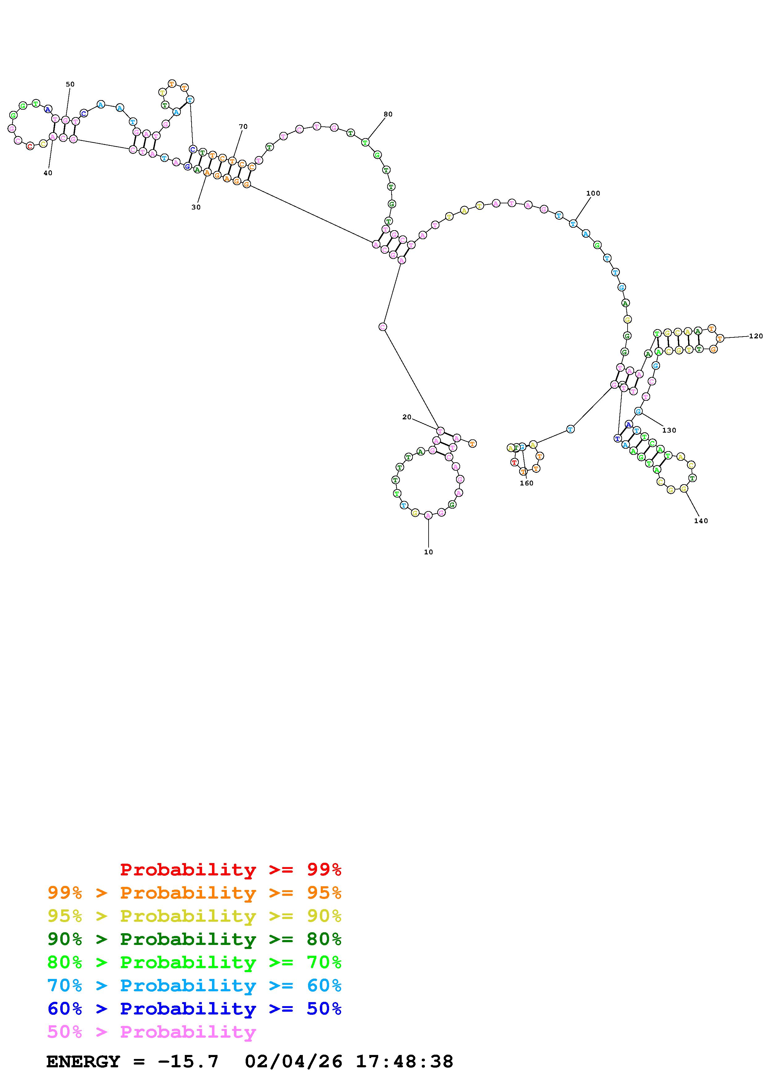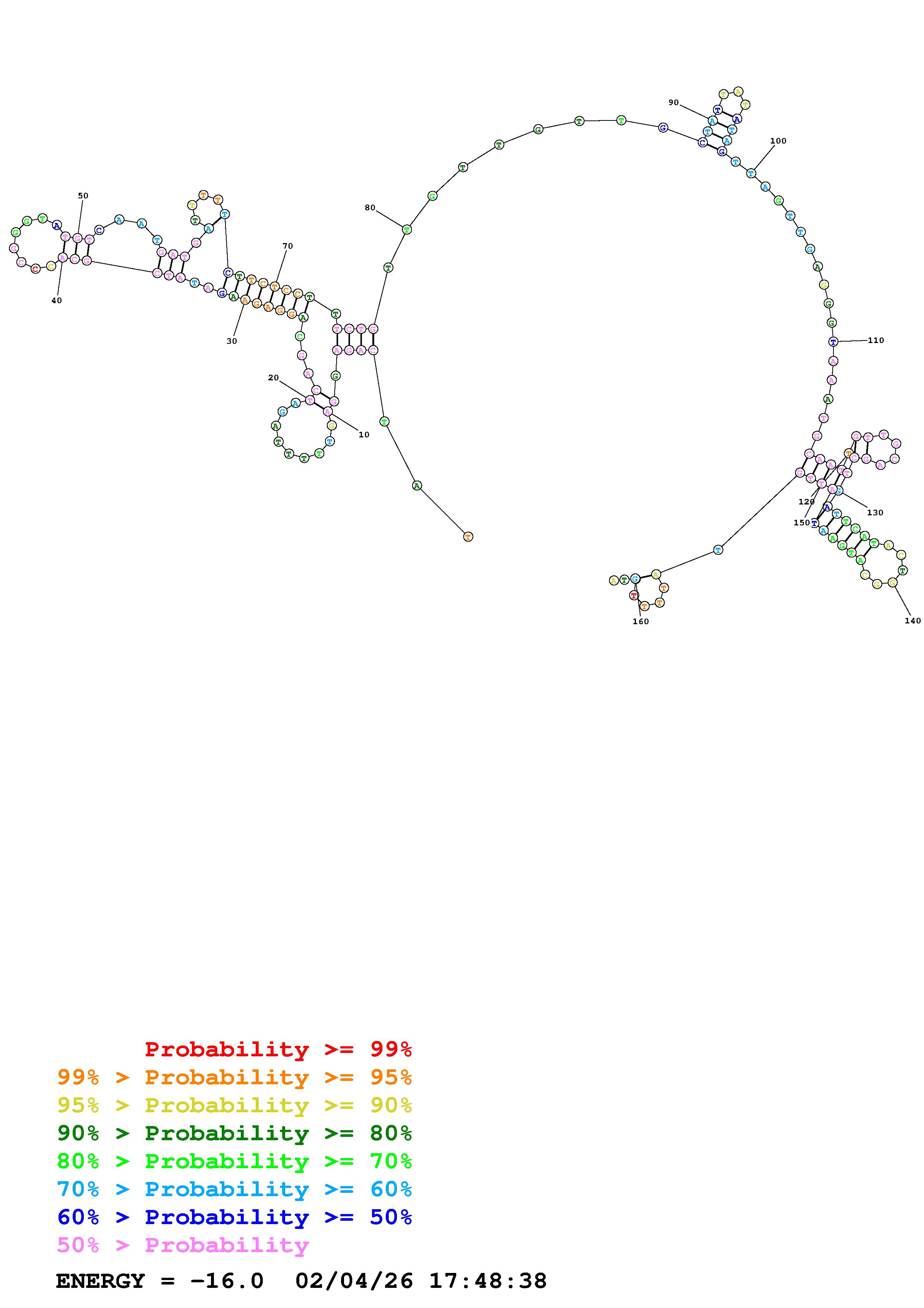Fold Predict1.fasta Fold.ct --DNA --loop 30 --maximum 20 --percent 10 --temperature 310.15 --window 3