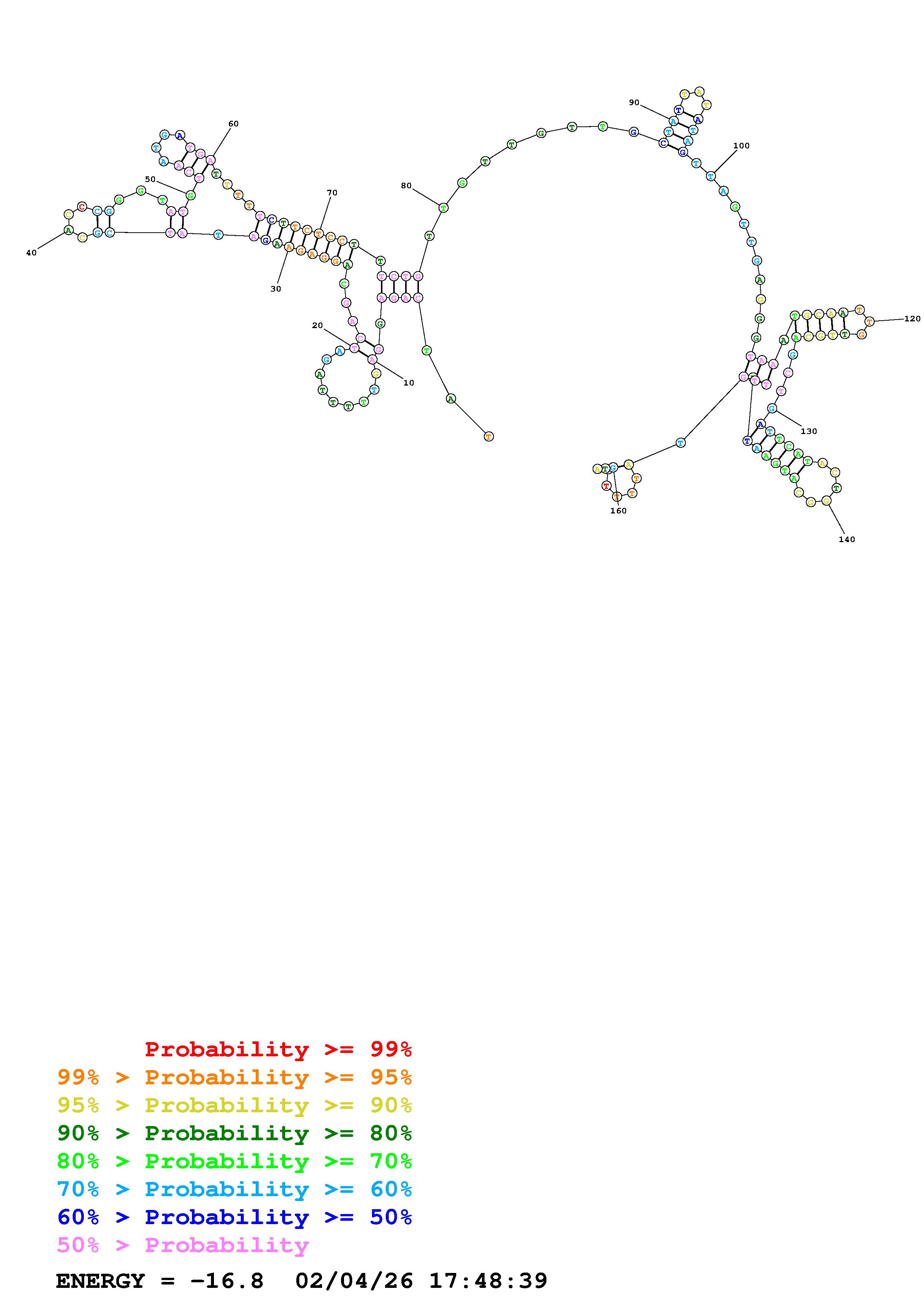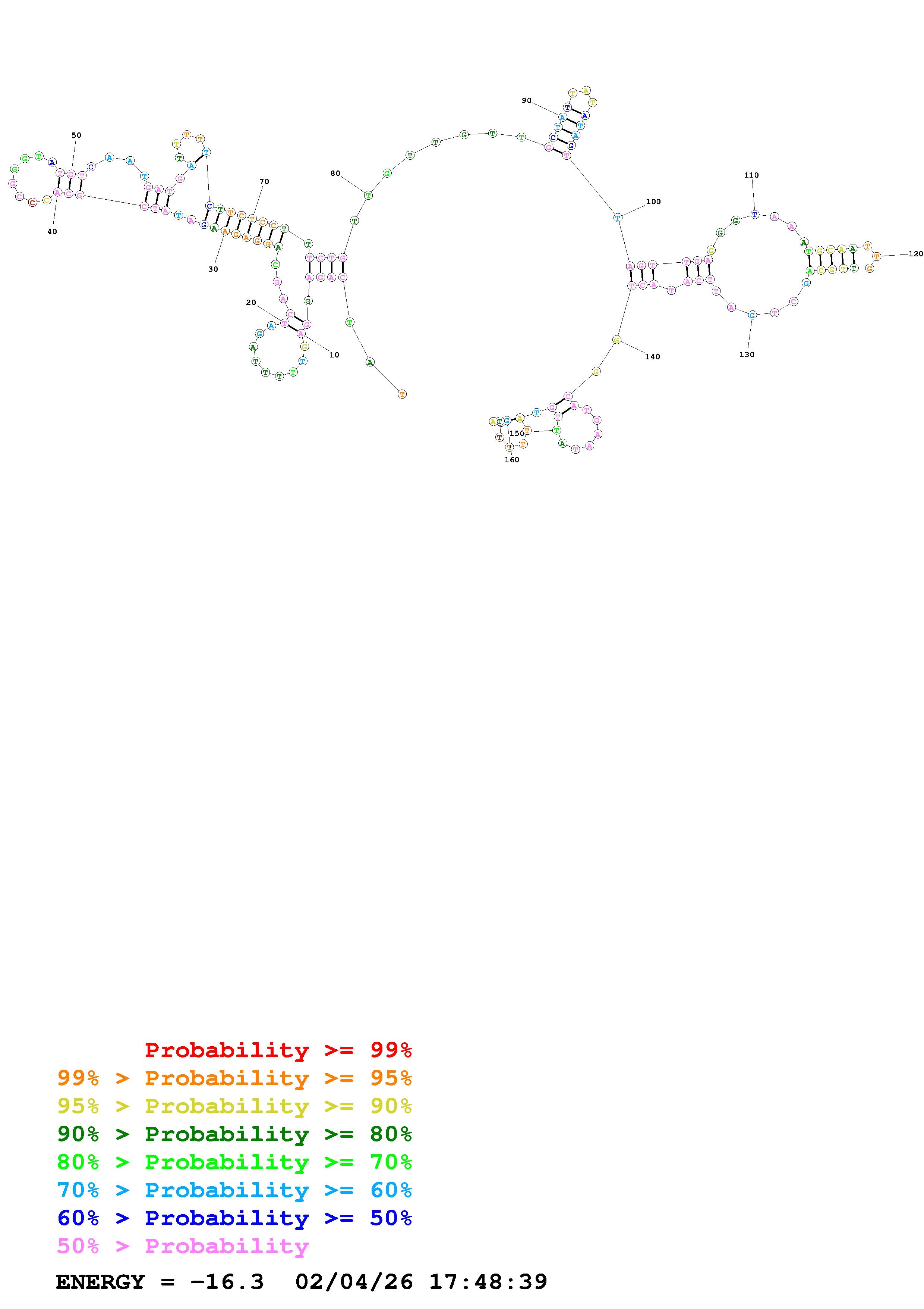 Fold Predict1.fasta Fold.ct --DNA --loop 30 --maximum 20 --percent 10 --temperature 310.15 --window 3