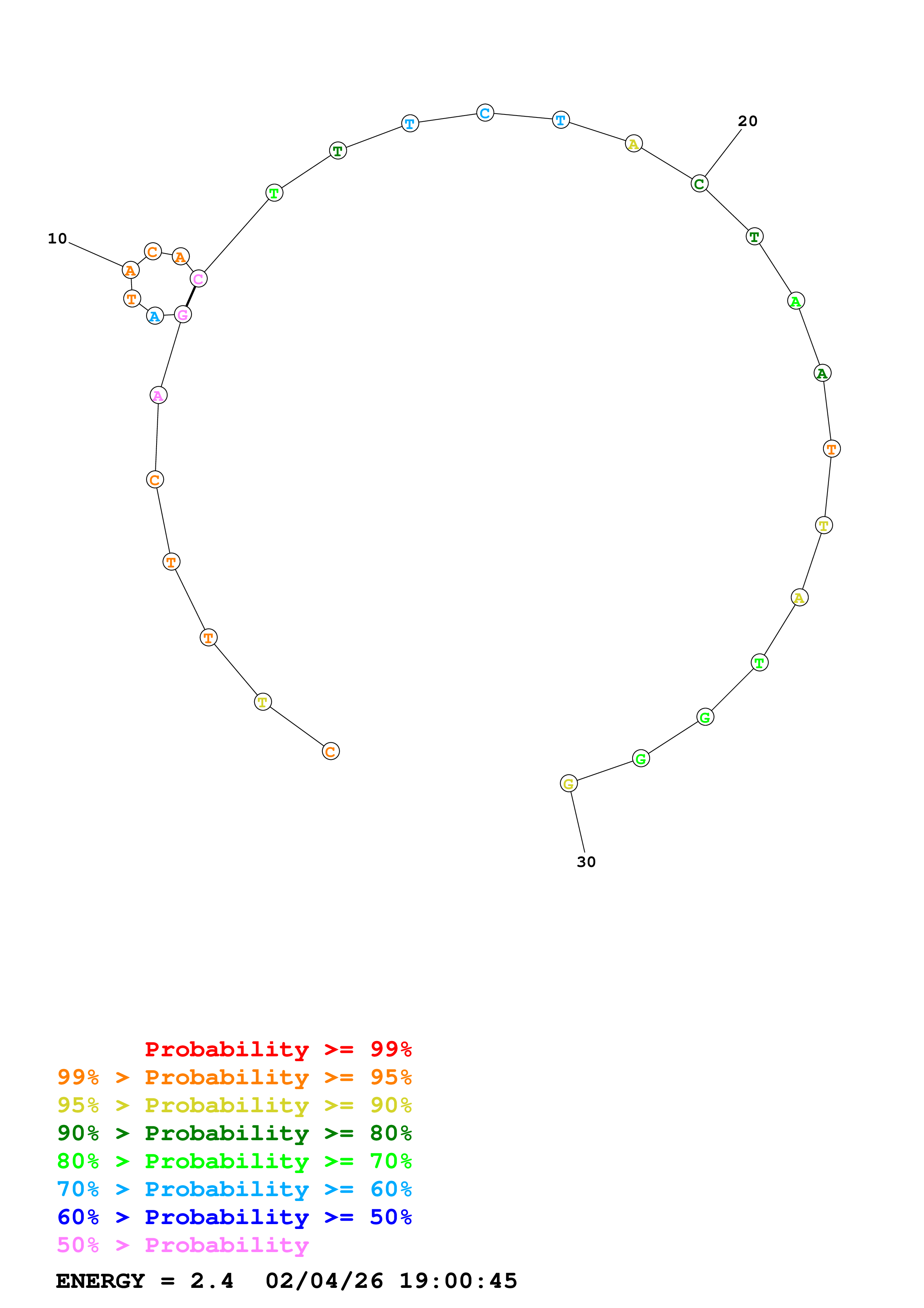 (Generate a structure or structures composed of highly probable base pairs. This is an alternative method for structure prediction that may have higher fidelity in structure prediction.)