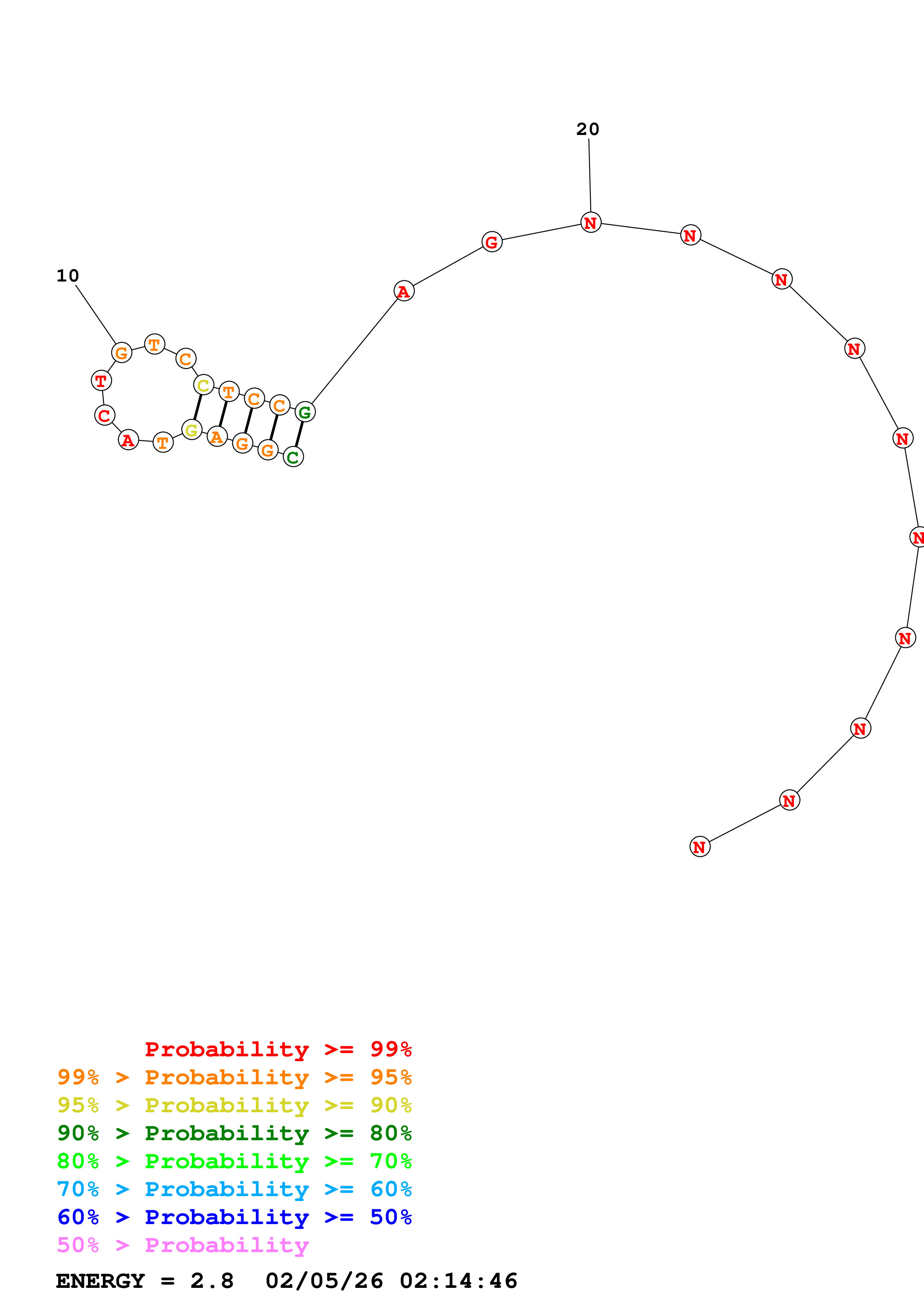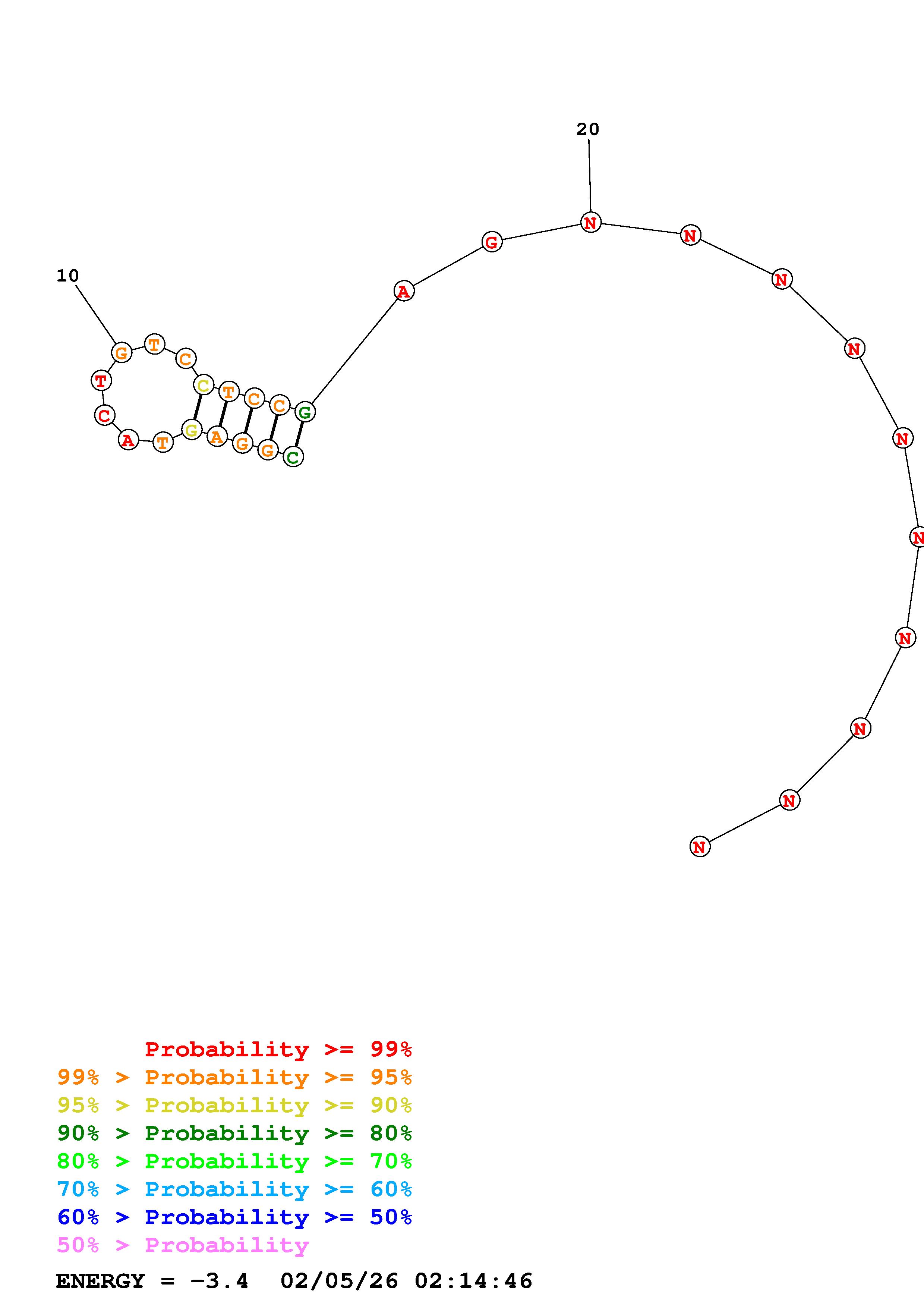 (Generate a structure or structures composed of highly probable base pairs. This is an alternative method for structure prediction that may have higher fidelity in structure prediction.)