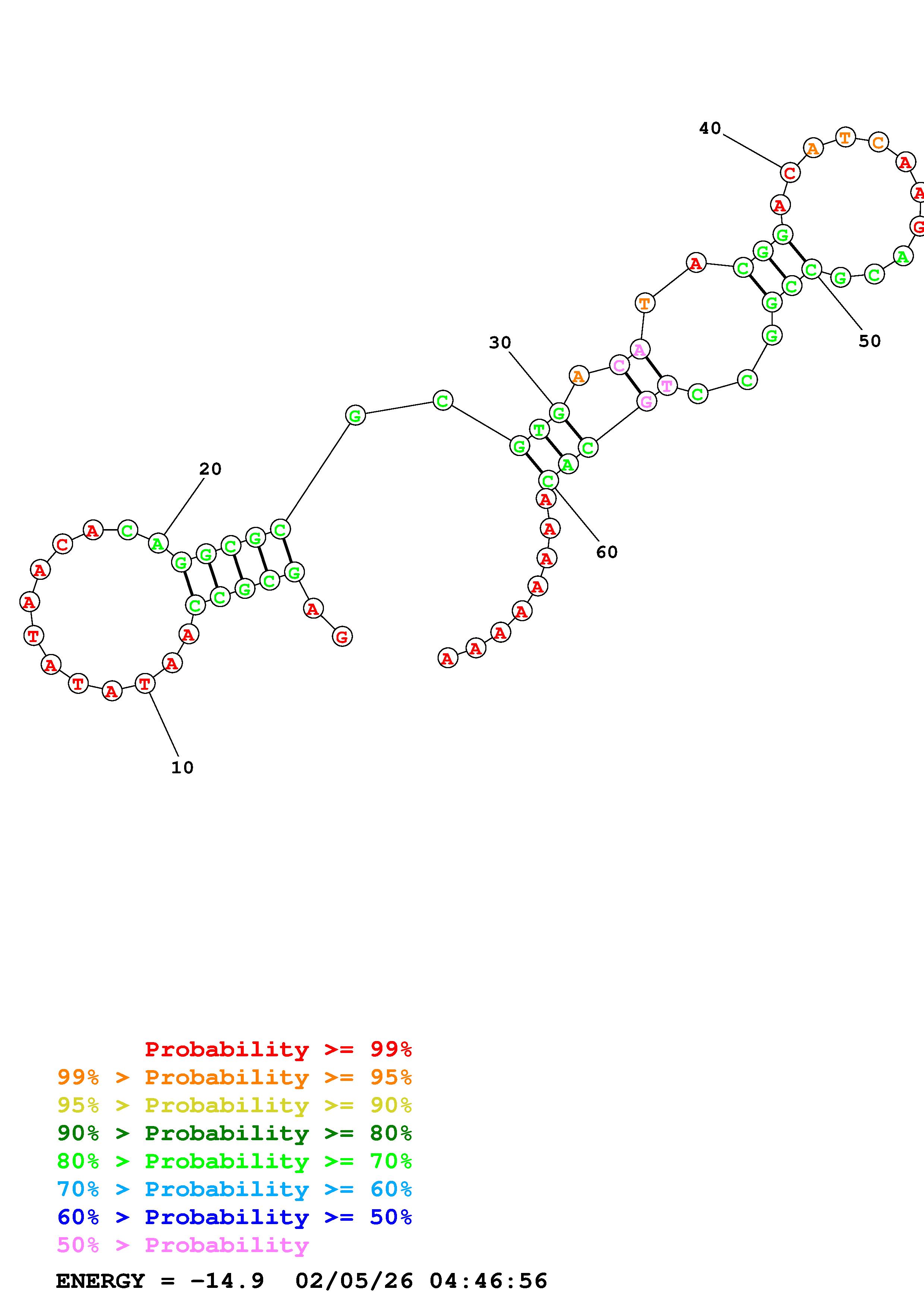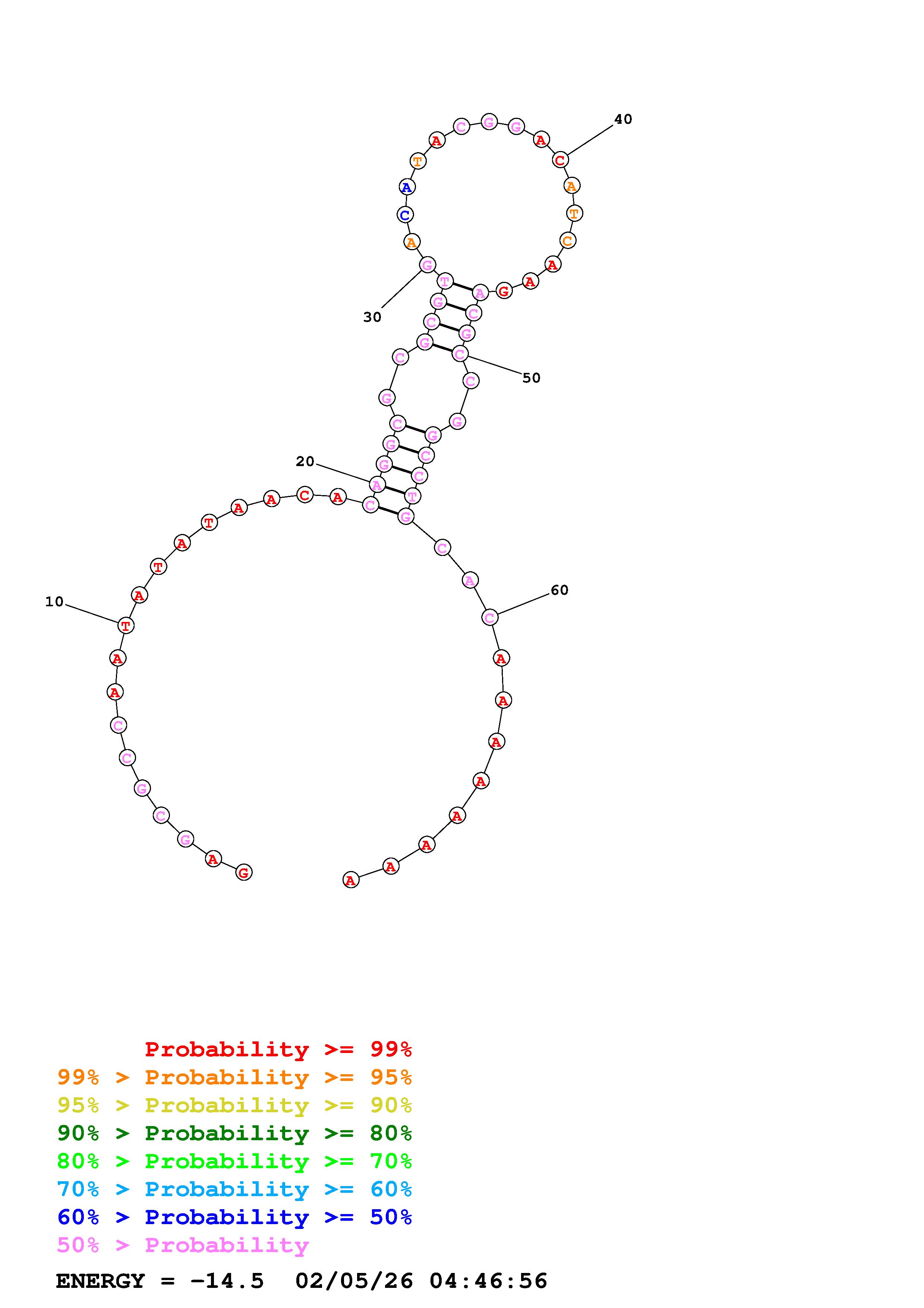 Fold Predict1.fasta Fold.ct --loop 30 --maximum 20 --percent 50 --temperature 310.15 --window 3