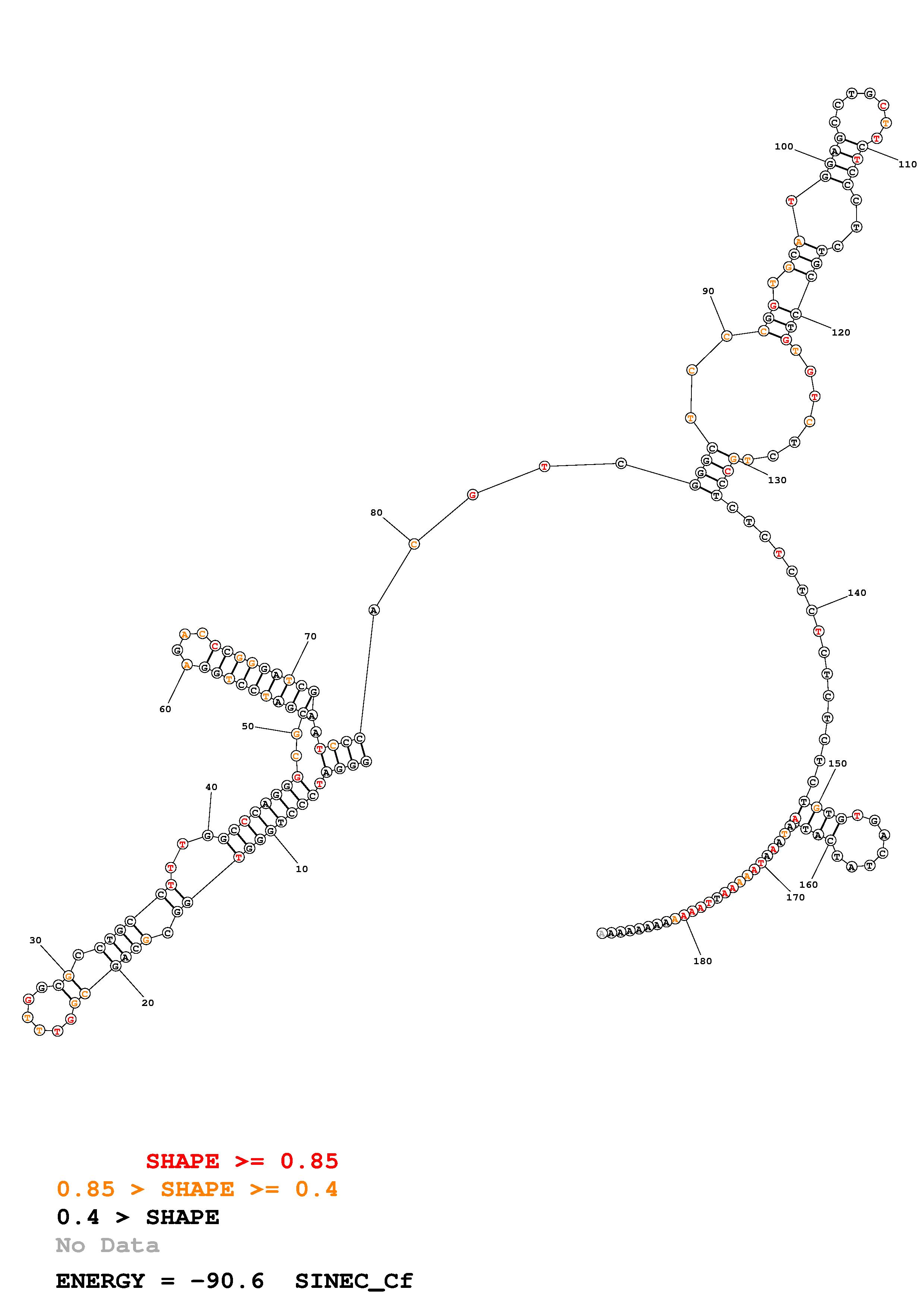 Fold SINEC_Cf.fa Fold.ct --loop 30 --maximum 20 --percent 10 --SHAPE CfSINE_1M7_Switch_MaP_CfSINE.shape --SHAPEintercept -0.6 --SHAPEslope 1.8 --temperature 310.15 --window 3