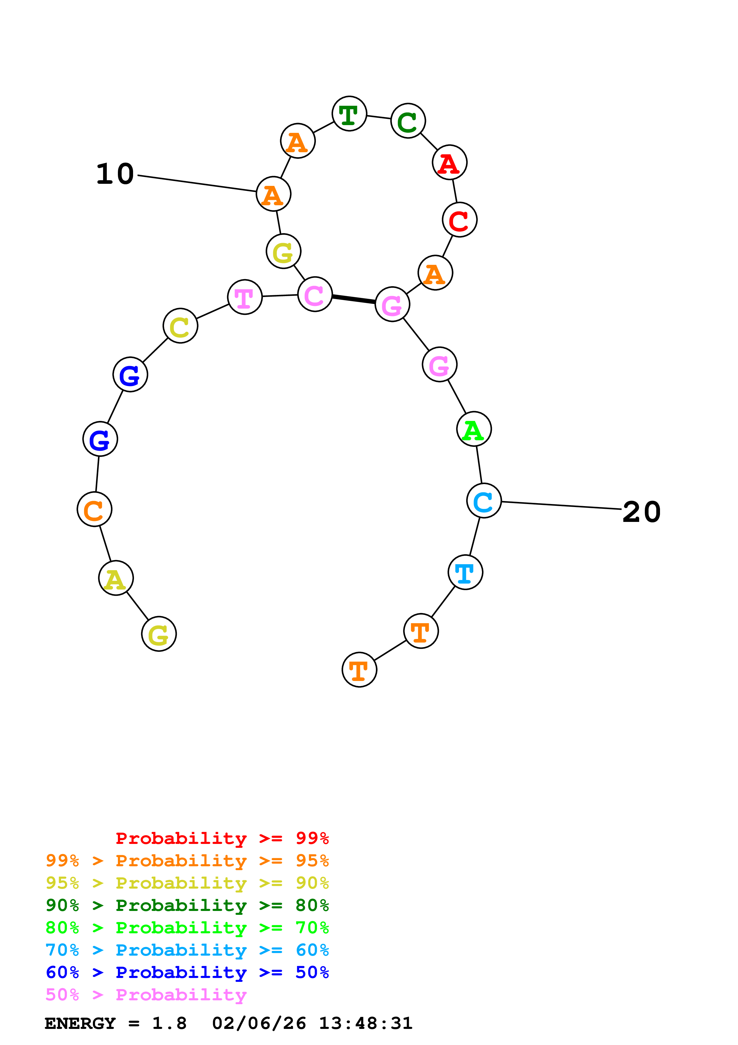(Generate a structure or structures composed of highly probable base pairs. This is an alternative method for structure prediction that may have higher fidelity in structure prediction.)