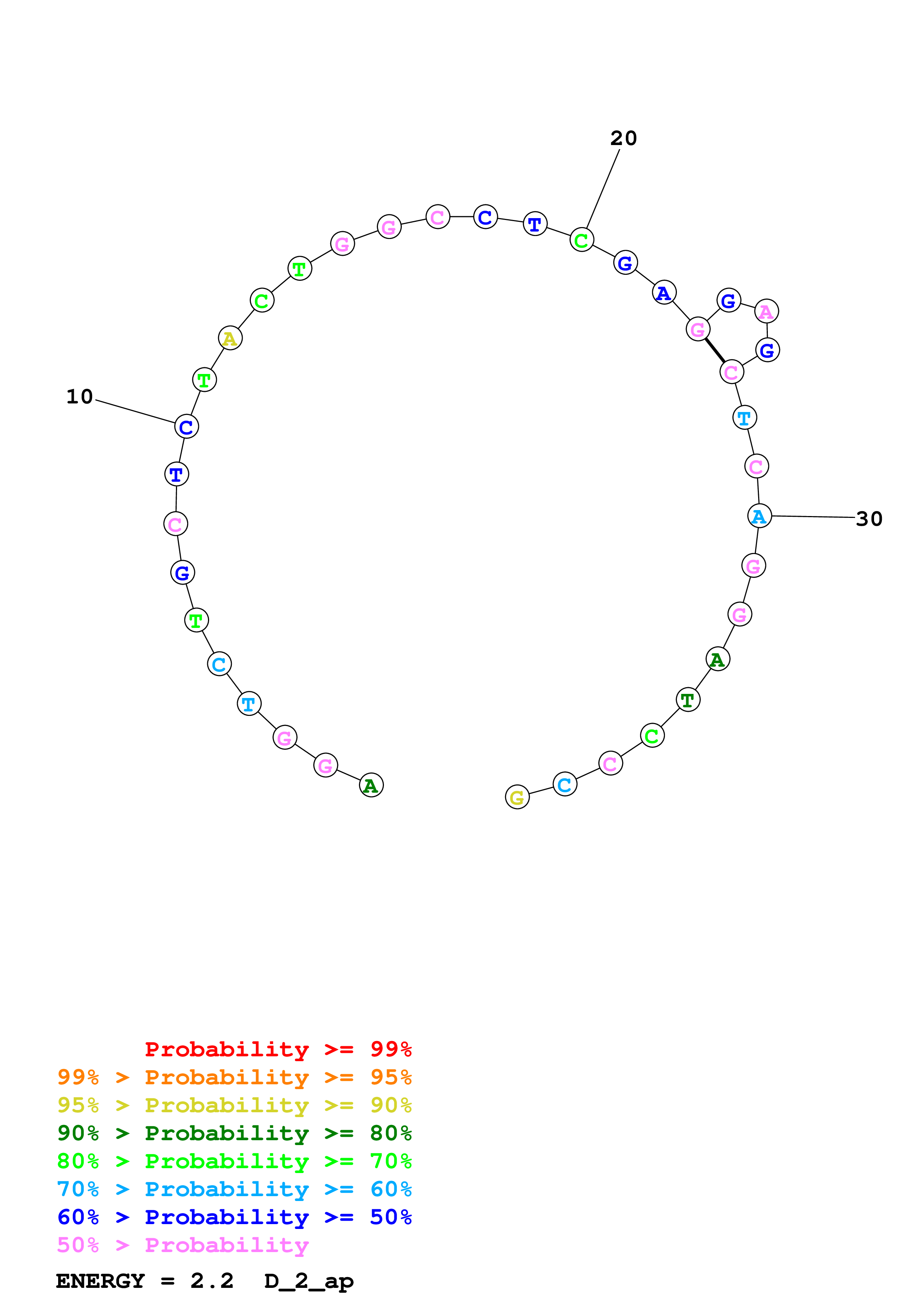 (Generate a structure or structures composed of highly probable base pairs. This is an alternative method for structure prediction that may have higher fidelity in structure prediction.)