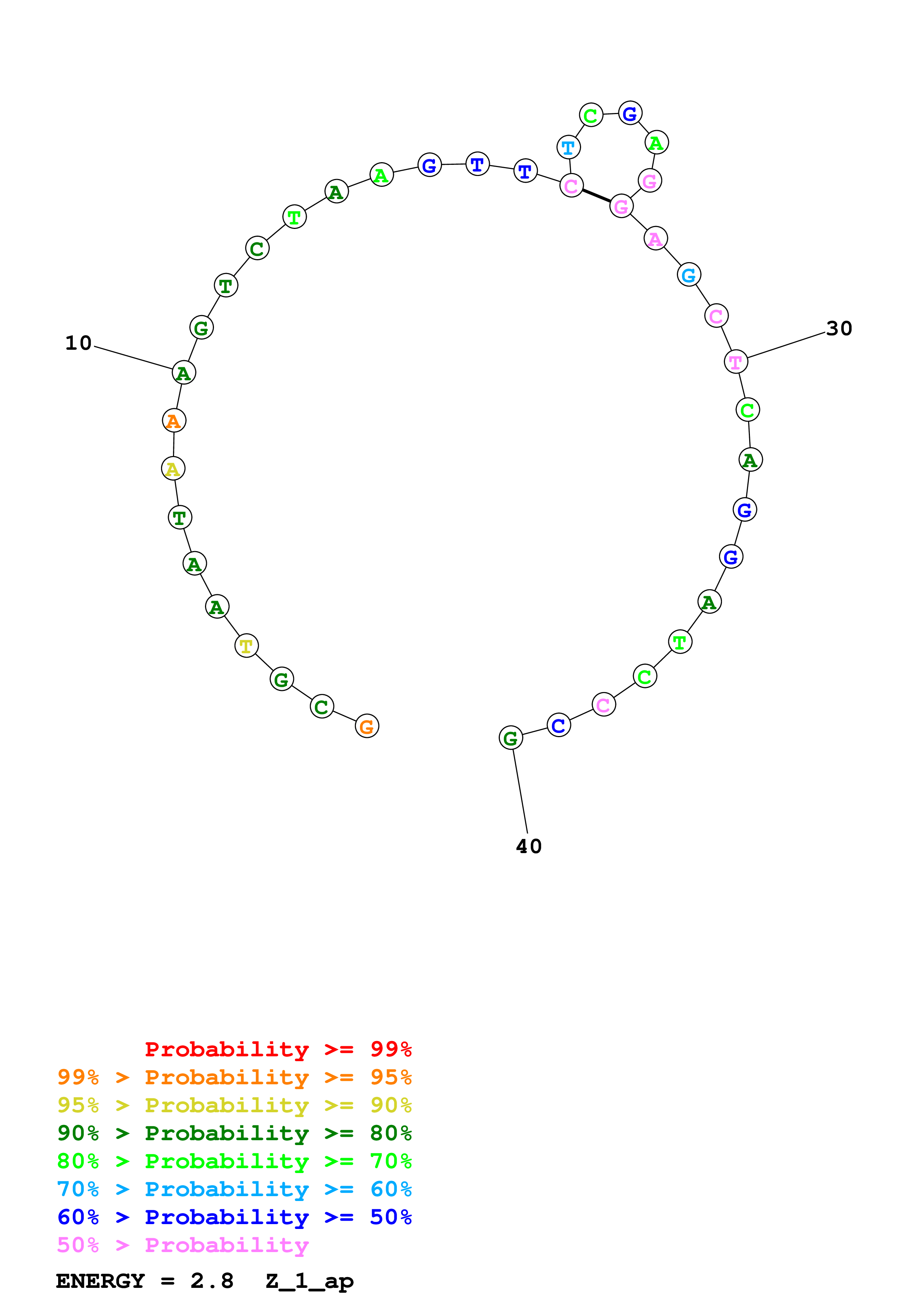 Fold Predict1.fasta Fold.ct --DNA --loop 30 --maximum 1 --percent 10 --temperature 310.15 --window 3