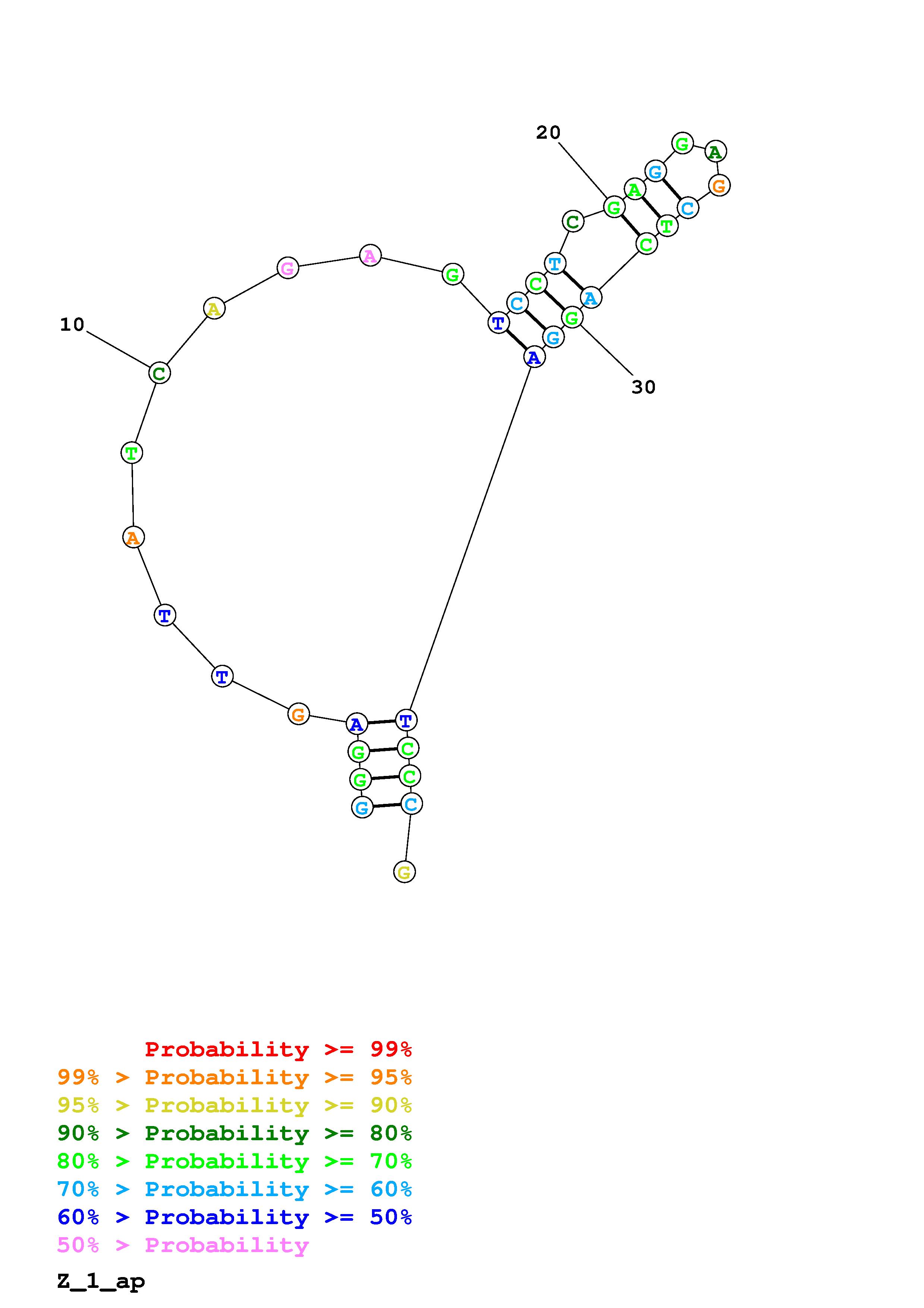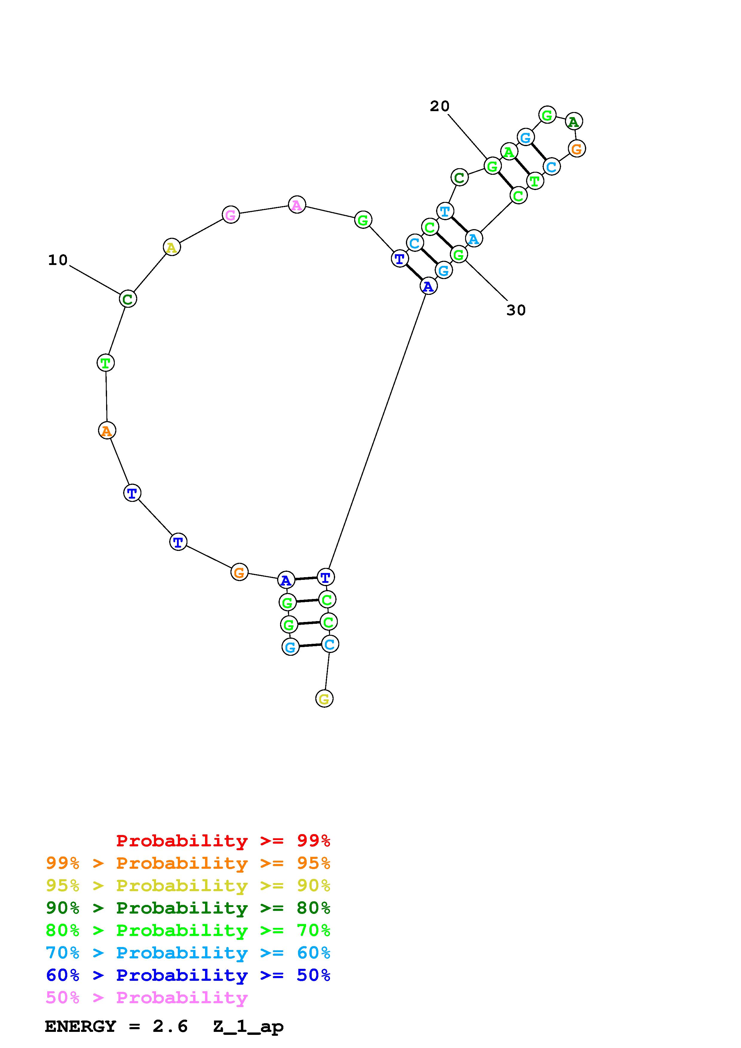 Fold Predict1.fasta Fold.ct --DNA --loop 30 --maximum 1 --percent 10 --temperature 310.15 --window 3