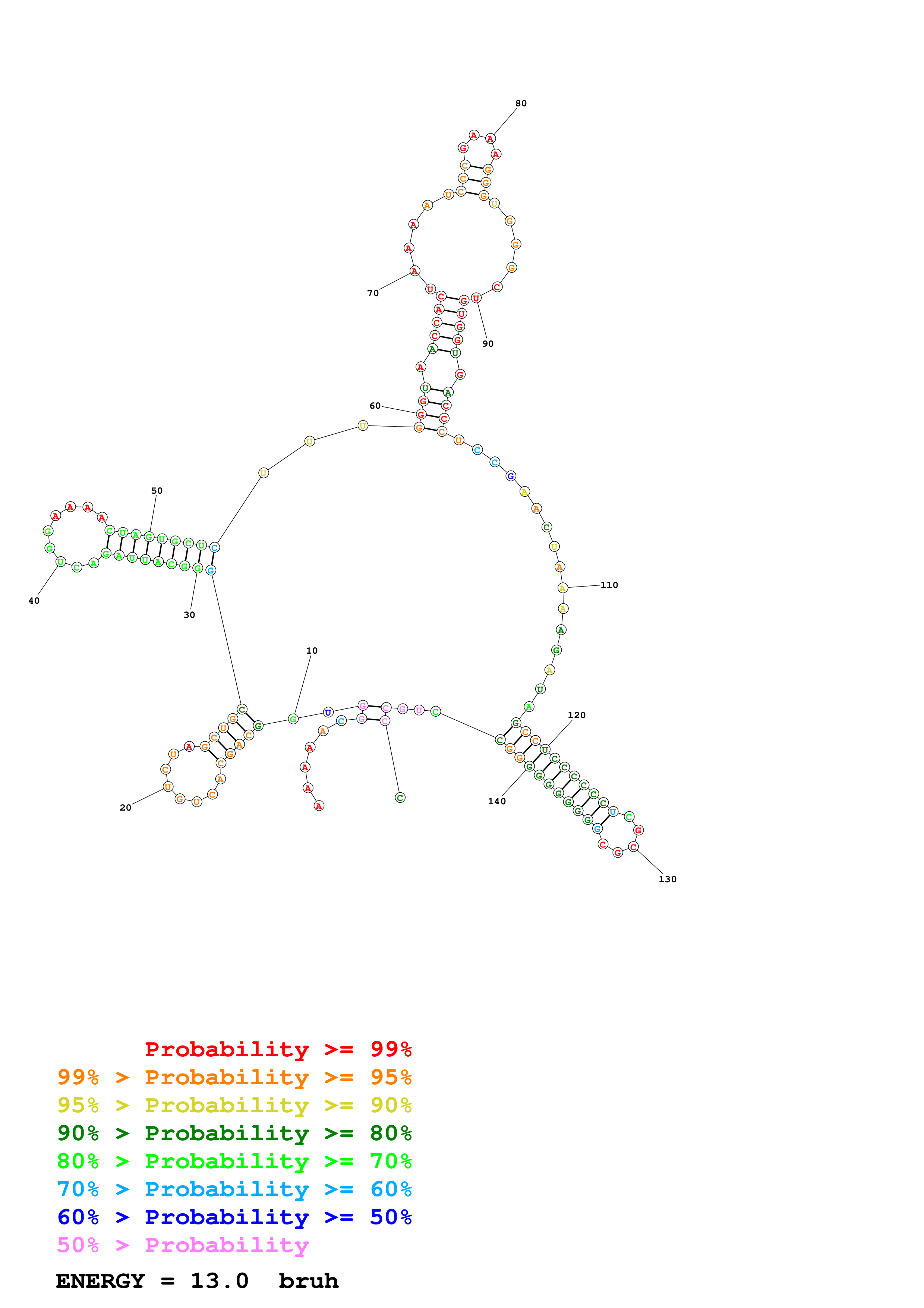 (Generate a structure or structures composed of highly probable base pairs. This is an alternative method for structure prediction that may have higher fidelity in structure prediction.)