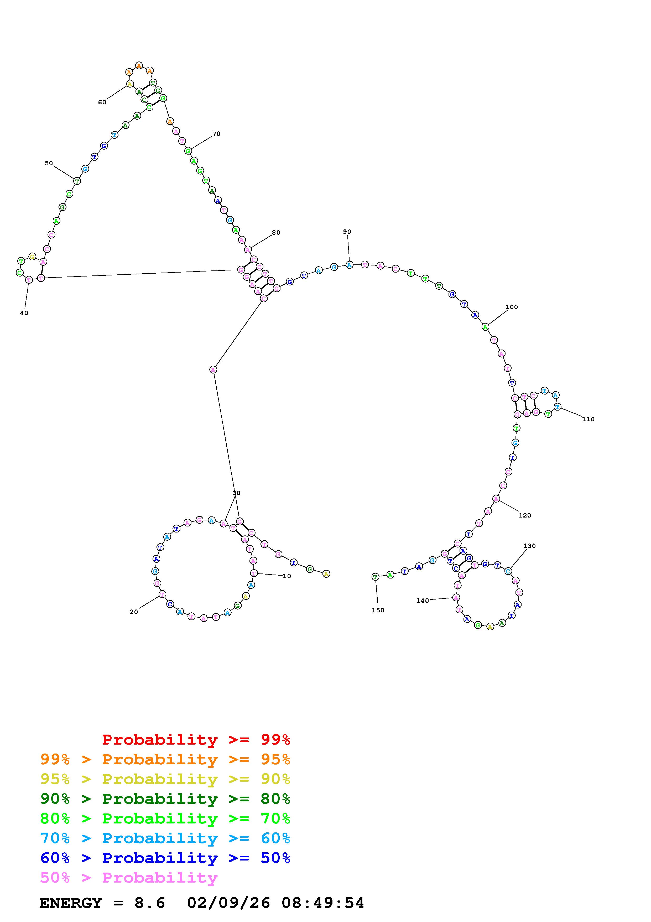 Fold Predict1.fasta Fold.ct --DNA --loop 30 --maximum 20 --percent 10 --temperature 310.15 --window 3
