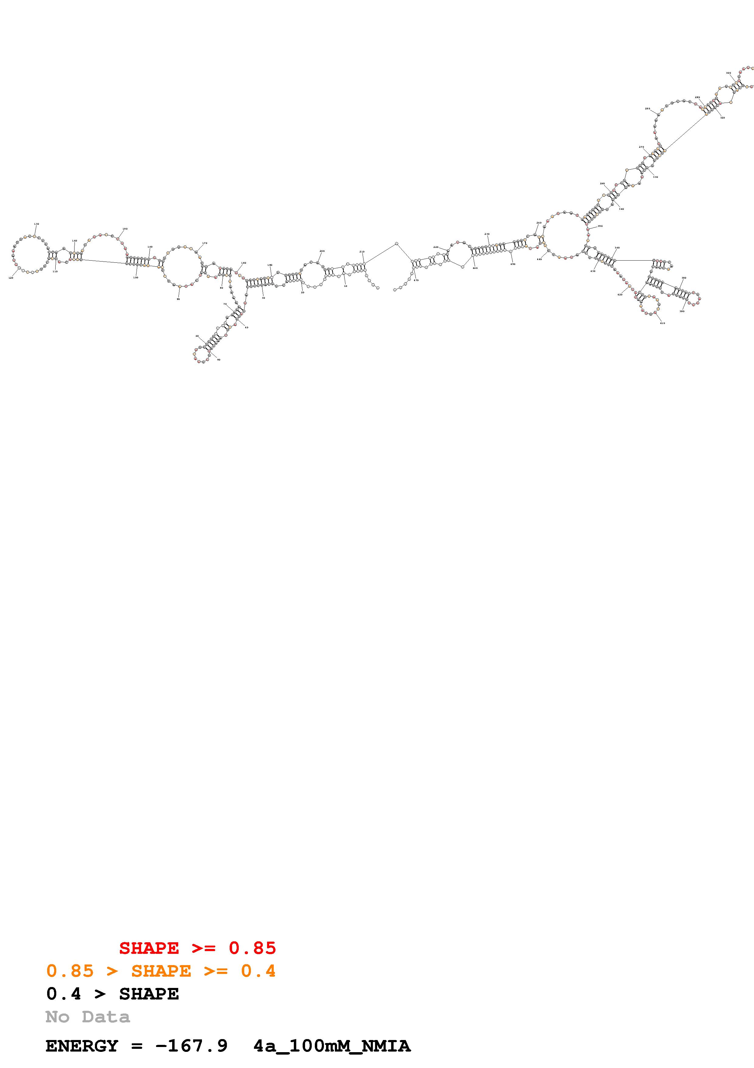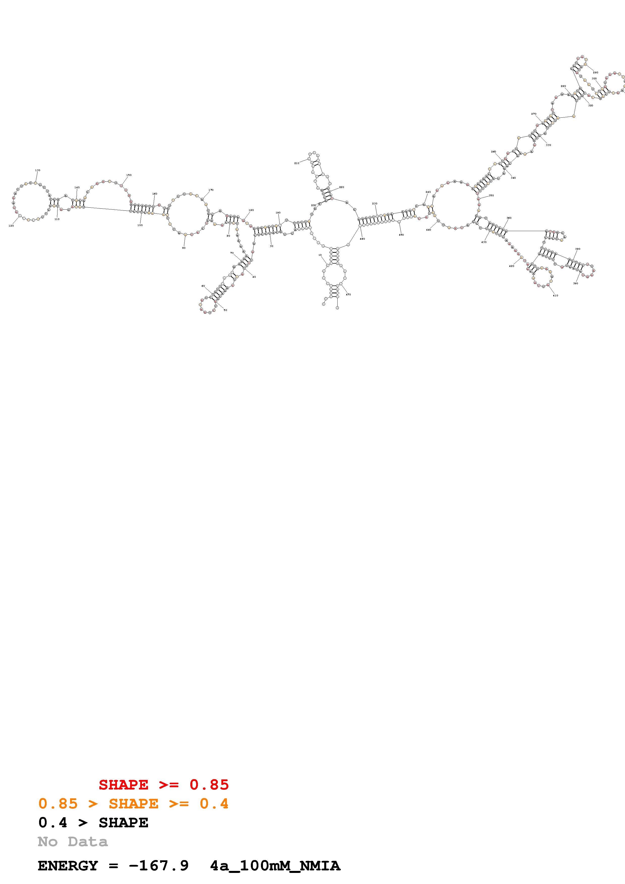 Fold Predict1.fasta Fold.ct --loop 30 --maximum 20 --percent 10 --SHAPE 100mM_NMIA_KRAS_exon4_flanking.shape --SHAPEintercept -0.6 --SHAPEslope 1.8 --temperature 310.15 --window 3